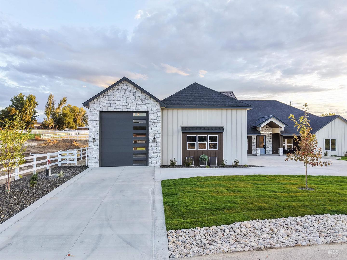 Must see stunning 4,331 sq ft modern farmhouse set on a full acre. Featuring 4 bedrooms, 4.5 baths, plus a spacious bonus room with its own full bath, this home has room for everyone. The chef’s kitchen is highlighted by gorgeous quartz countertops and a double oven, while the master suite offers the bathroom and closet of your dreams—complete with a Bluetooth shower and washer/dryer hookup. A junior master suite makes the perfect retreat for guests or extended family. Every bedroom includes a walk-in closet, and the home also boasts an office, a formal dining room, and an open, airy layout throughout. Step outside your front door to enjoy views of Bogus Basin and the Boise National Forest. Out back there is a 36x20 covered patio, a built-in fire pit, and plenty of space to entertain. Car and RV enthusiasts will love the 45-foot RV garage and additional RV parking. Designed with comfort and convenience in mind, this home is fully ADA accessible. Full landscape and fencing included. No HOA or CC&R`S! This property truly has it all—don’t miss the chance to make it yours!
