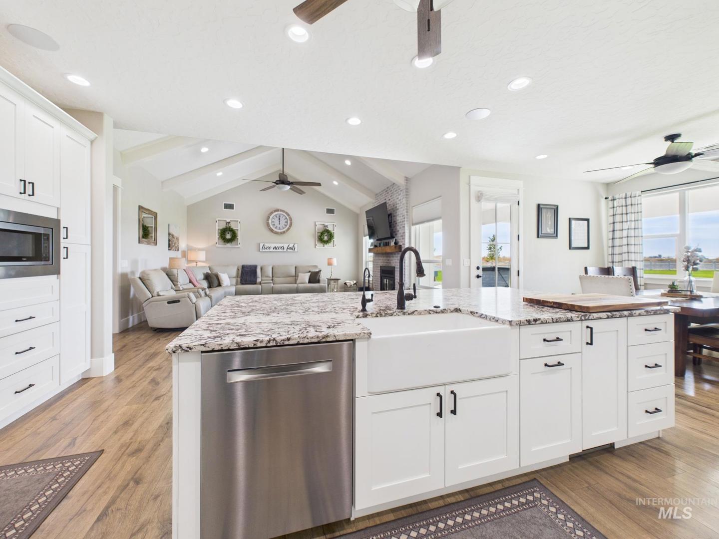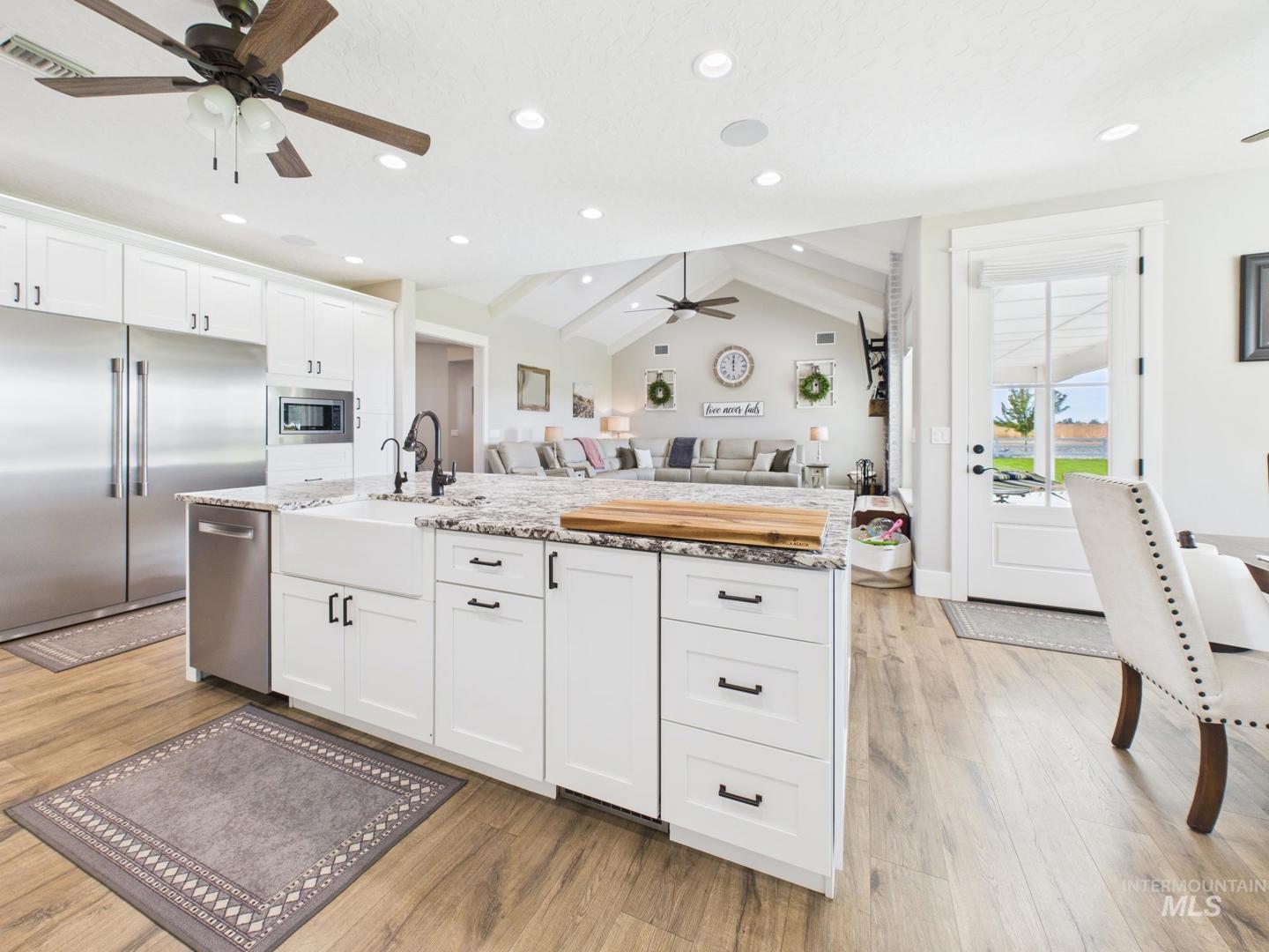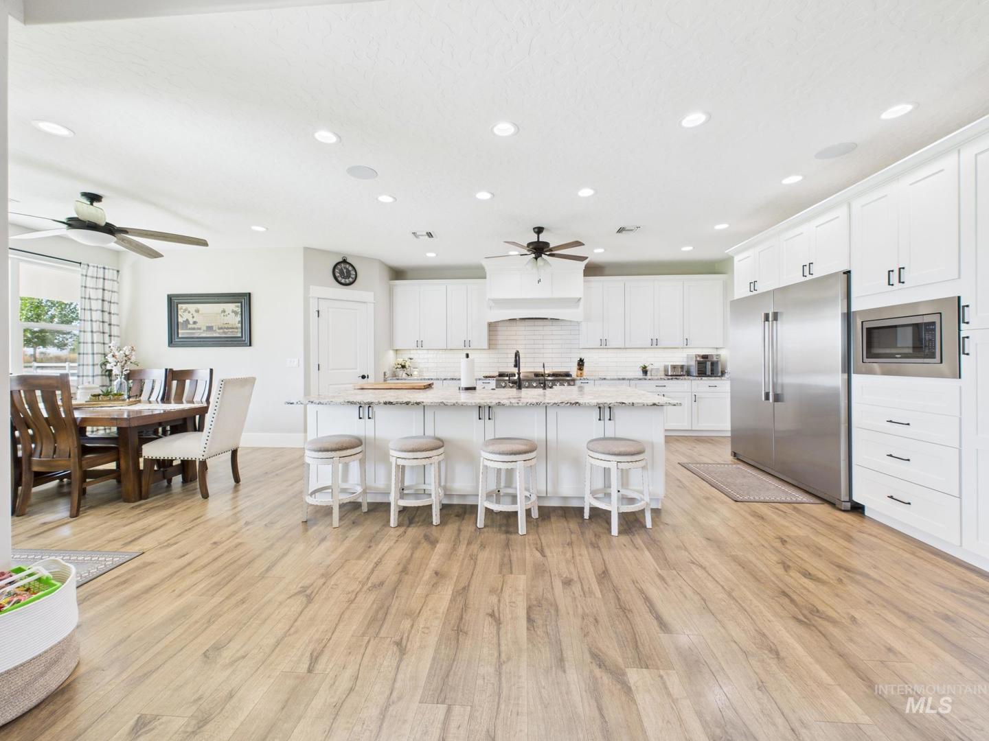 Must see the views and this custom 3849 sq ft home on 2.35 acres at the end of the road. Home has 5 bedrooms +office/6th bedroom, 4 full bathrooms, 4 car attached garage and 7 car detached garage + 40X70 shop with 4X14 foot overhead doors w openers, 400 amps of power, insulated/heated/cooled. Large open great room for entertaining, large dining area. Kitchen has tons of cabinets and counters and a huge pantry, 48" industrial gas range and ovens, large built in fridge/freezer. Master bedroom has separate tub and walk in shower, large walk in closet with washer/dryer, 6 person jacuzzi off the master bedroom. Full house softener/filtration system, 2 hot water heaters. Fully landscaped on automatic sprinklers. Large covered back patio to enjoy the privacy and views from the back with unobstructed views.