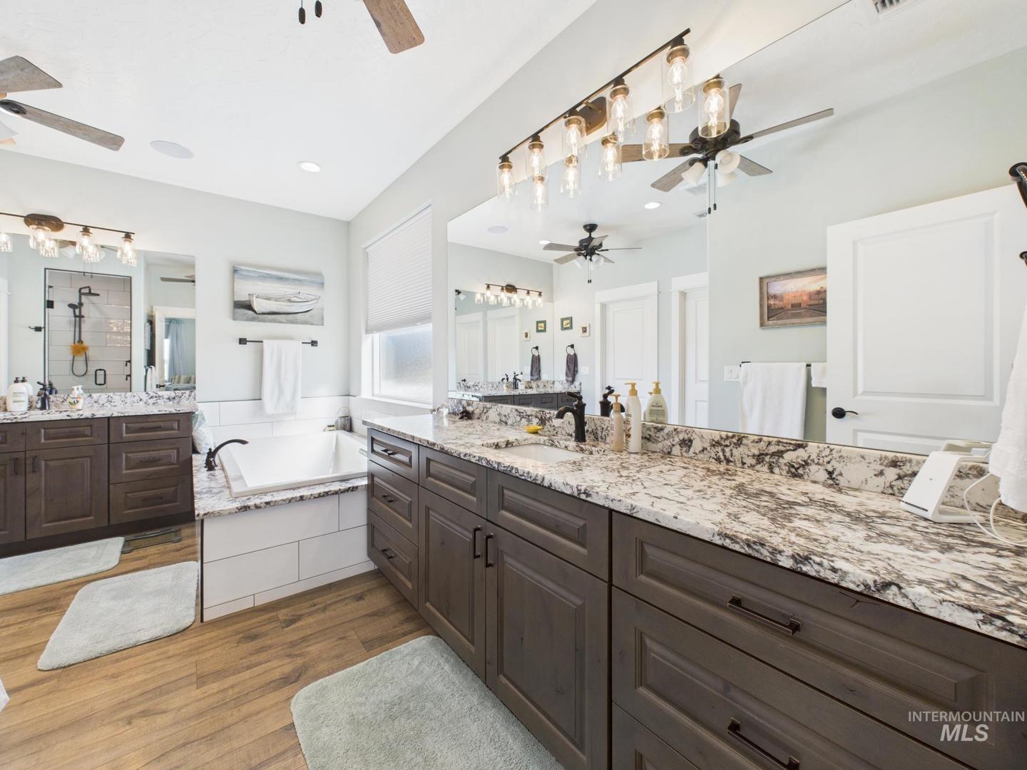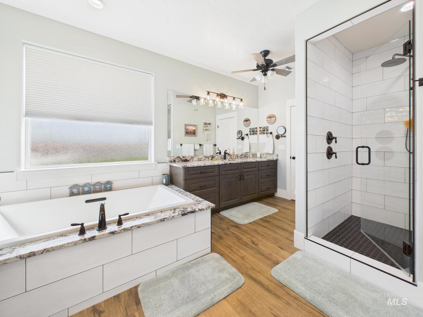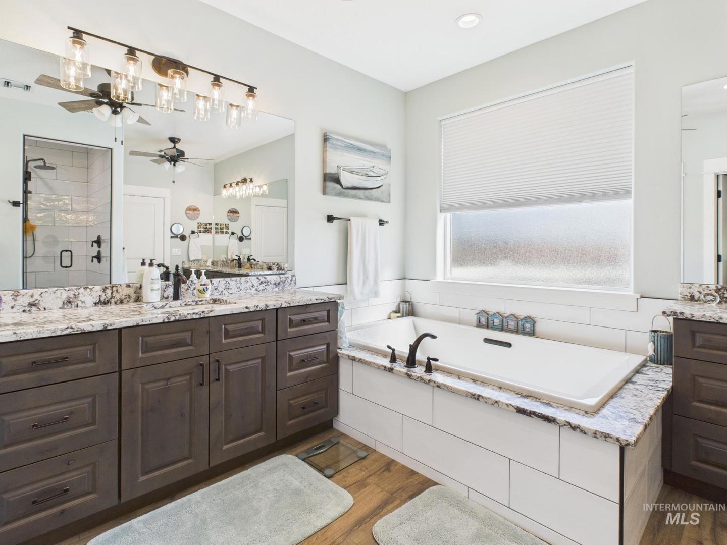 Must see the views and this custom 3849 sq ft home on 2.35 acres at the end of the road. Home has 5 bedrooms +office/6th bedroom, 4 full bathrooms, 4 car attached garage and 7 car detached garage + 40X70 shop with 4X14 foot overhead doors w openers, 400 amps of power, insulated/heated/cooled. Large open great room for entertaining, large dining area. Kitchen has tons of cabinets and counters and a huge pantry, 48" industrial gas range and ovens, large built in fridge/freezer. Master bedroom has separate tub and walk in shower, large walk in closet with washer/dryer, 6 person jacuzzi off the master bedroom. Full house softener/filtration system, 2 hot water heaters. Fully landscaped on automatic sprinklers. Large covered back patio to enjoy the privacy and views from the back with unobstructed views.