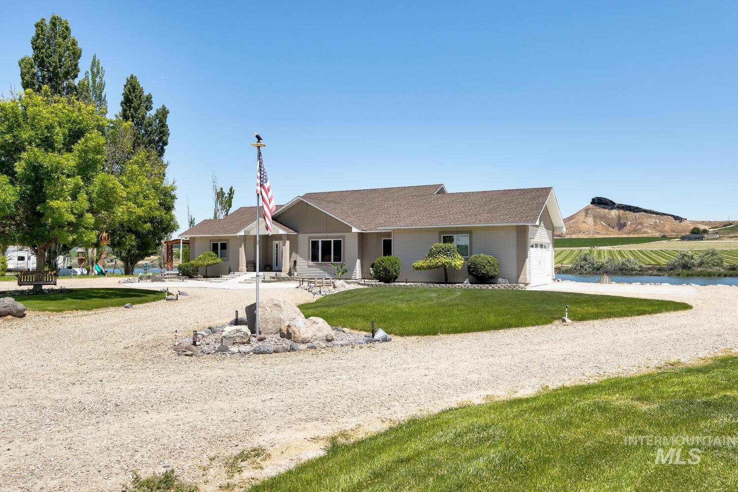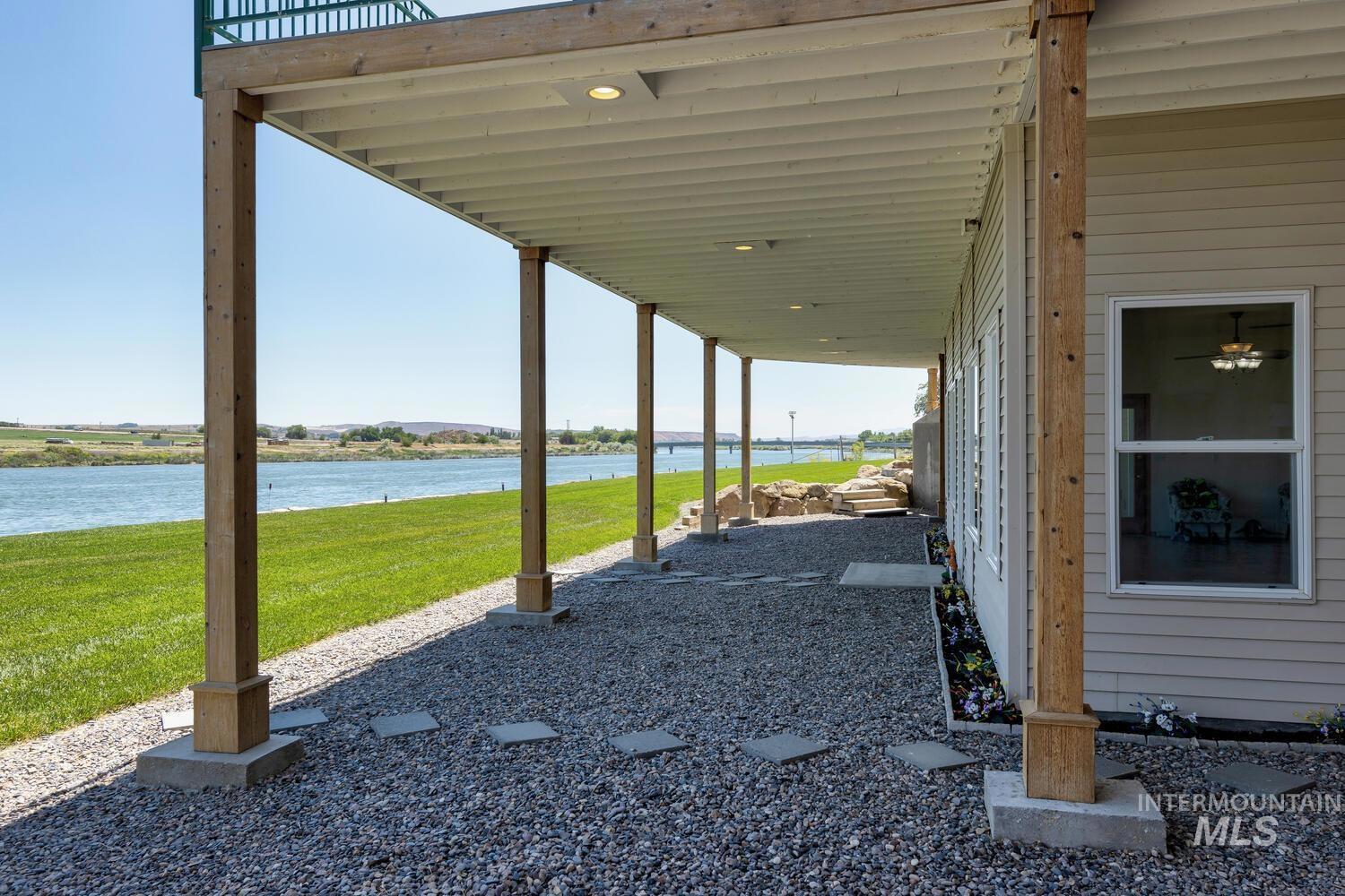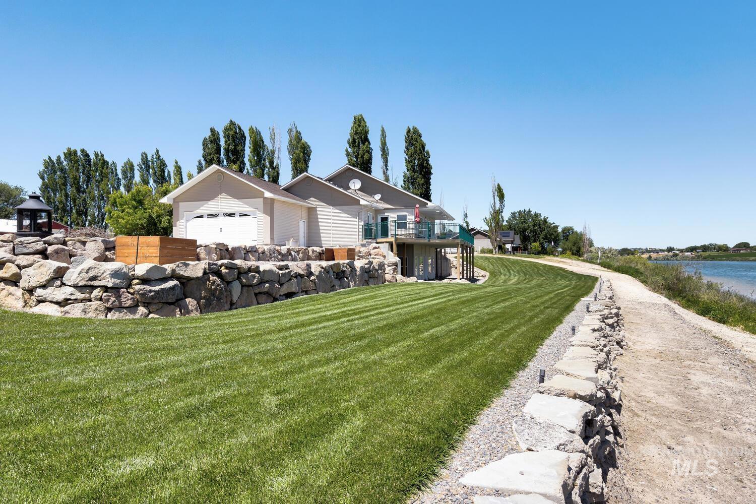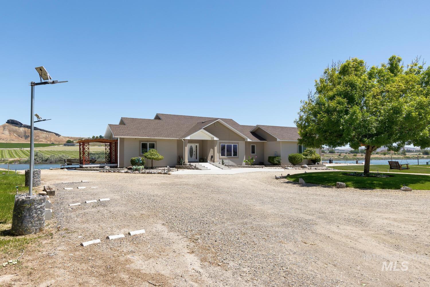 This stunning riverfront property is privately located on 5.95 acres in Marsing with 213 feet of riverfront access and direct views of Lizard Butte. Fully irrigated and meticulously maintained this property offers a large beautiful custom home built in 2000 that dotes a 1200 sqft deck and covered patio out the walk-out basement. Brazilian wood floors throughout the open living room, master and second bedroom conveniently located on the main floor. The bottom story has 2 bedrooms/bathrooms, a large living room, additional laundry and is plumbed to support a full separate kitchen - easily two separate living spaces if desired. The roughly 2500 sqft shop is heated & cooled, insulated including spray foam and drywalled. It has a full bathroom, office, laundry hook-ups and massive RV bay with clean-out, water and 220 power. No HOA or CCR`s bring animals and park your toys. Dock can be installed as well as boat launch. Lot can be split with one building permit for second home. 72 Hour Bump clause in place.