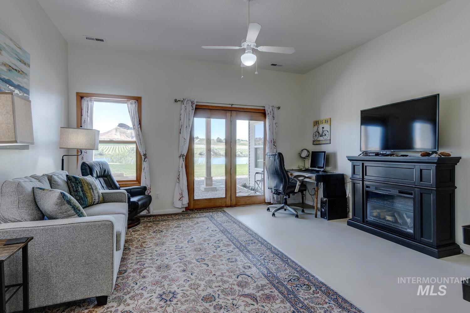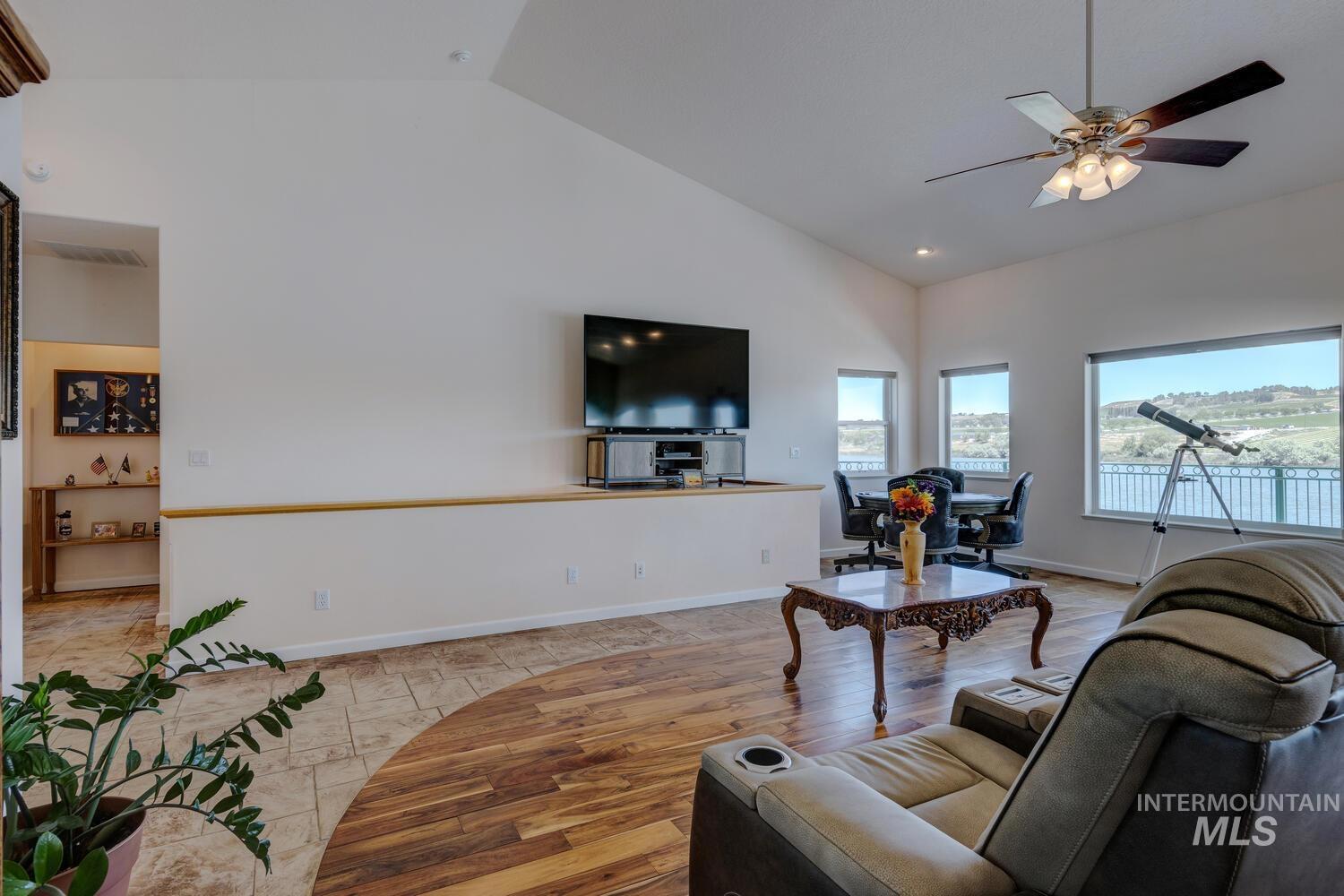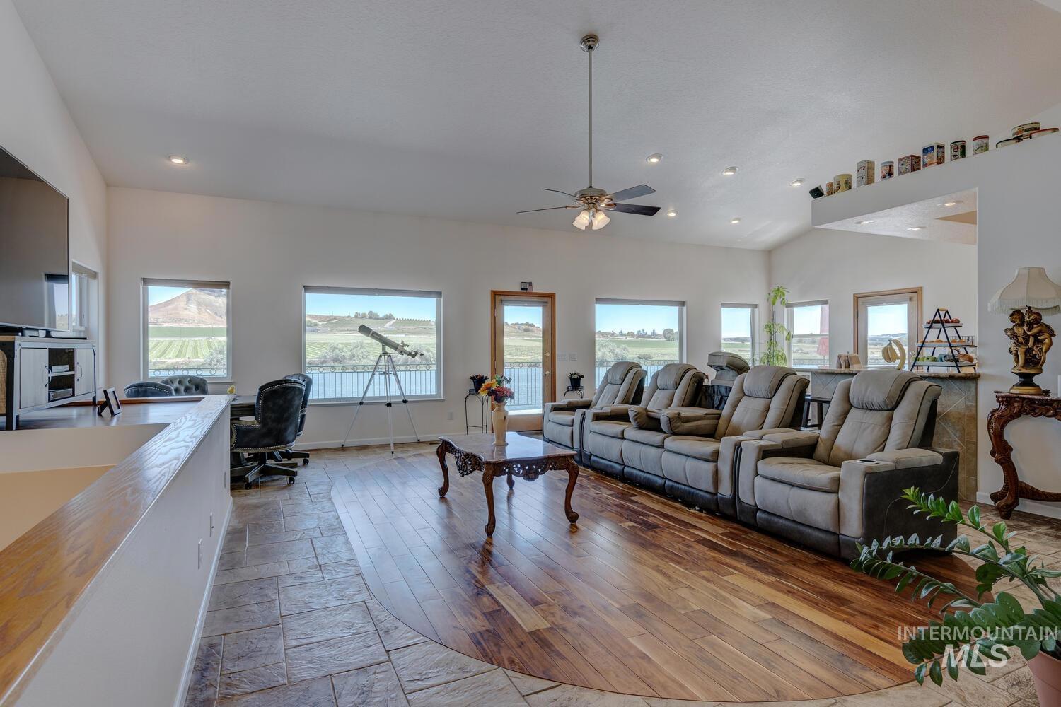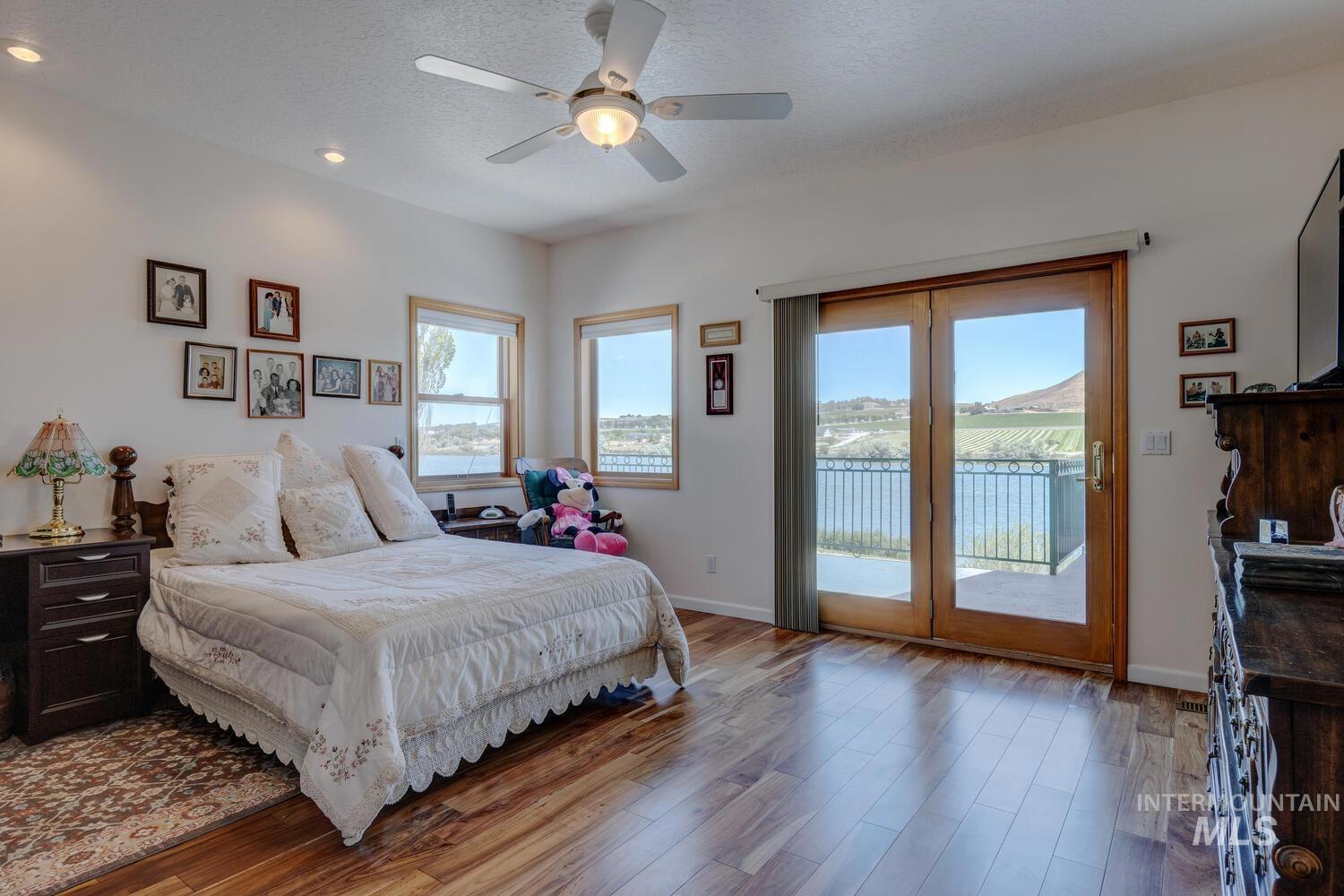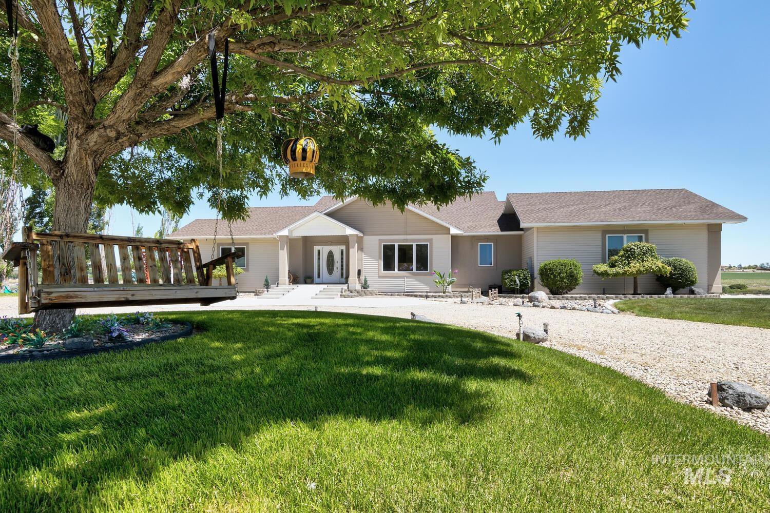 This stunning riverfront property is privately located on 5.95 acres in Marsing with 213 feet of riverfront access and direct views of Lizard Butte. Fully irrigated and meticulously maintained this property offers a large beautiful custom home built in 2000 that dotes a 1200 sqft deck and covered patio out the walk-out basement. Brazilian wood floors throughout the open living room, master and second bedroom conveniently located on the main floor. The bottom story has 2 bedrooms/bathrooms, a large living room, additional laundry and is plumbed to support a full separate kitchen - easily two separate living spaces if desired. The roughly 2500 sqft shop is heated & cooled, insulated including spray foam and drywalled. It has a full bathroom, office, laundry hook-ups and massive RV bay with clean-out, water and 220 power. No HOA or CCR`s bring animals and park your toys. Dock can be installed as well as boat launch. Lot can be split with one building permit for second home. 72 Hour Bump clause in place.