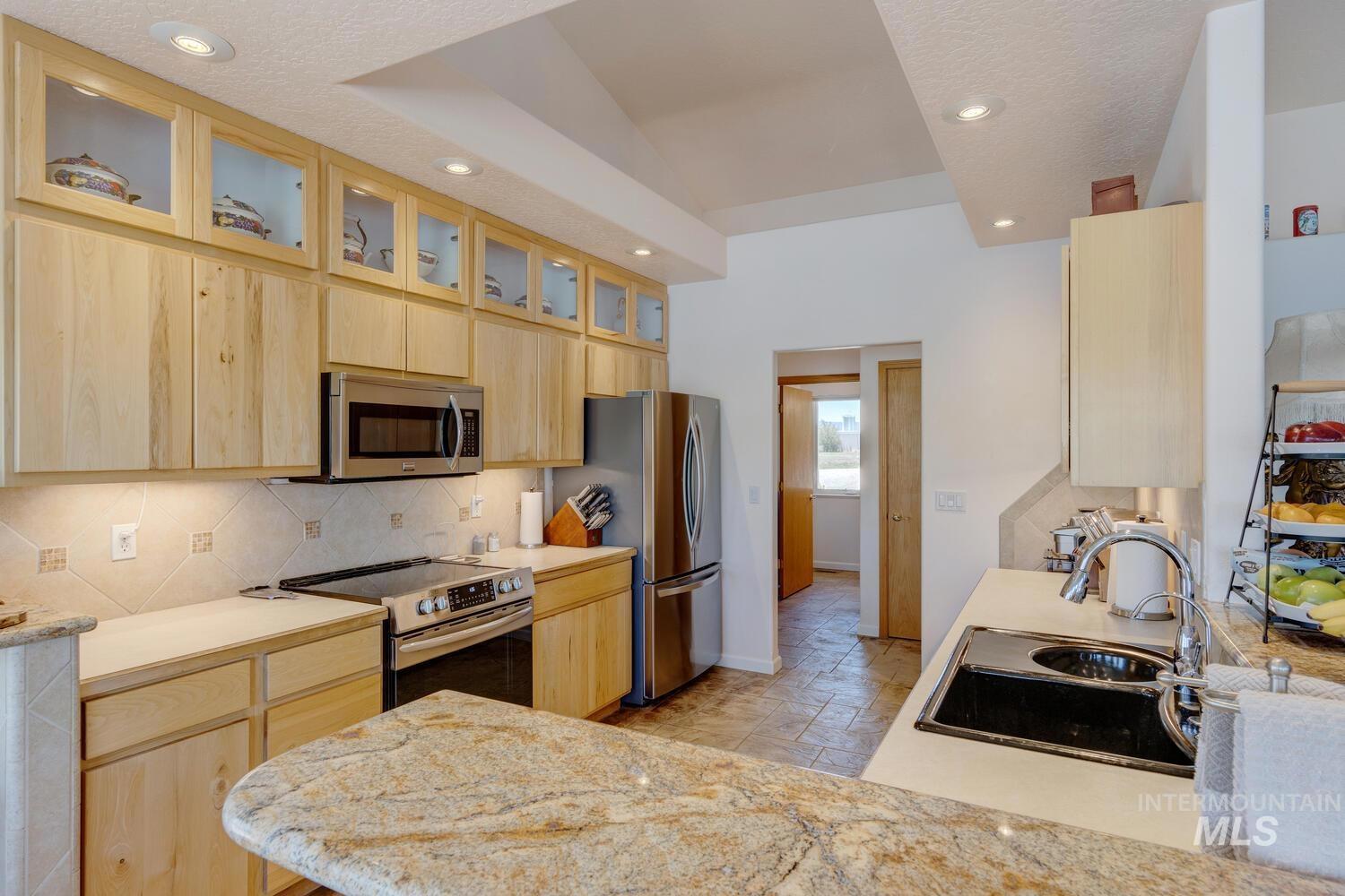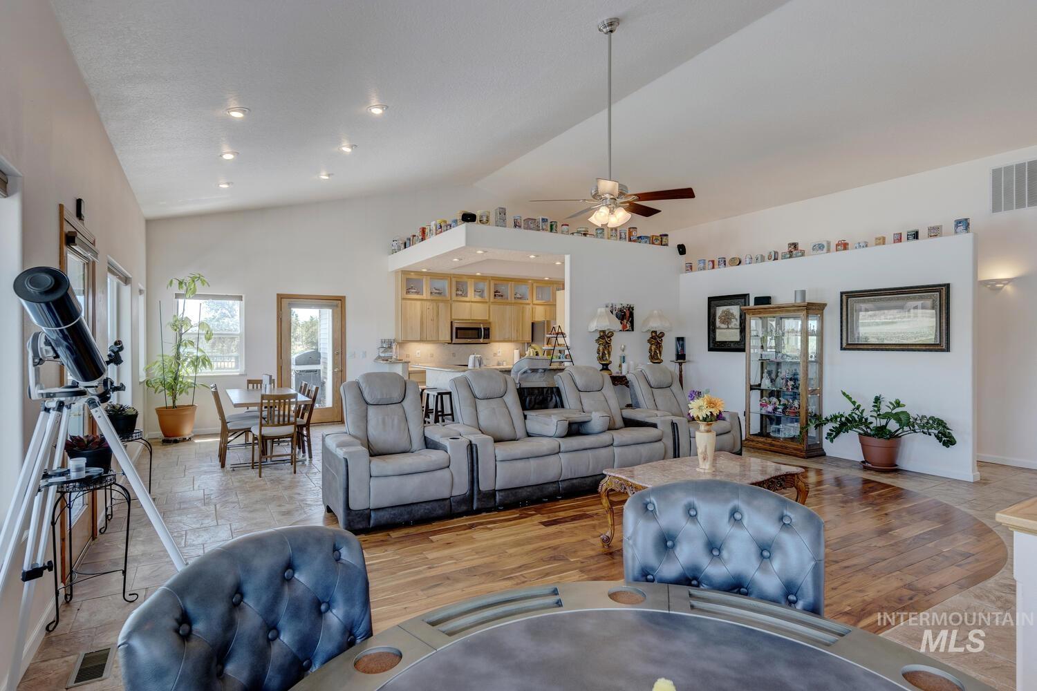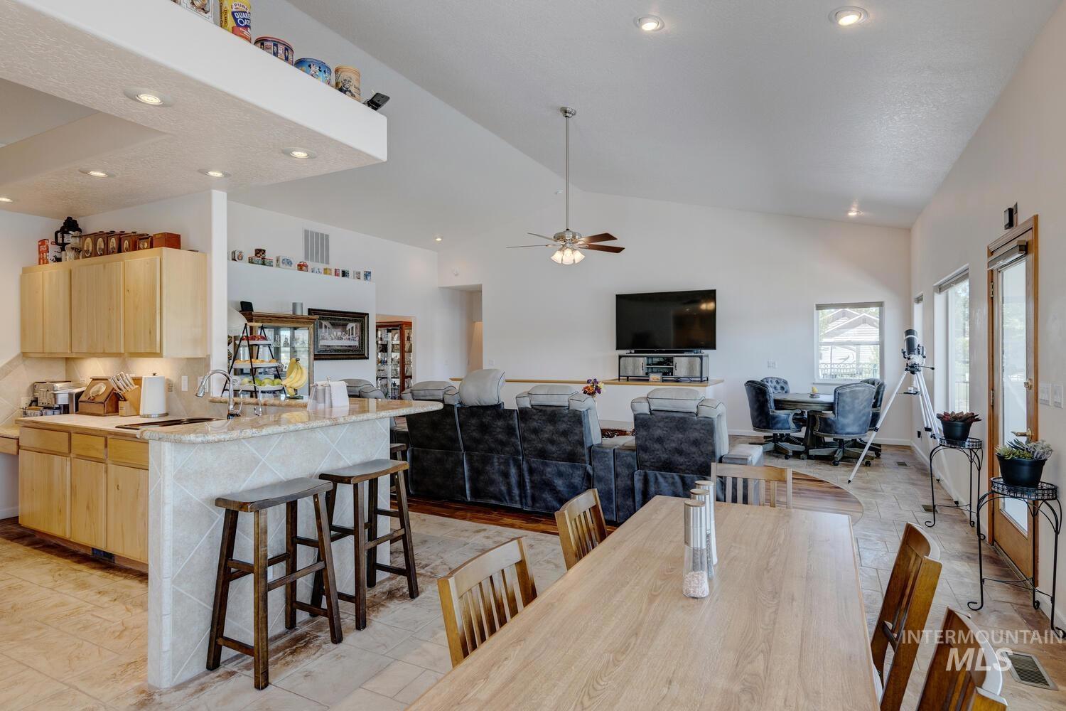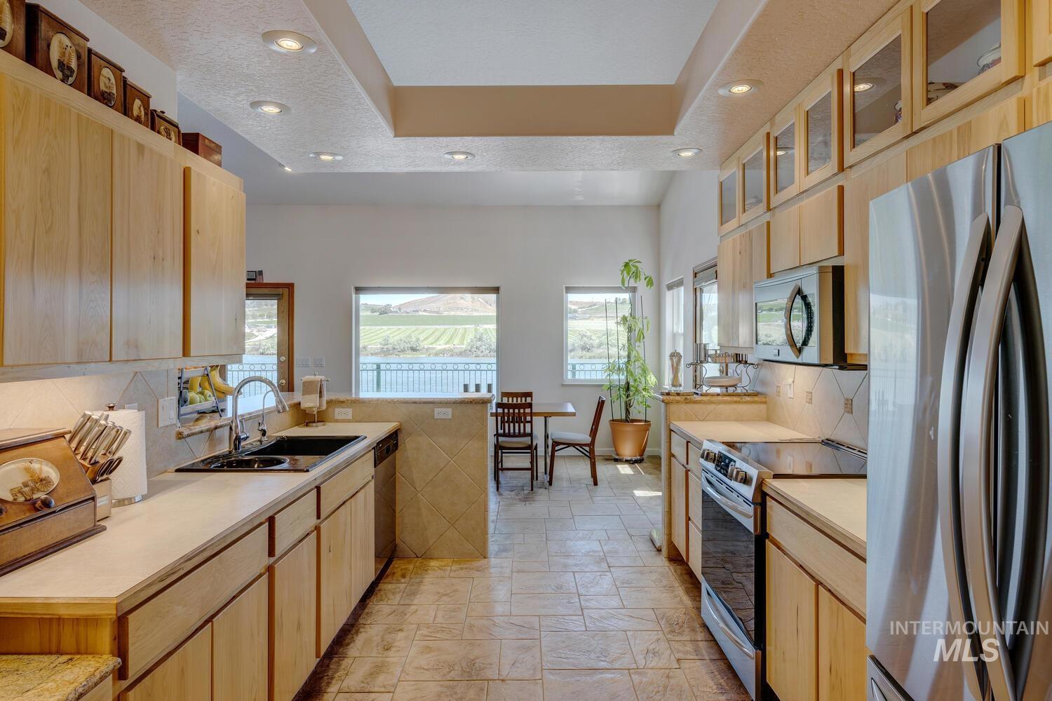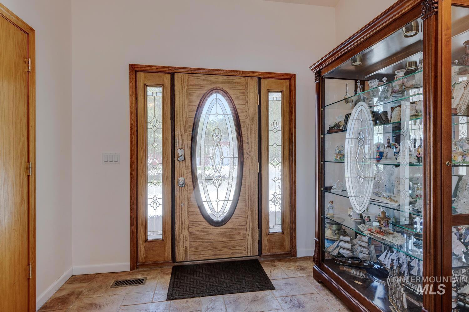 This stunning riverfront property is privately located on 5.95 acres in Marsing with 213 feet of riverfront access and direct views of Lizard Butte. Fully irrigated and meticulously maintained this property offers a large beautiful custom home built in 2000 that dotes a 1200 sqft deck and covered patio out the walk-out basement. Brazilian wood floors throughout the open living room, master and second bedroom conveniently located on the main floor. The bottom story has 2 bedrooms/bathrooms, a large living room, additional laundry and is plumbed to support a full separate kitchen - easily two separate living spaces if desired. The roughly 2500 sqft shop is heated & cooled, insulated including spray foam and drywalled. It has a full bathroom, office, laundry hook-ups and massive RV bay with clean-out, water and 220 power. No HOA or CCR`s bring animals and park your toys. Dock can be installed as well as boat launch. Lot can be split with one building permit for second home. 72 Hour Bump clause in place.