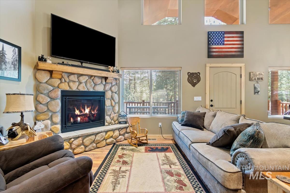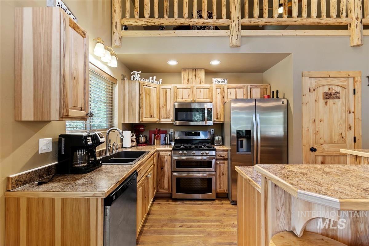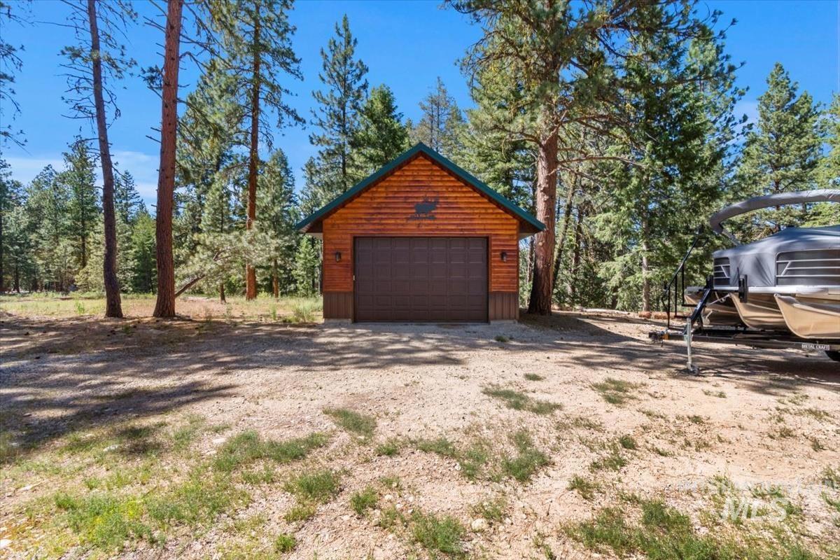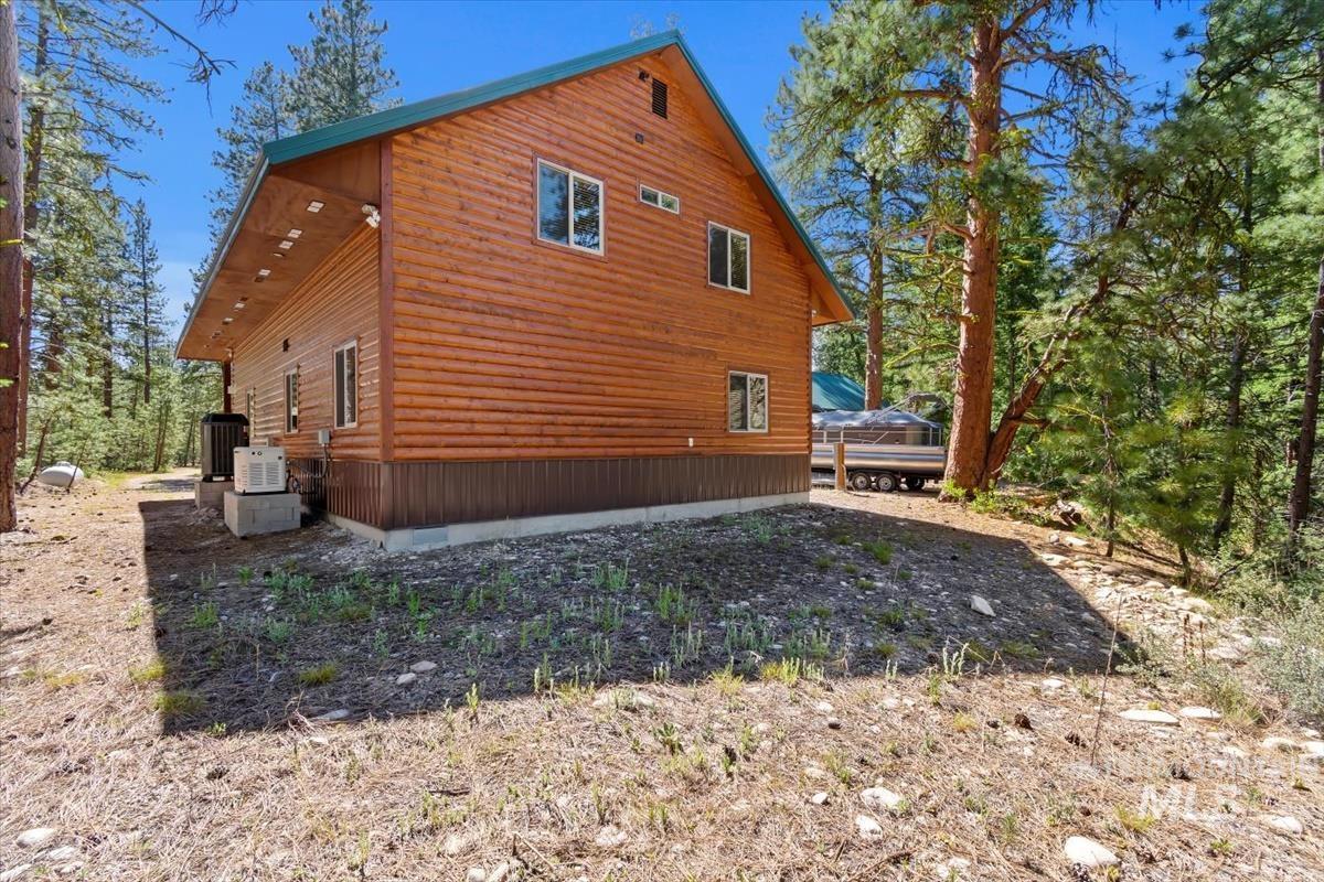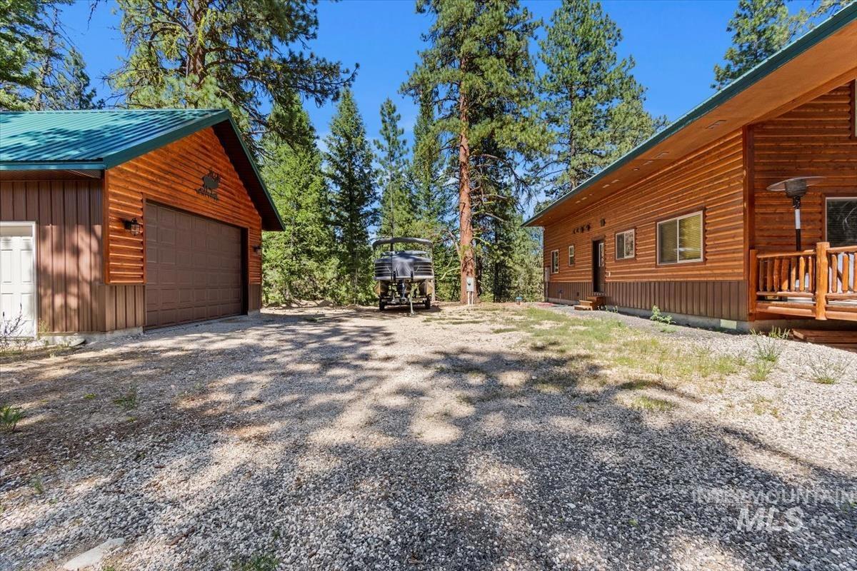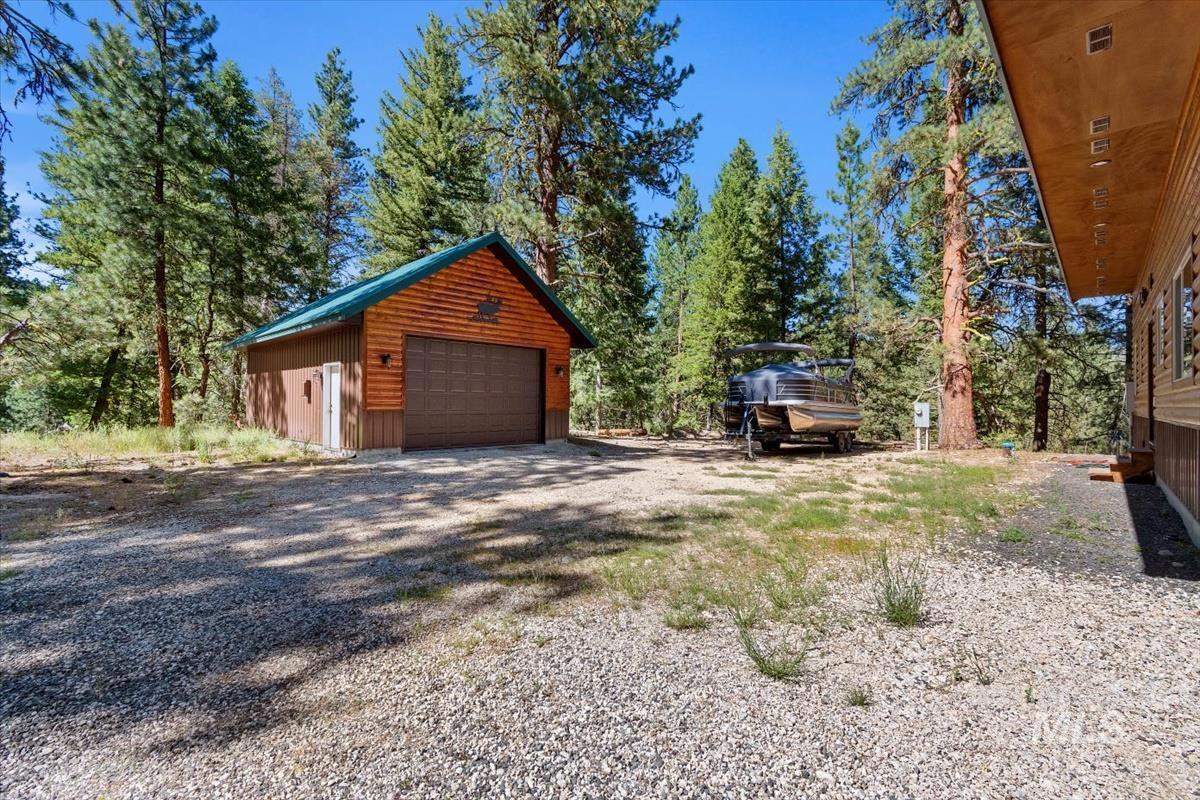 Beautiful Featherville, Year around access No CCRS, Home features Log stained and sealed siding with metal waynes coat base perimeter dimmable eave lighting R-23 insulation in the walls and R-50 in the attic 2x6 Construction Milgard low E Windows Metal 8/12 pitch roof with4 ft. eaves to keep snow away from cabin. LP Gas port on Deck for BBQ. Interior Features Knotty Hickory cabinets with soft close Rustic Lvp flooring carpeting in bedrooms and loft. Whole house water filter Water Softener 98% efficient tankless water heater 97% Efficient 2 stage variable speed Trane furnace with High Efficient 19 Seer heat pump. Nexia connected thermostat with cabin perimeter HD night Vision Cameras. Whole house automated generator. House can be winterized in moments via plumbing whole house drain. Solid wood knotty interior doors, Solid rustic wood window blinds. American Standard comfort height toilets, LP Gas fireplace in Living Room, GARAGE: 20x30 Fully insulated and heated shop with metal siding and 8/12 pitch. RV 110