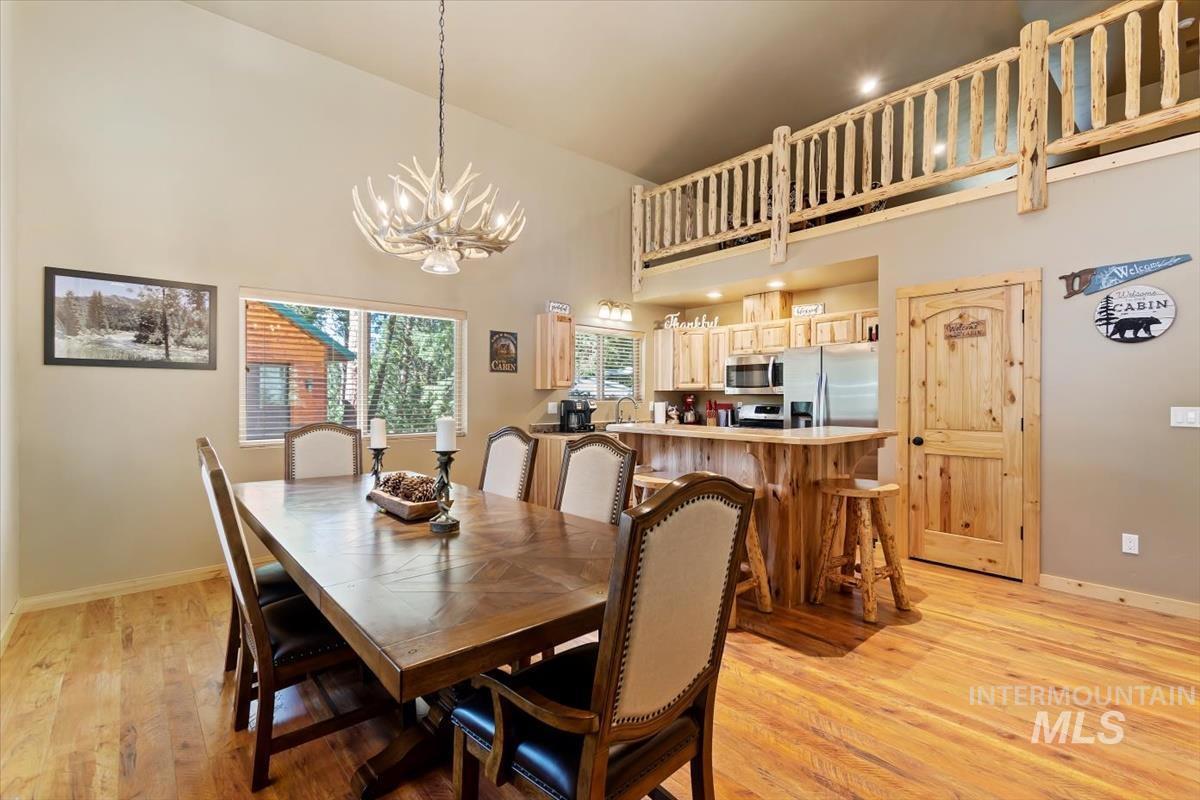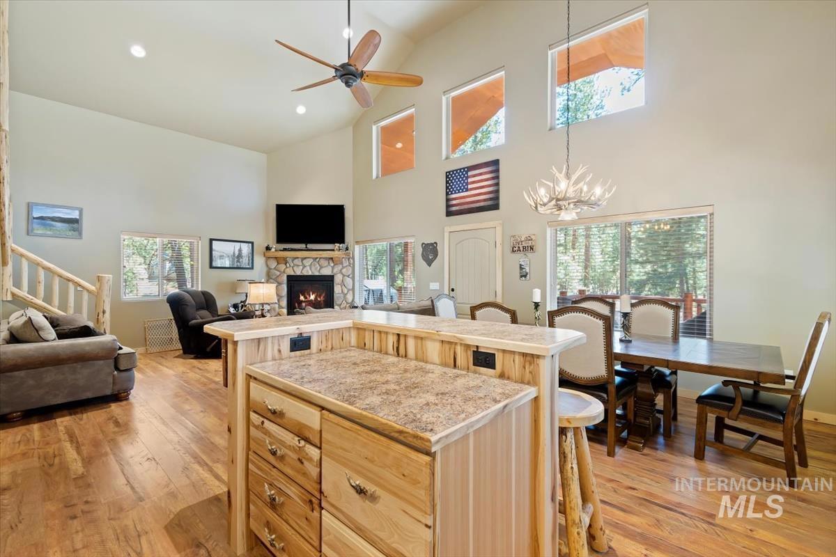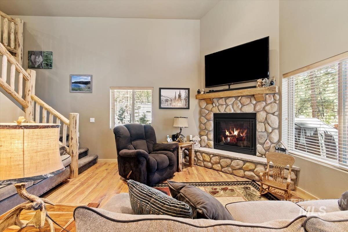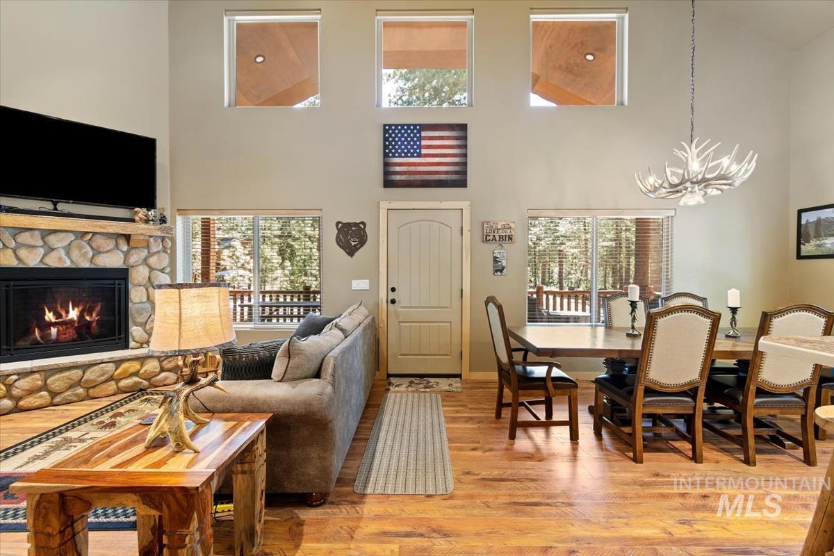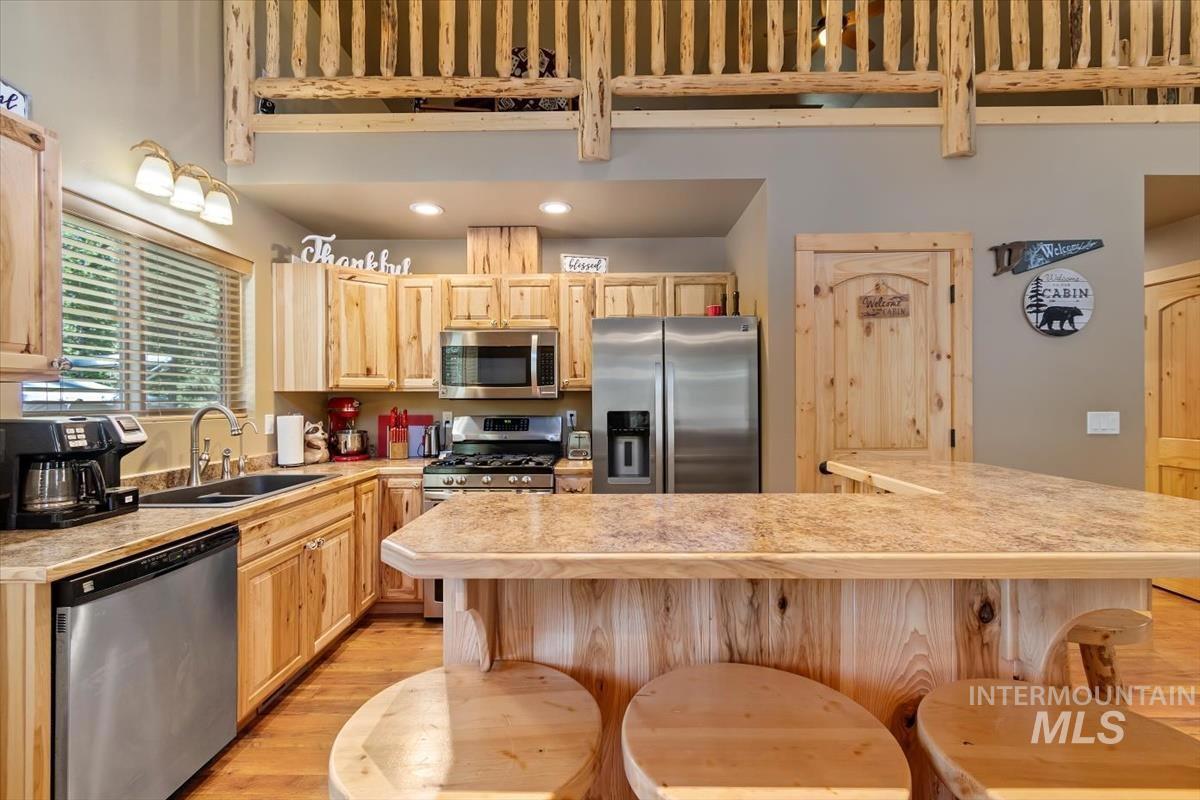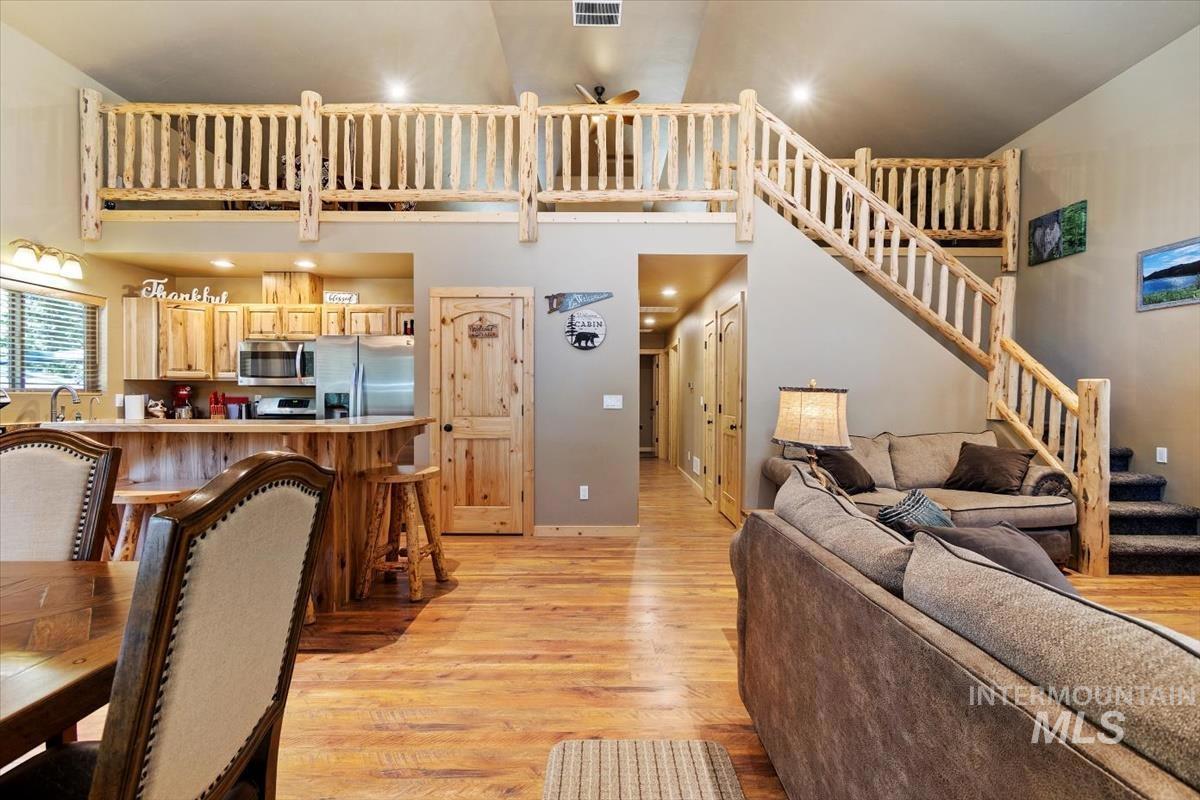 Beautiful Featherville, Year around access No CCRS, Home features Log stained and sealed siding with metal waynes coat base perimeter dimmable eave lighting R-23 insulation in the walls and R-50 in the attic 2x6 Construction Milgard low E Windows Metal 8/12 pitch roof with4 ft. eaves to keep snow away from cabin. LP Gas port on Deck for BBQ. Interior Features Knotty Hickory cabinets with soft close Rustic Lvp flooring carpeting in bedrooms and loft. Whole house water filter Water Softener 98% efficient tankless water heater 97% Efficient 2 stage variable speed Trane furnace with High Efficient 19 Seer heat pump. Nexia connected thermostat with cabin perimeter HD night Vision Cameras. Whole house automated generator. House can be winterized in moments via plumbing whole house drain. Solid wood knotty interior doors, Solid rustic wood window blinds. American Standard comfort height toilets, LP Gas fireplace in Living Room, GARAGE: 20x30 Fully insulated and heated shop with metal siding and 8/12 pitch. RV 110