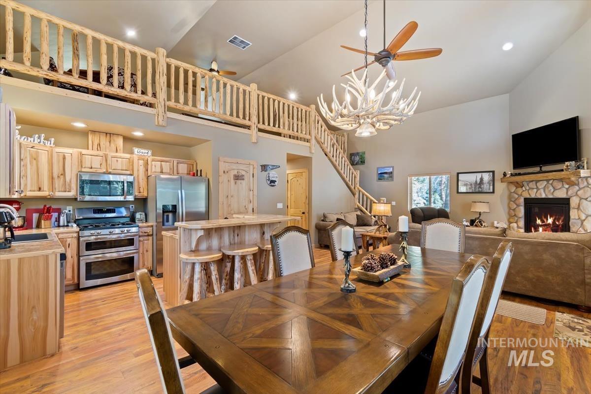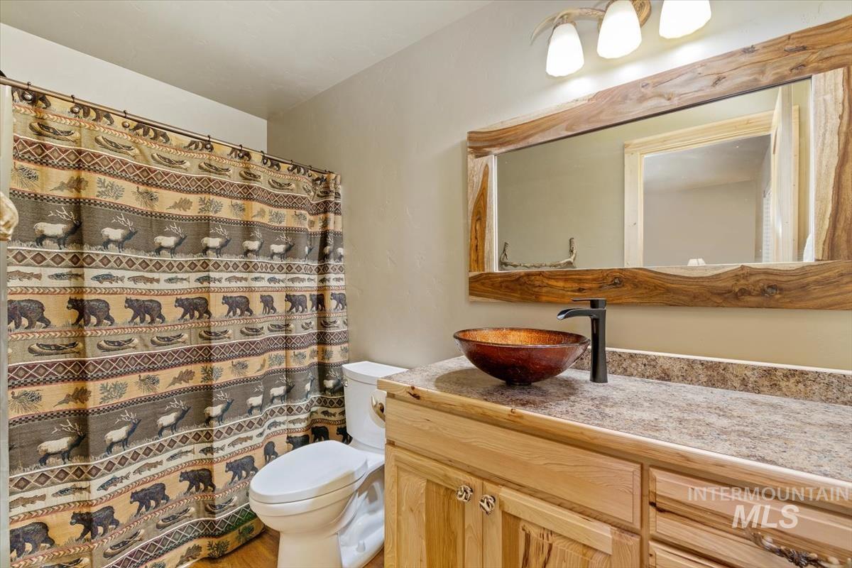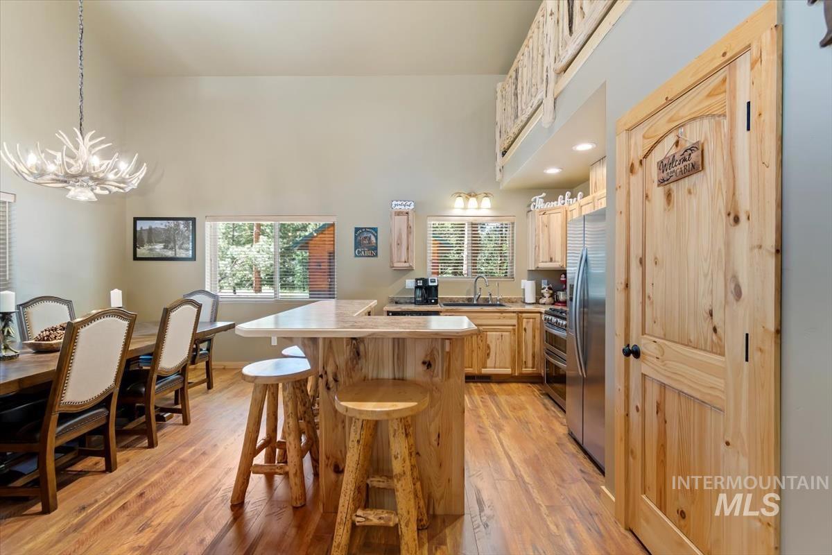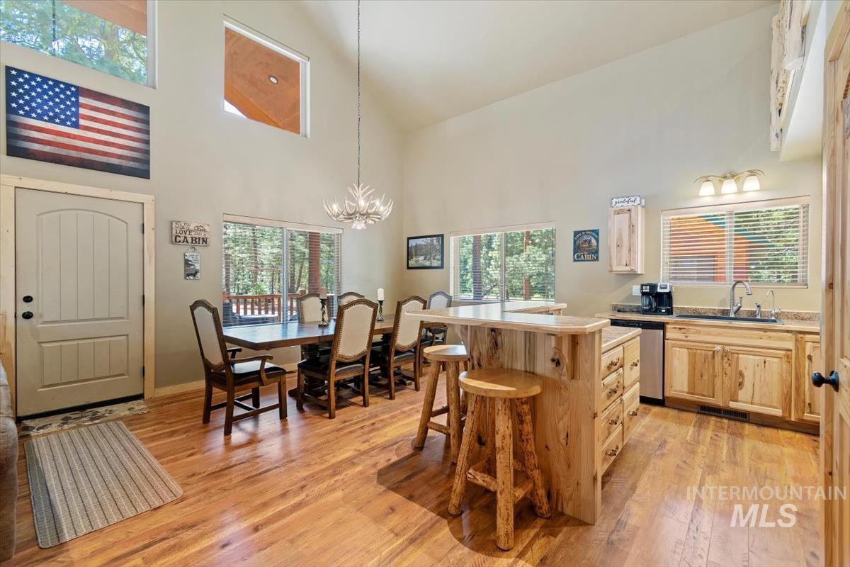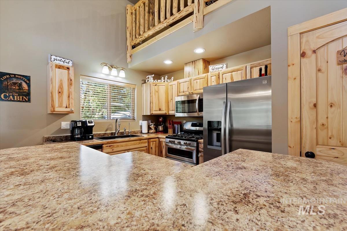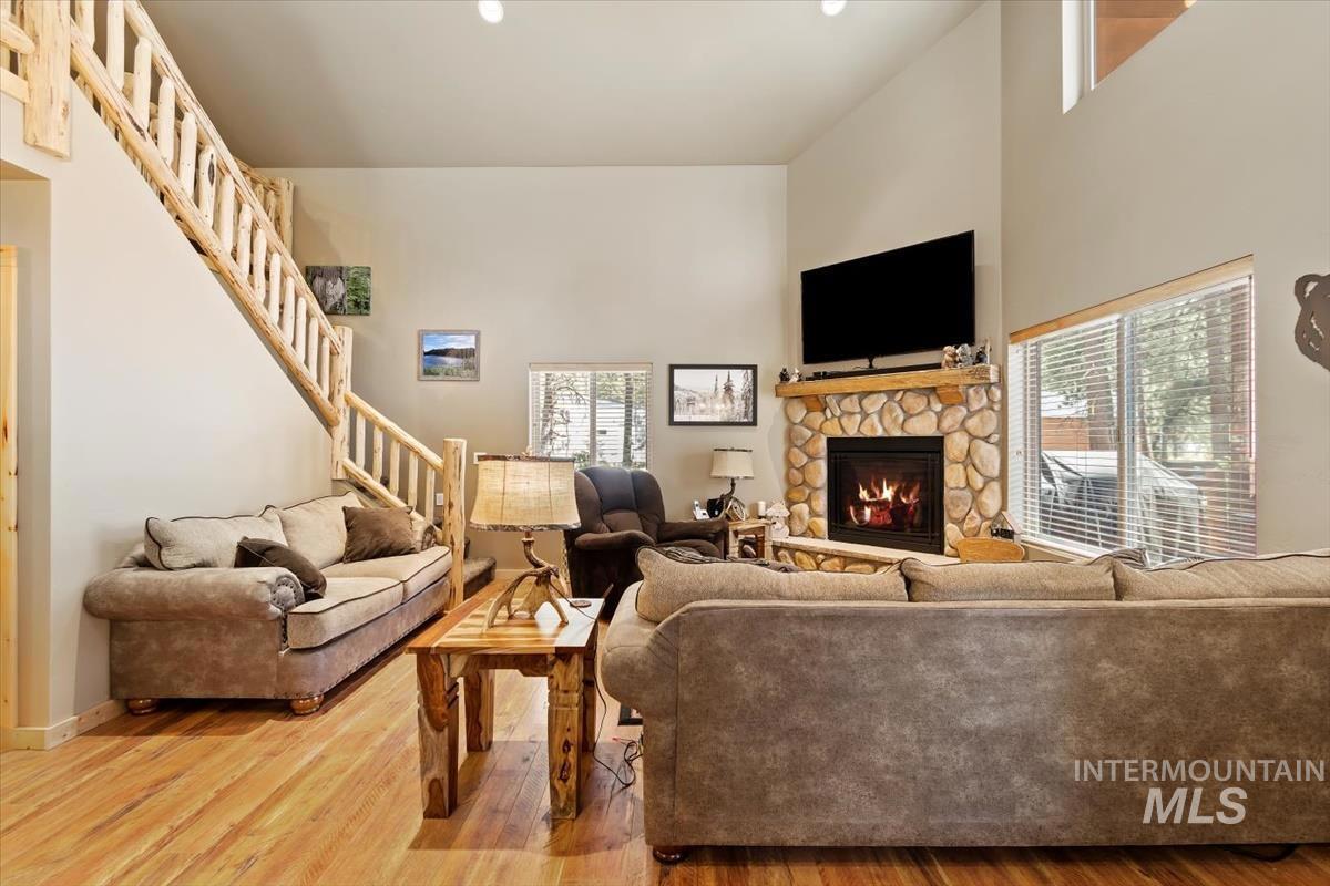 Beautiful Featherville, Year around access No CCRS, Home features Log stained and sealed siding with metal waynes coat base perimeter dimmable eave lighting R-23 insulation in the walls and R-50 in the attic 2x6 Construction Milgard low E Windows Metal 8/12 pitch roof with4 ft. eaves to keep snow away from cabin. LP Gas port on Deck for BBQ. Interior Features Knotty Hickory cabinets with soft close Rustic Lvp flooring carpeting in bedrooms and loft. Whole house water filter Water Softener 98% efficient tankless water heater 97% Efficient 2 stage variable speed Trane furnace with High Efficient 19 Seer heat pump. Nexia connected thermostat with cabin perimeter HD night Vision Cameras. Whole house automated generator. House can be winterized in moments via plumbing whole house drain. Solid wood knotty interior doors, Solid rustic wood window blinds. American Standard comfort height toilets, LP Gas fireplace in Living Room, GARAGE: 20x30 Fully insulated and heated shop with metal siding and 8/12 pitch. RV 110