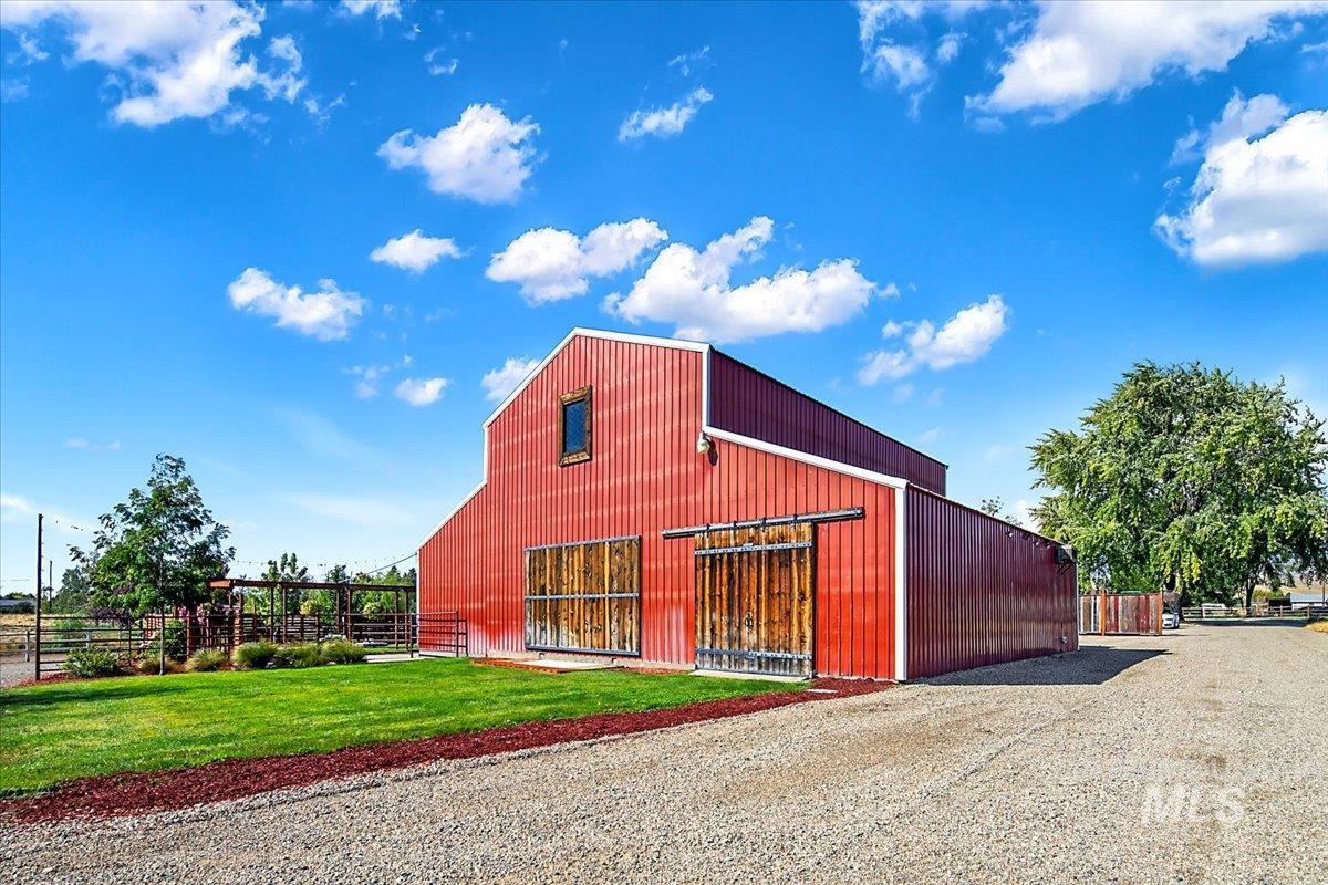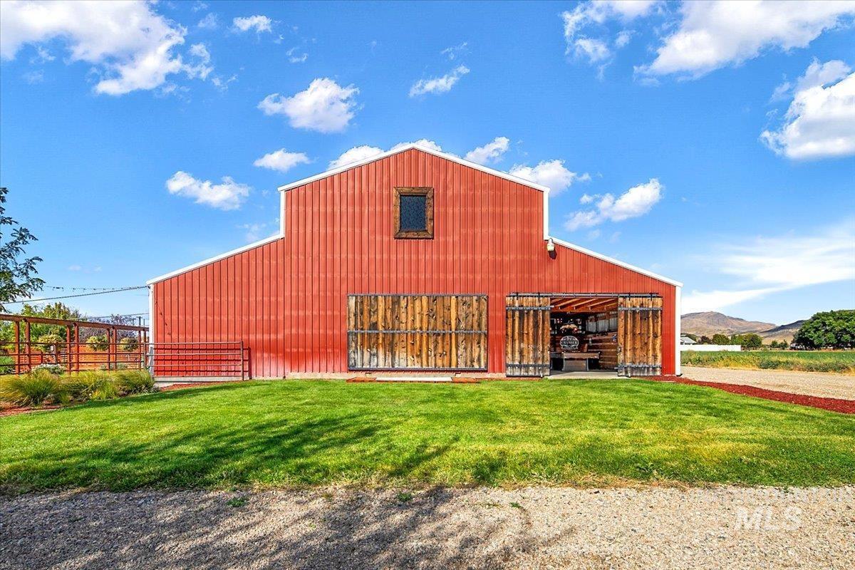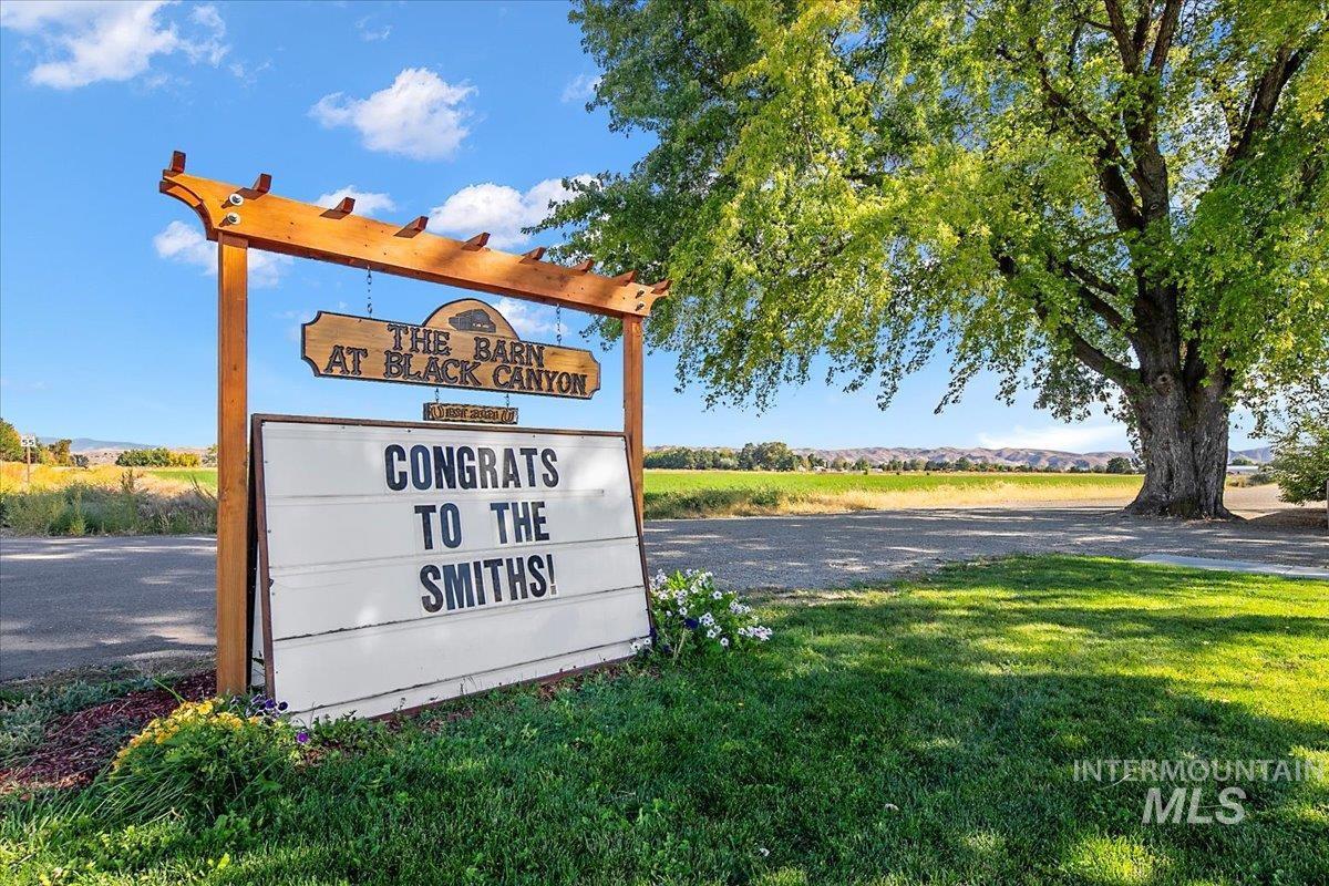 Welcome to the Barn at Black Canyon! Premier wedding and event venue surrounded by open skies and beautiful mountain views. What was once a bare piece of land has been transformed into a beautifully landscaped and meticulously cared for retreat in the country. All the work has been done for you! This beautiful 5 acre oasis is located in Gem County, just a short 5 minute drive to town and Black Canyon Reservoir. This expansive property includes an updated farm house, quaint yard, garage/shop, large barn venue, and a wide open field prepped for your next venture. The venue includes bridesmaid & groomsman quarters, luxury outdoor restrooms, a billiard room, built in bar and open space for seating and dancing. This turn key operation is ready for you! No HOA, possibility of a second dwelling, ample on site parking and abundant irrigation with accessories included. Animals, trailers & toys welcome. Business assets & financials available upon request. All business operating equipment included with sale.