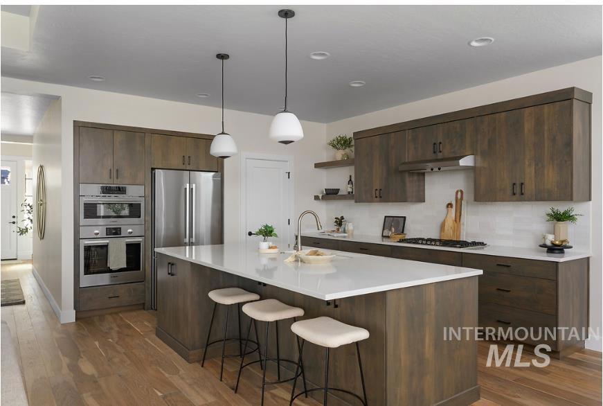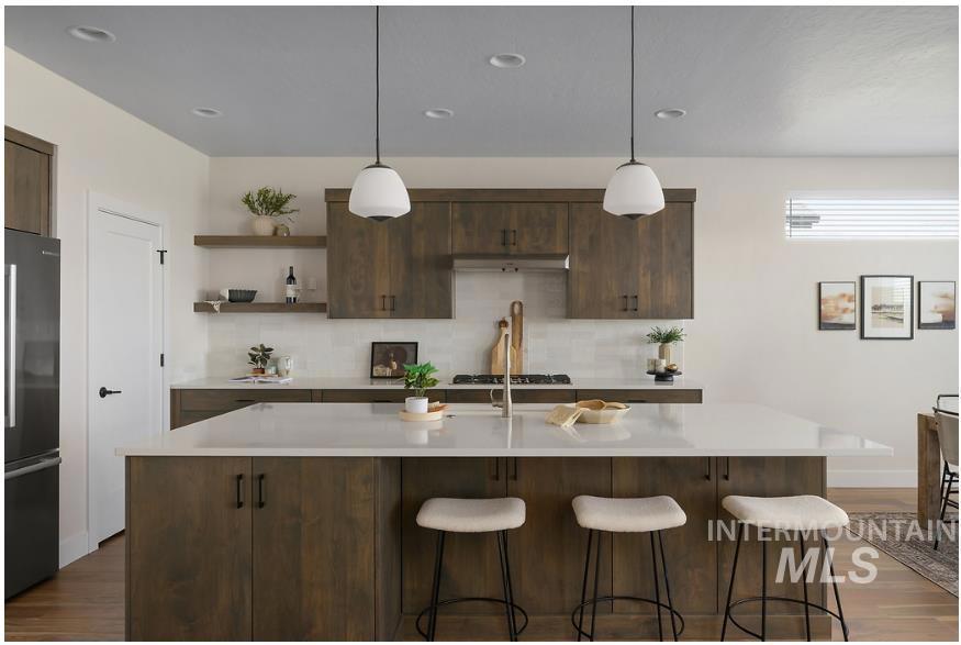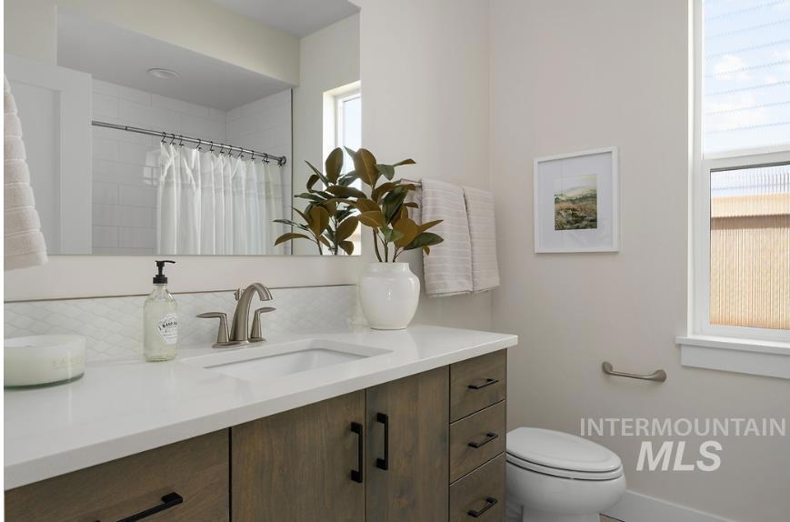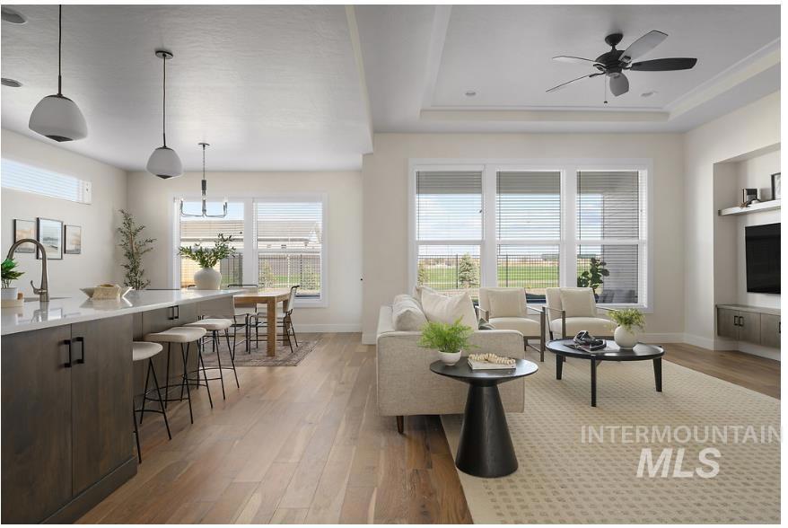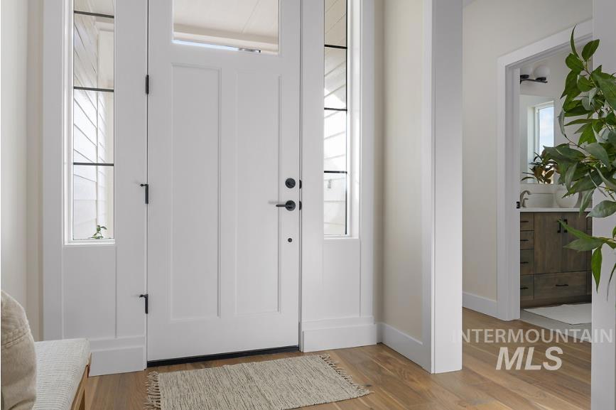The WESTON is a beautifully designed single-level home that offers flexibility and comfort to fit your lifestyle. Located in the highly sought after master-planned community, Pinnacle in Meridian, this home provides easy access to I-84 for a convenient commute to Boise. This home features a private hallway leading to the primary suite, creating a peaceful retreat away from the main living areas. A flex room with a large walk-in closet offers versatility perfect as a fourth bedroom, home office, or creative space. The kitchen showcases open shelving for a modern, stylish touch, while the large, covered patio and no backyard neighbors make for ideal, private outdoor living. The oversized 3 car garage provides space for storage, workbench or home gym The community has beautiful walking paths leading to nearby parks, pools, and other amenities. The Weston offers the perfect balance of privacy, connection, and modern living. (PHOTO SIMILAR- COLORS AND FIXTURES VARY)