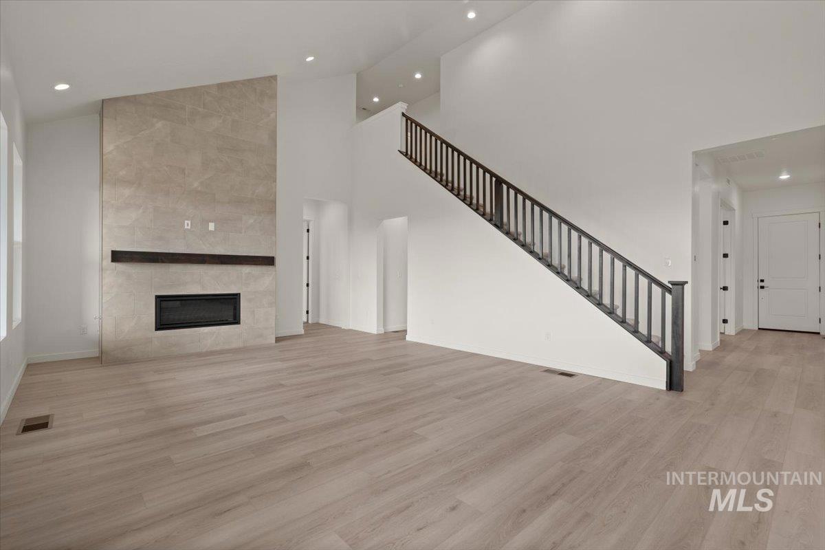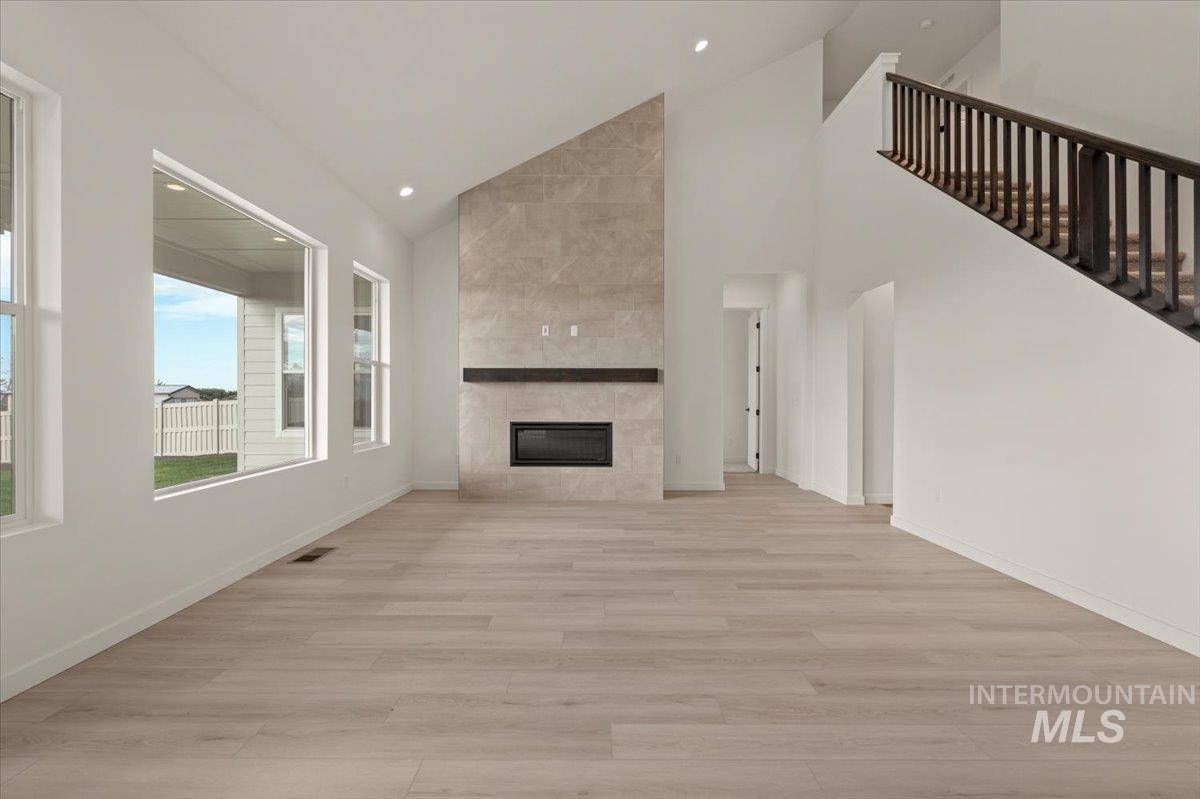 "The Helena" by Richmond American Homes, available now. This home is open daily from 10 AM to 6 PM, and no appointment is needed to visit. You can stop by the Information Center at 1387 Stirling Meadows St, Middleton, ID 83644 to see our full inventory of completed and upcoming homes. Please feel free to ask about current financing options. These Portfolio collection homes feature luxury finishes such as 10-foot ceilings, 8-foot entry and interior doors, gourmet kitchens with quartz countertops, gas fireplaces, covered patios, upgraded wood soft-close cabinets, and deluxe primary baths. Additionally, all homes come with tankless water heaters, are HERS rated for superior efficiency and low utility bills, and include front and back landscaping, sprinklers, and fencing. Restrictions apply.
