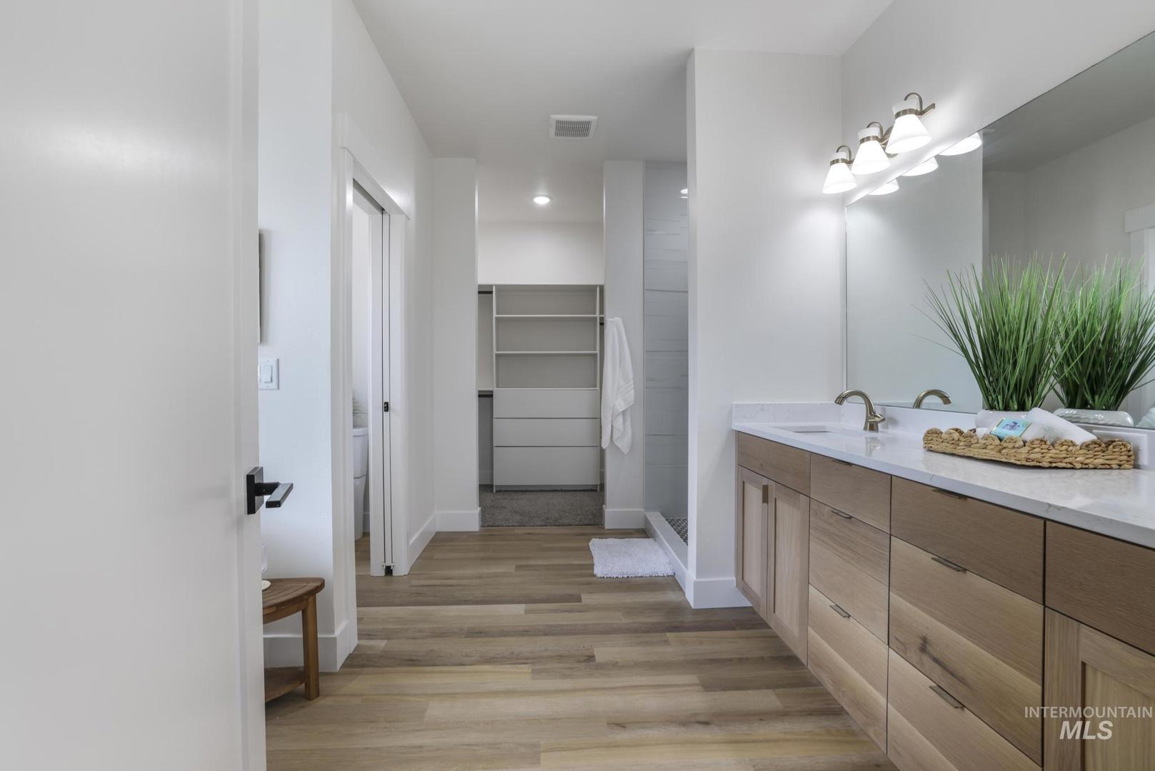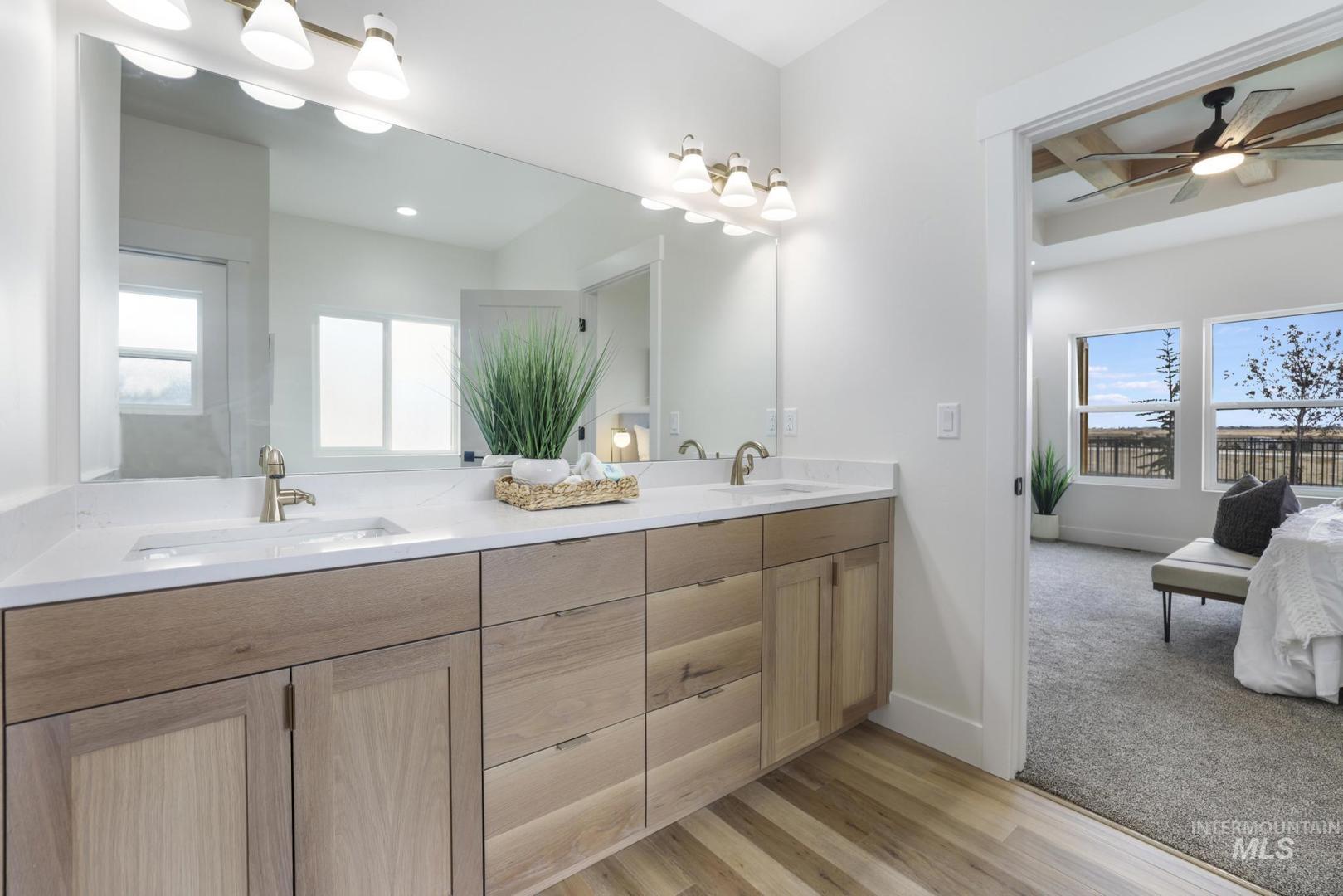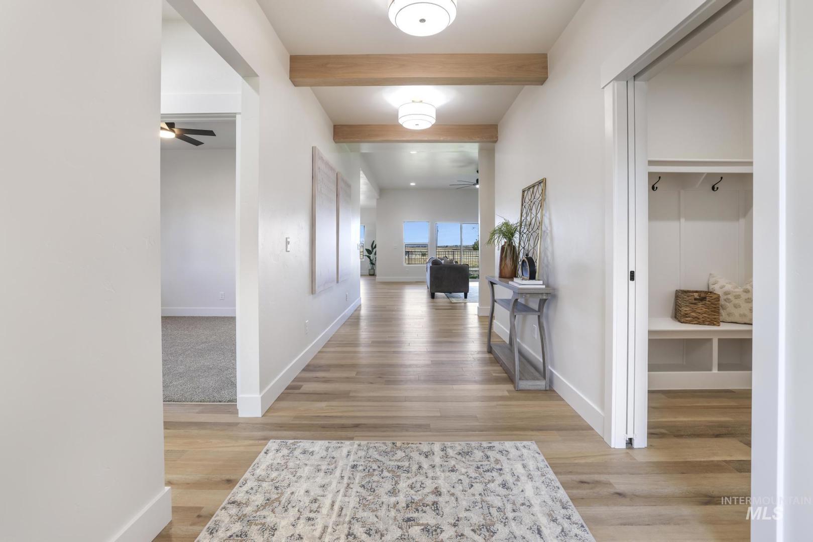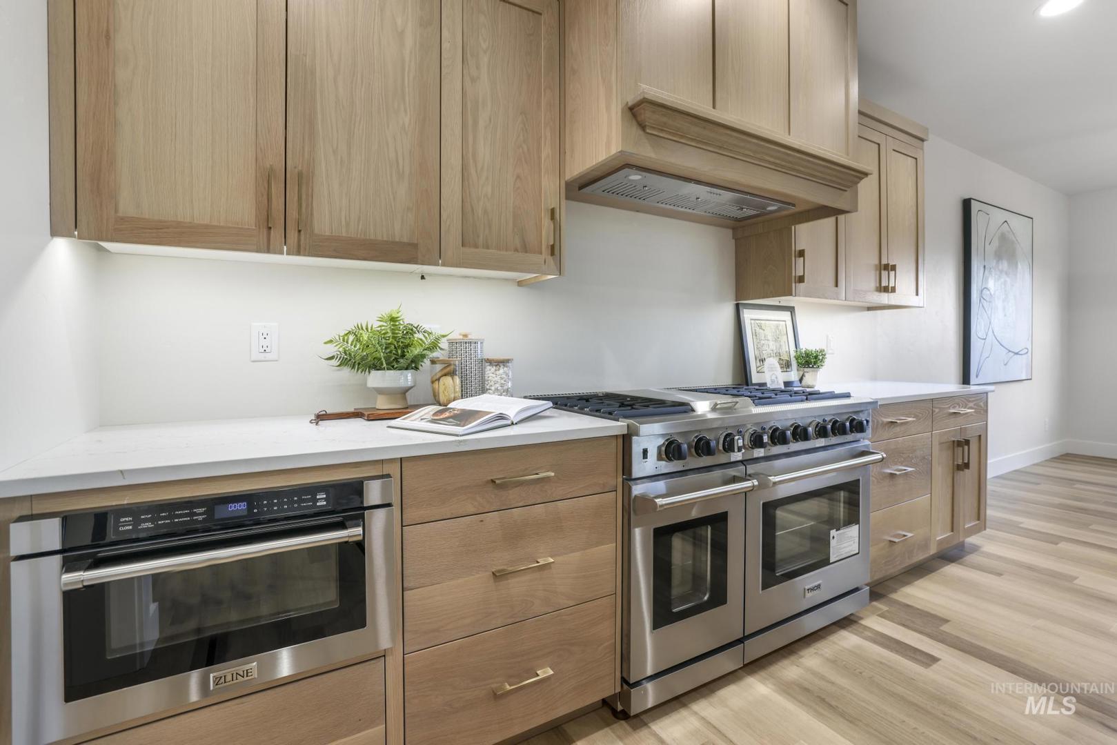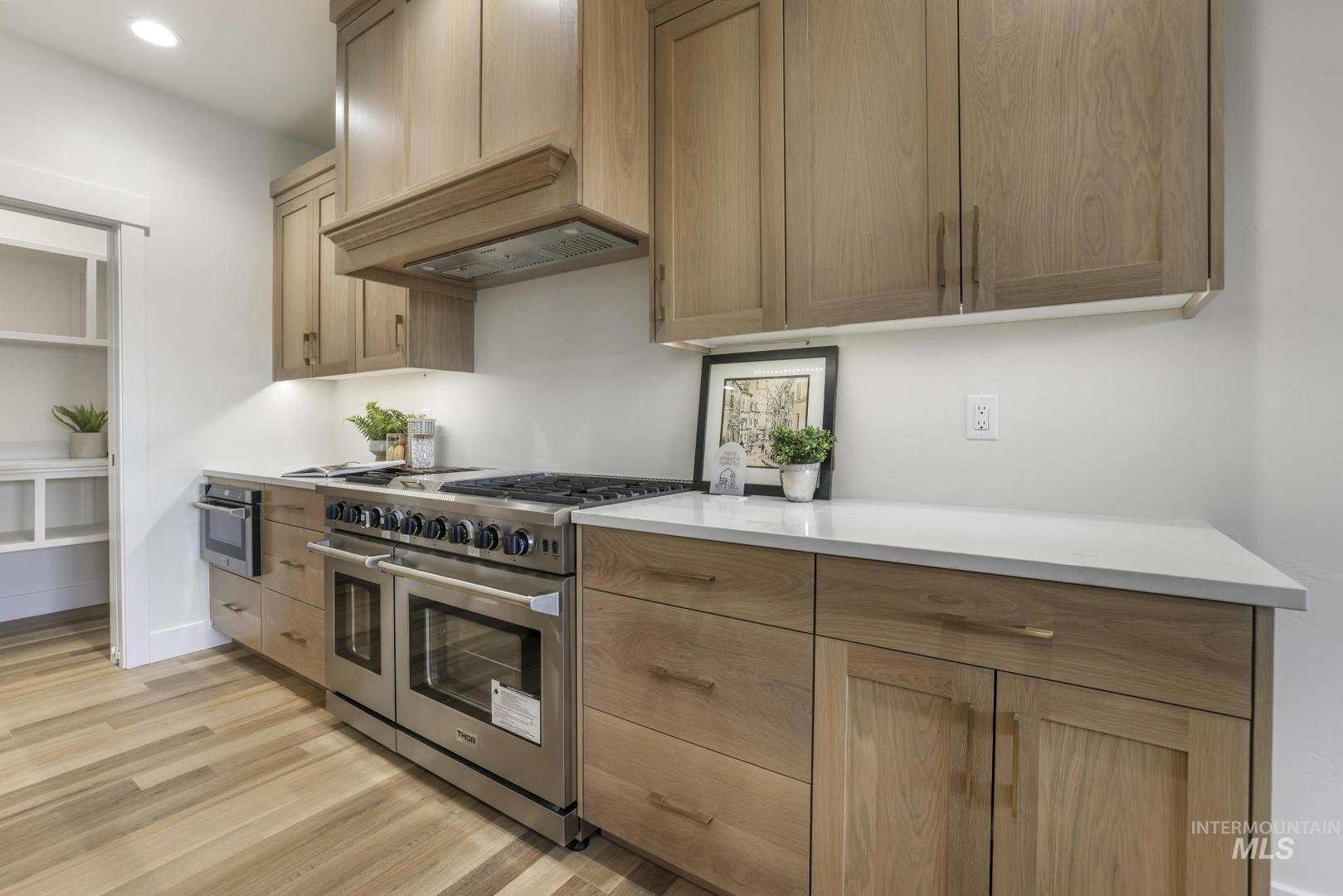 Experience luxury living in this brand new custom home by Tyrel Hoagland, thoughtfully designed and built with attention to every detail. Nestled inside a private gated community near the canyon, shopping and fine dining, this residence blends modern design with timeless comfort. Step inside and be welcomed by warm LVP flooring throughout, soaring ceilings and an open layout perfect for entertaining. This kitchen is a showstopper with white oak cabinetry, Valor Gold counters, a full-height tile backsplash, and a walk-in pantry with quartz counters. High-end Thor appliances, including a 48-inch 7-burner range and matching dishwasher, elevate every culinary experience. Retreat to the primary suite where built-in dressers provide seamless storage and the spa-like bathroom invites relaxation with a pedestal tub, floor-mount filler, and a custom tile walk-in shower. The guest bathroom is equally refined with designer tile finishes. Additional highlights include a statement-making kitchen backsplash, thoughtfully chosen fixtures and a floor plan that maximizes both style and function. Every corner reflects the craftsmanship and signature design. This home is more than a place to live, it is a lifestyle of elegance and comfort in one of the area’s most sought-after communities.