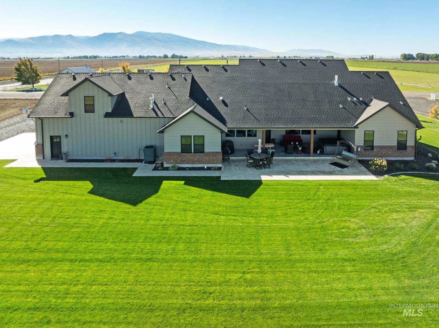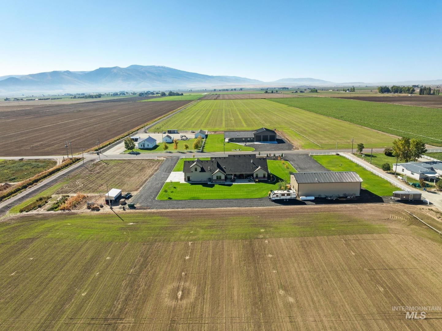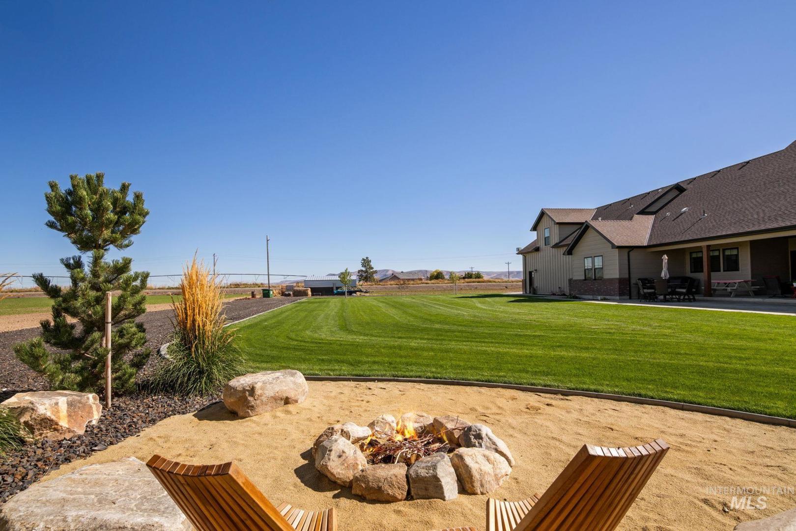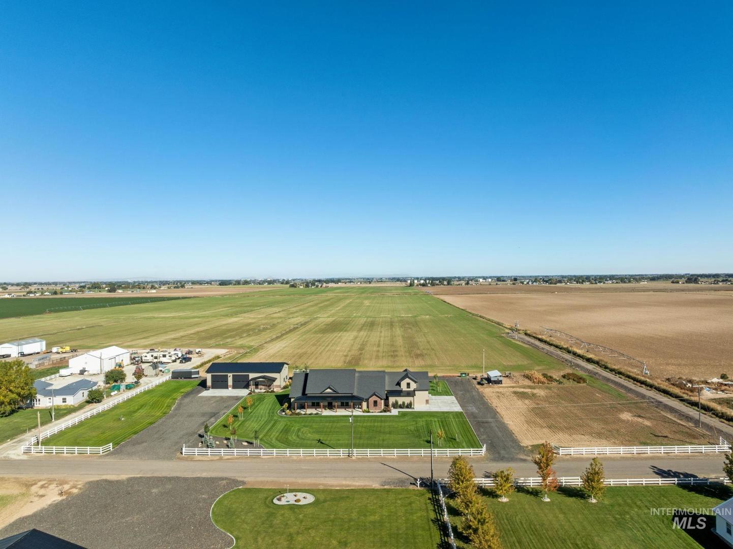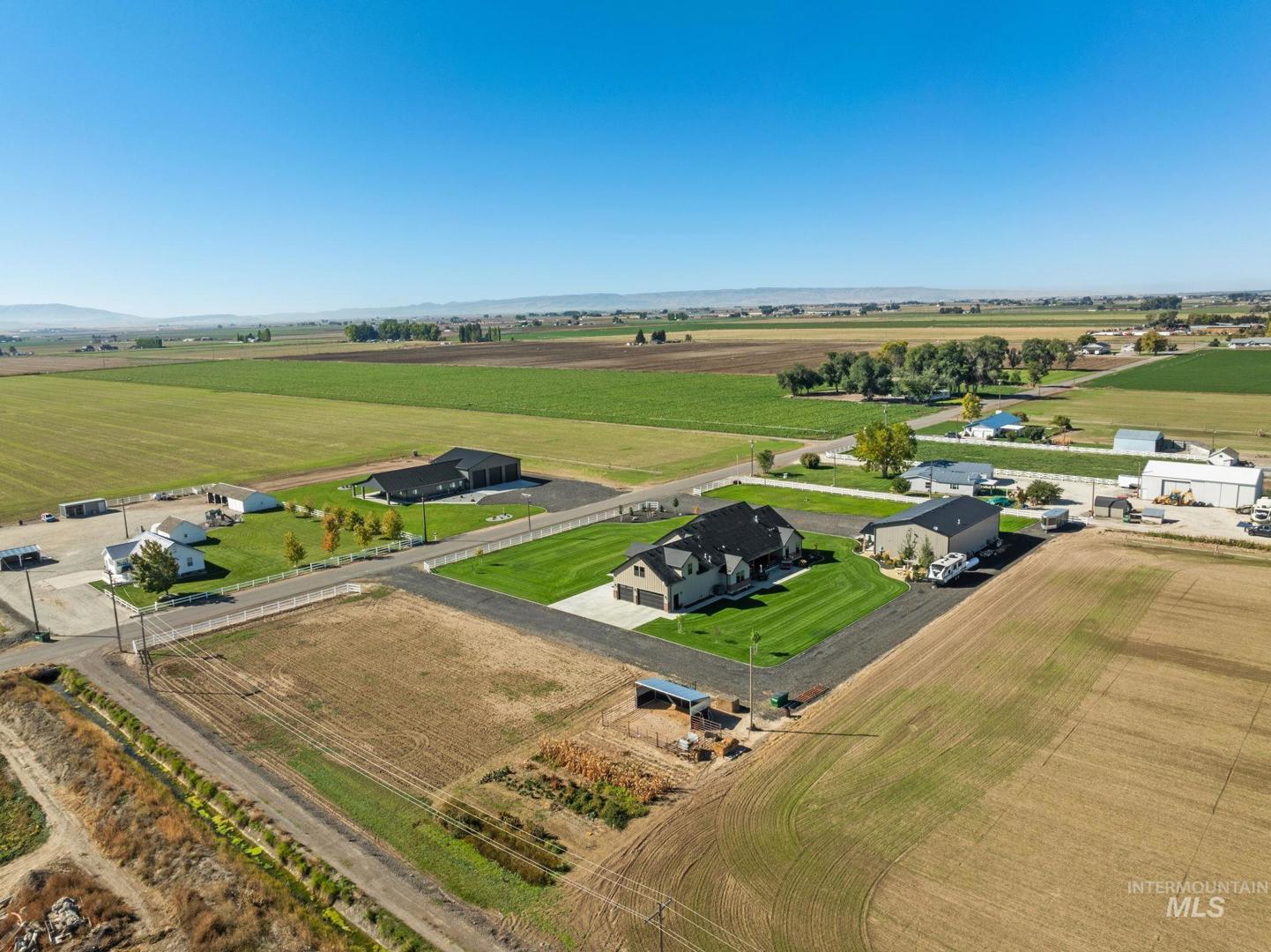 Modern Country Luxury on 3 acres! This custom home blends high-end finishes with open, inviting spaces for effortless family living. The gourmet kitchen features quartzite countertops, a 6-burner propane range with grill, dual ovens, pot filler, spacious butler’s pantry, and all kitchen appliances included. With a formal dining room and open layout, it’s perfect for gatherings and home cooking. The living room showcases 10-ft ceilings, custom built-ins, and a striking floor-to-ceiling stone fireplace that anchors the home. The primary suite with vaulted ceiling offers dual vanities, a tiled walk-in shower, soaker tub, and generous closet with built-in safe room. A versatile craft or office space adds flexibility for work or hobbies. Outdoors, unwind on the covered patio with hot tub, gather by the firepit, or tend the garden surrounded by open country views. The landscaped yard features curbing, vinyl fencing, sprinklers, Burley irrigation shares, and an RV hook-up. The insulated and heated 70`×40` shop provides space for projects, storage, and a man room with A/C, kitchenette, and half bath. Move-in ready—This Home is where modern comfort meets Idaho country living.