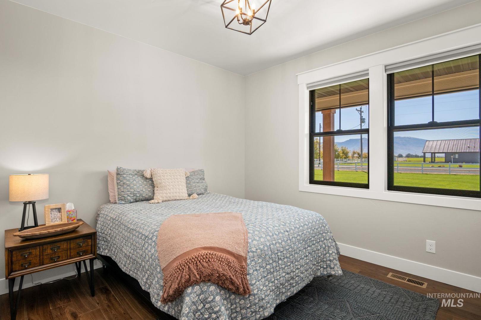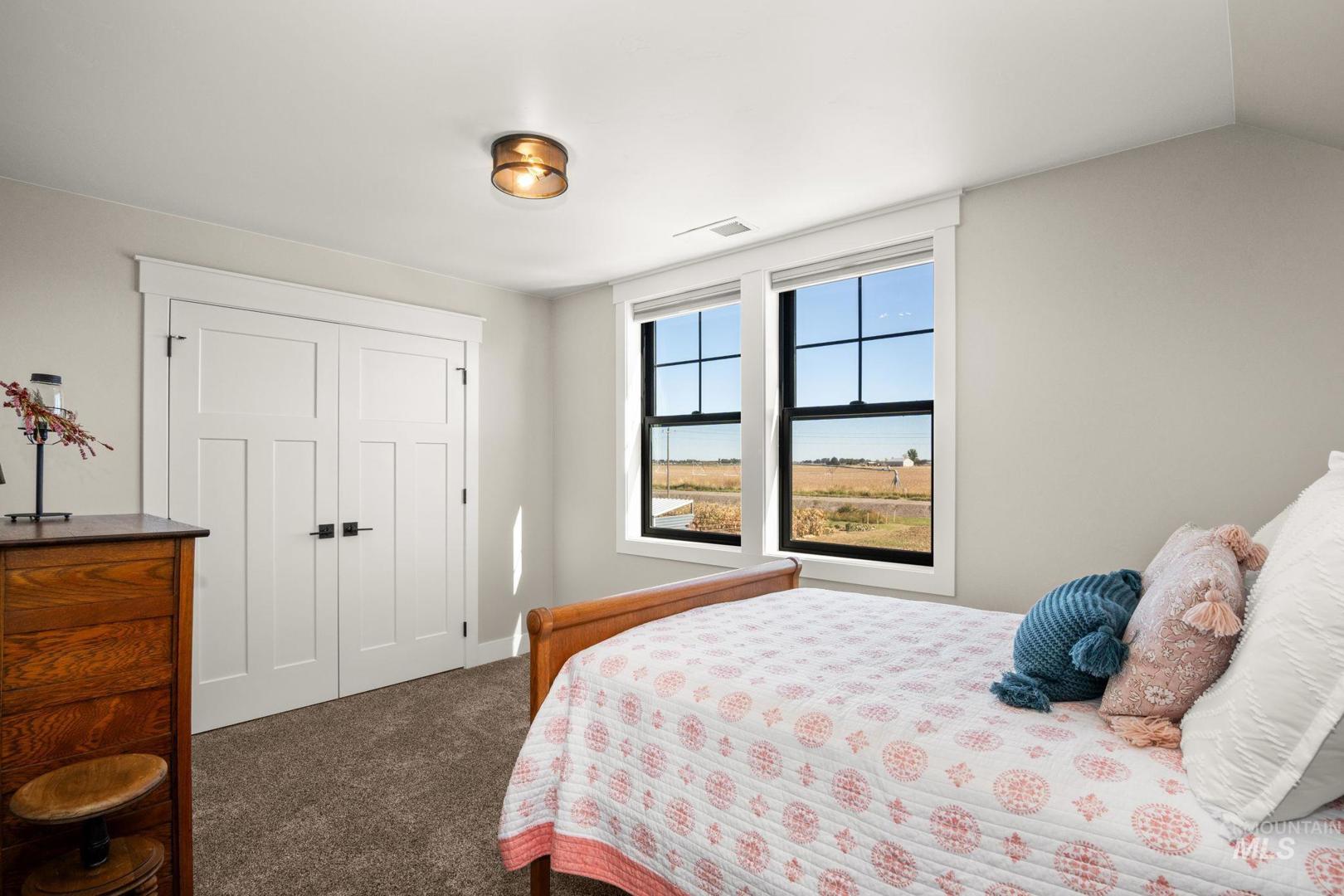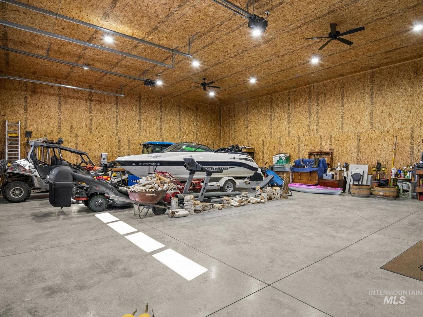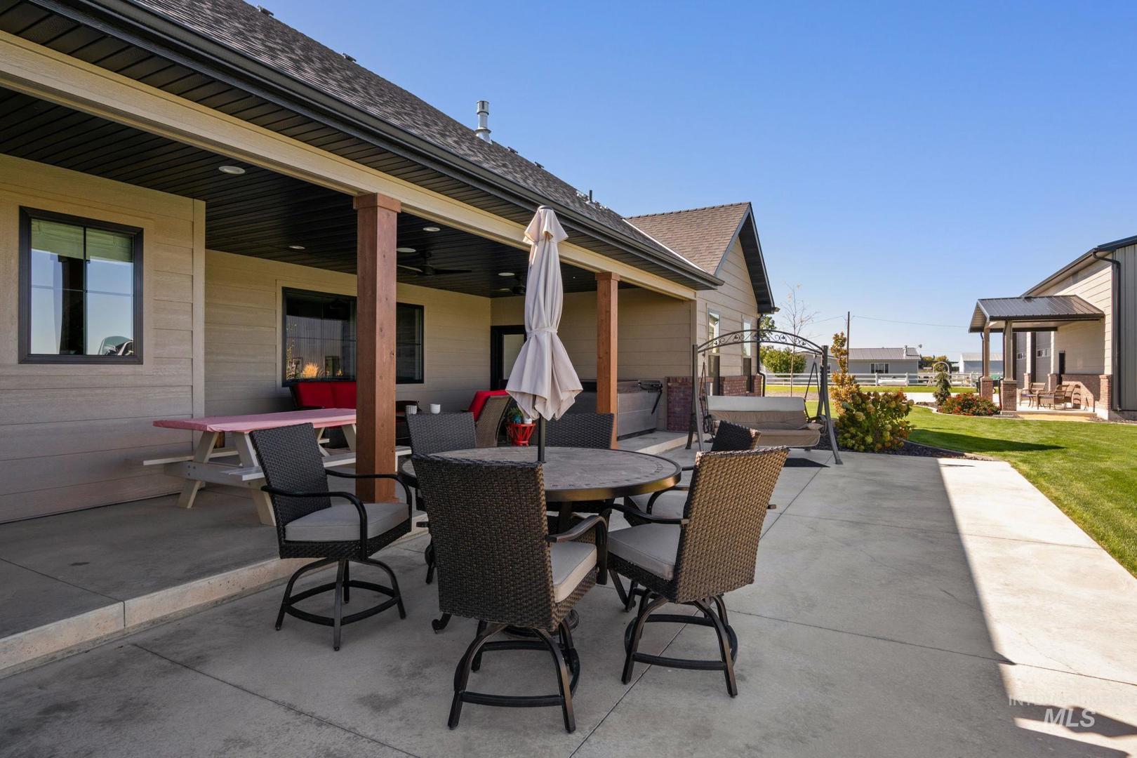 Modern Country Luxury on 3 acres! This custom home blends high-end finishes with open, inviting spaces for effortless family living. The gourmet kitchen features quartzite countertops, a 6-burner propane range with grill, dual ovens, pot filler, spacious butler’s pantry, and all kitchen appliances included. With a formal dining room and open layout, it’s perfect for gatherings and home cooking. The living room showcases 10-ft ceilings, custom built-ins, and a striking floor-to-ceiling stone fireplace that anchors the home. The primary suite with vaulted ceiling offers dual vanities, a tiled walk-in shower, soaker tub, and generous closet with built-in safe room. A versatile craft or office space adds flexibility for work or hobbies. Outdoors, unwind on the covered patio with hot tub, gather by the firepit, or tend the garden surrounded by open country views. The landscaped yard features curbing, vinyl fencing, sprinklers, Burley irrigation shares, and an RV hook-up. The insulated and heated 70`×40` shop provides space for projects, storage, and a man room with A/C, kitchenette, and half bath. Move-in ready—This Home is where modern comfort meets Idaho country living.