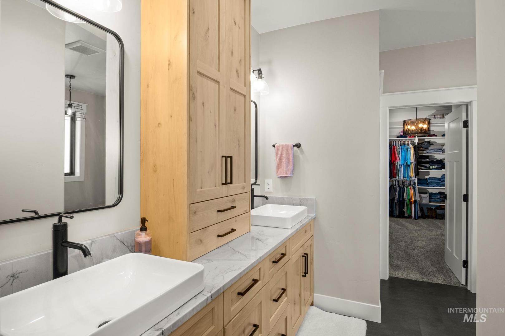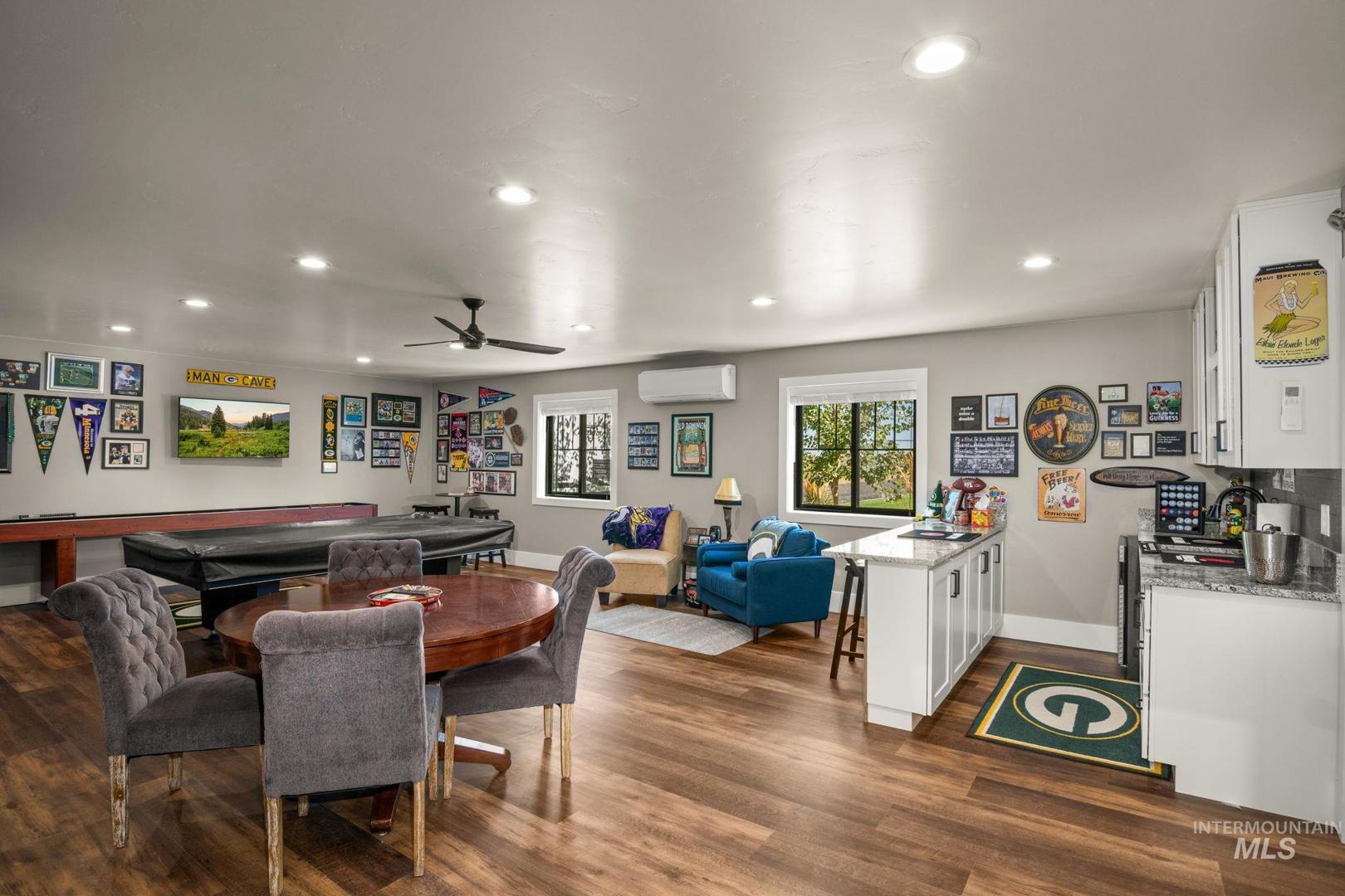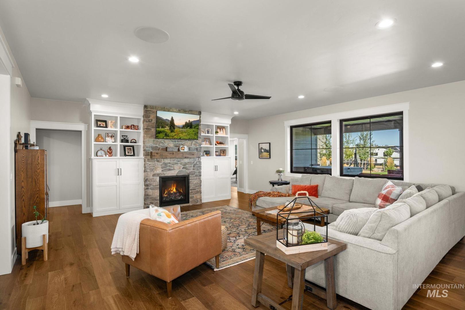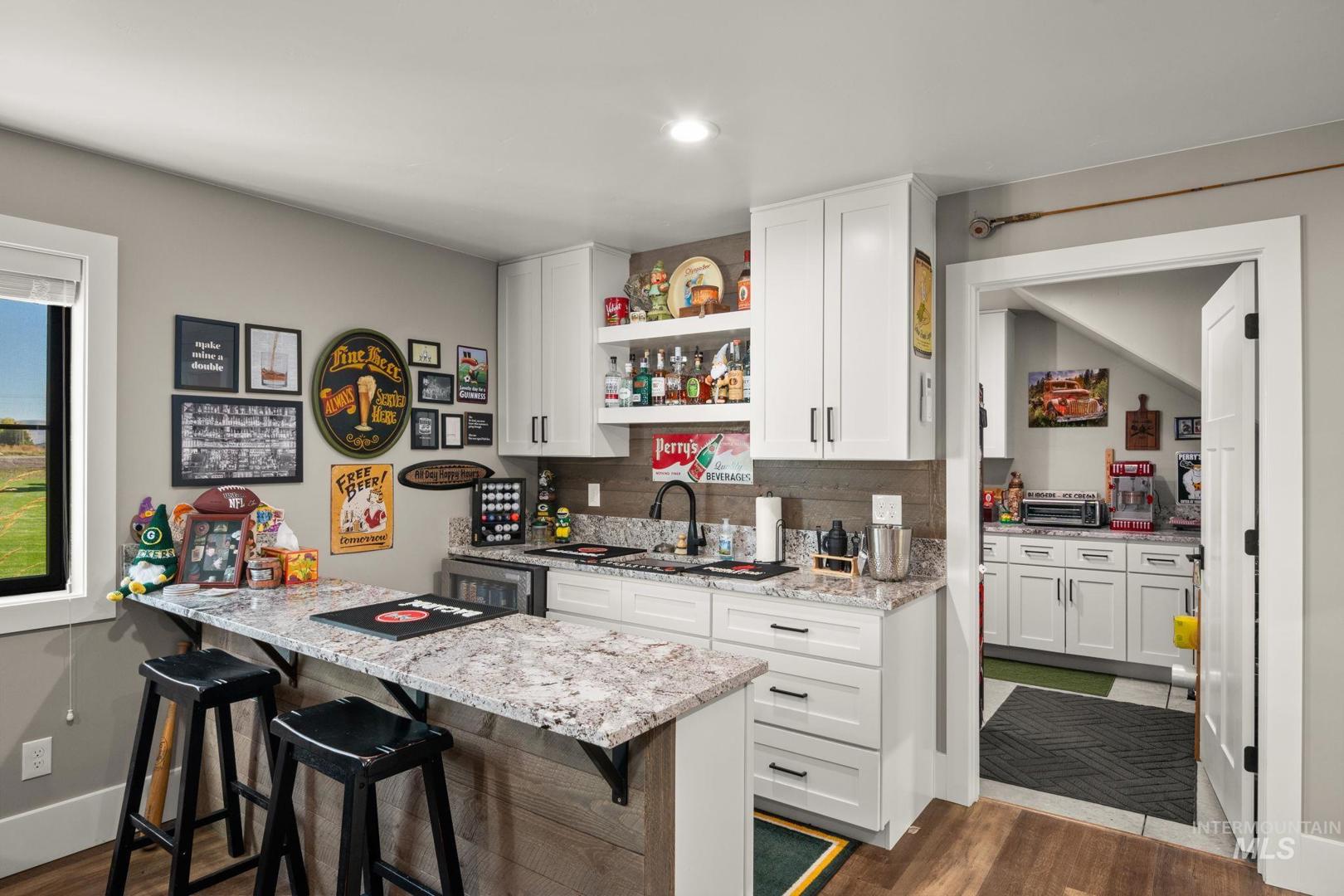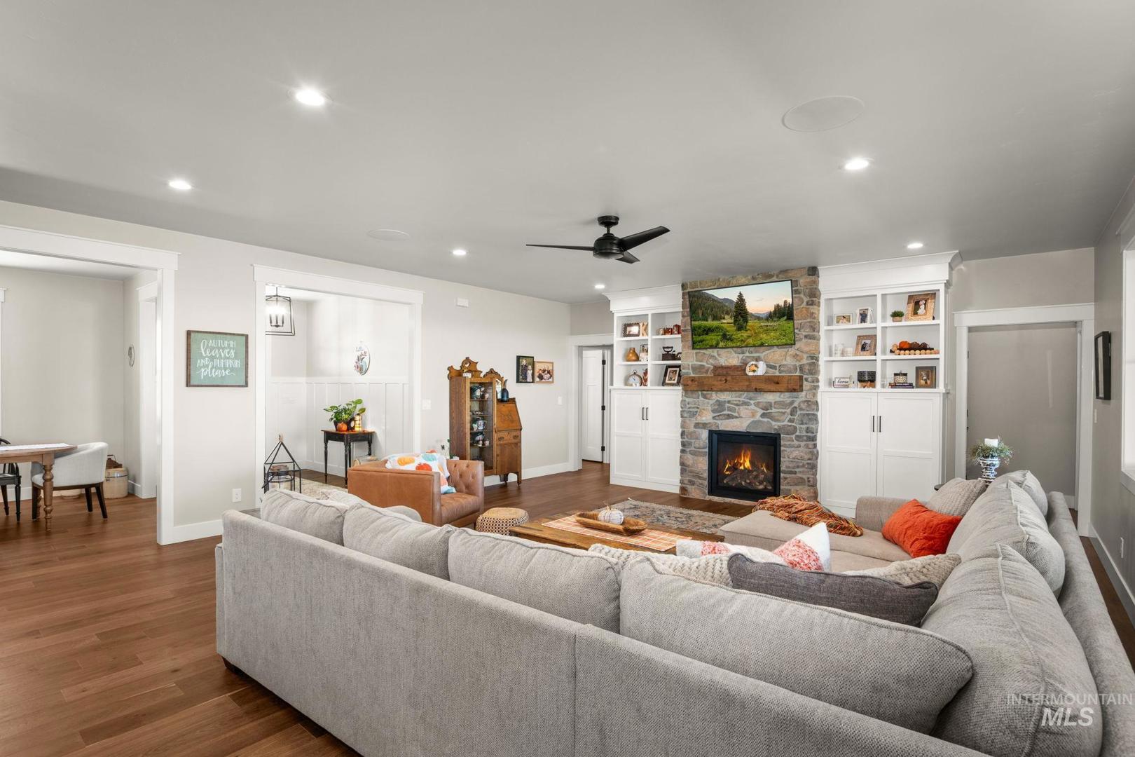 Modern Country Luxury on 3 acres! This custom home blends high-end finishes with open, inviting spaces for effortless family living. The gourmet kitchen features quartzite countertops, a 6-burner propane range with grill, dual ovens, pot filler, spacious butler’s pantry, and all kitchen appliances included. With a formal dining room and open layout, it’s perfect for gatherings and home cooking. The living room showcases 10-ft ceilings, custom built-ins, and a striking floor-to-ceiling stone fireplace that anchors the home. The primary suite with vaulted ceiling offers dual vanities, a tiled walk-in shower, soaker tub, and generous closet with built-in safe room. A versatile craft or office space adds flexibility for work or hobbies. Outdoors, unwind on the covered patio with hot tub, gather by the firepit, or tend the garden surrounded by open country views. The landscaped yard features curbing, vinyl fencing, sprinklers, Burley irrigation shares, and an RV hook-up. The insulated and heated 70`×40` shop provides space for projects, storage, and a man room with A/C, kitchenette, and half bath. Move-in ready—This Home is where modern comfort meets Idaho country living.