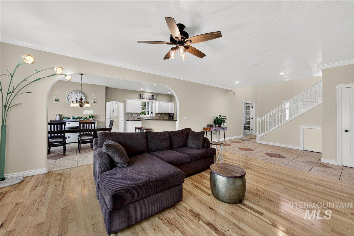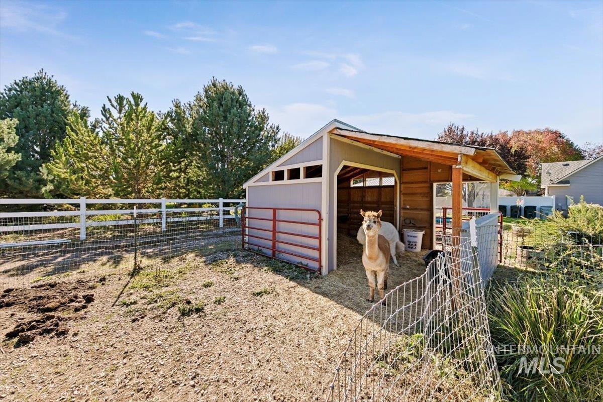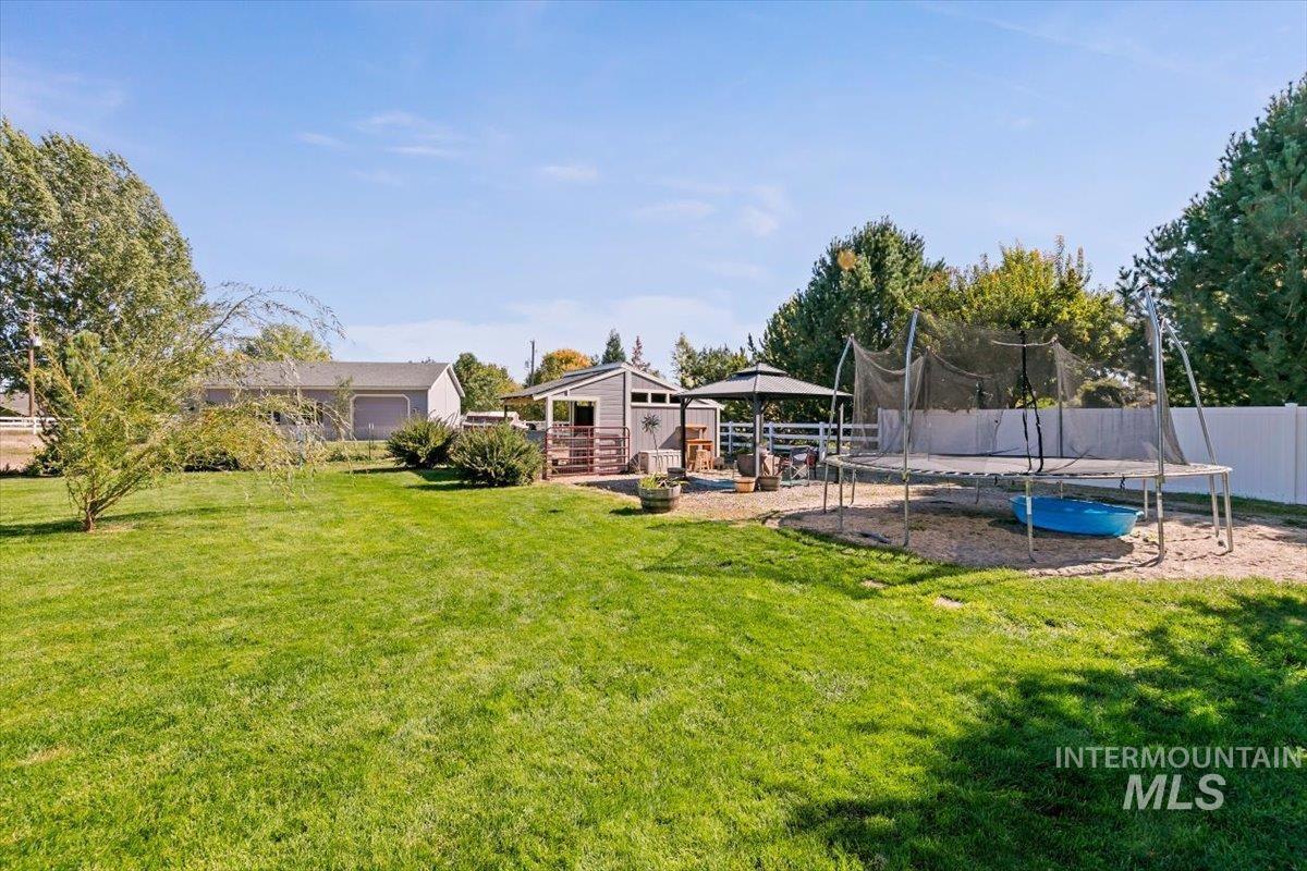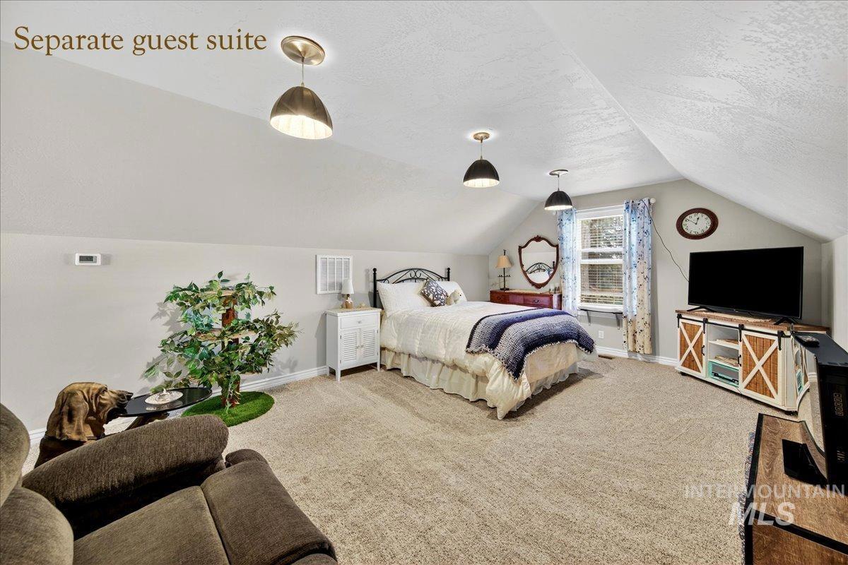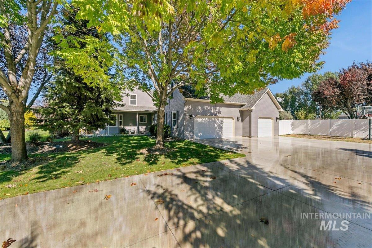 Discover the perfect blend of space, comfort, and versatility on this picturesque 1.38-acre property. This 6 bedroom, 3.5 bathroom home offers room for everyone — and then some — with an inviting floor plan designed for both everyday living and entertaining. The main level primary suite provides easy access and privacy, while the additional oversized bedrooms offer incredible flexibility for family, guests, or a home office setup. Through a separate entrance in the attached 3 car garage, you`ll discover a charming 450 sq ft guest suite (1/1) making multi-generational living or rental potential a breeze. Step outside and enjoy lush landscaping, mature trees, including fruit producers, and open spaces ideal for gatherings, gardening, or simply soaking in the Idaho sunshine. For the hobbyist, the 1,600 sq ft fully insulated and heated detached shop is a dream come true with all the bells & whistles— perfect for projects, storage, or whatever else your heart desires. Animal lovers will adore the fenced area & animal shelter, ready for your larger 4-legged friends providing a dreamy backyard hobby farm. Plumbed for Central Vac, wired for surround sound & an intercom system. Whether you’re hosting summer barbecues, tinkering in the shop, or watching the sunset over your small acreage retreat, this property delivers a true Idaho lifestyle — spacious, serene, and full of opportunity.