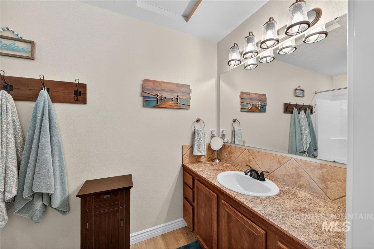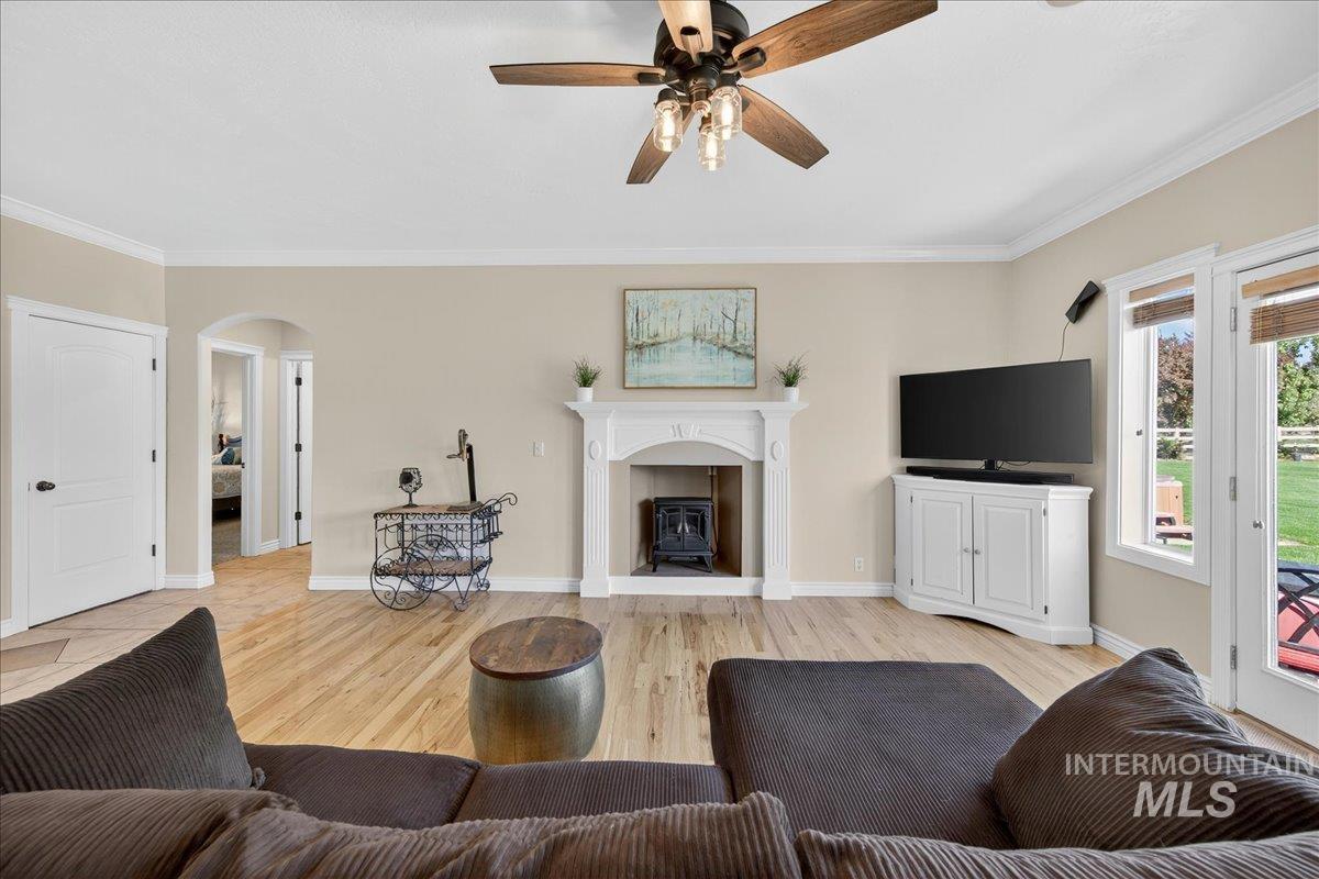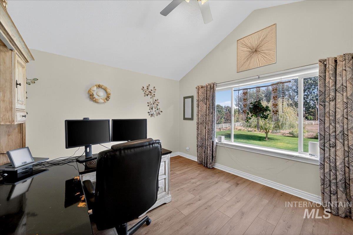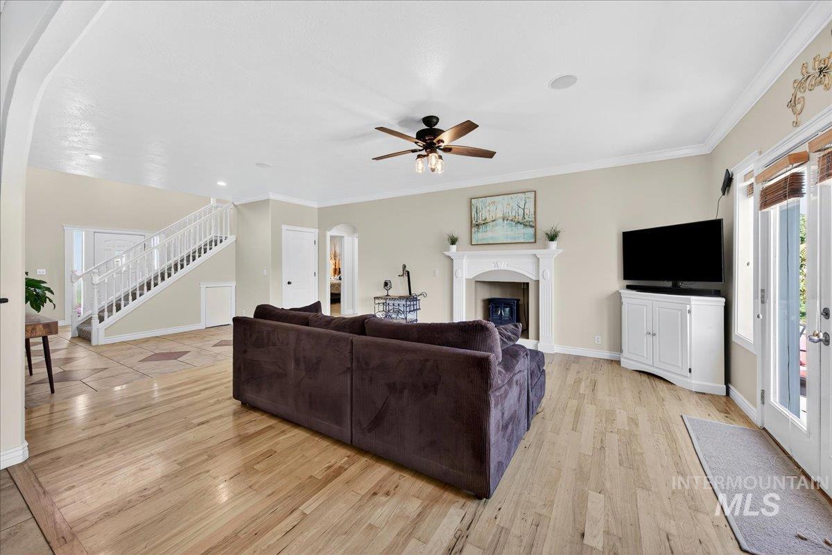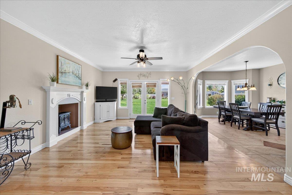 Discover the perfect blend of space, comfort, and versatility on this picturesque 1.38-acre property. This 6 bedroom, 3.5 bathroom home offers room for everyone — and then some — with an inviting floor plan designed for both everyday living and entertaining. The main level primary suite provides easy access and privacy, while the additional oversized bedrooms offer incredible flexibility for family, guests, or a home office setup. Through a separate entrance in the attached 3 car garage, you`ll discover a charming 450 sq ft guest suite (1/1) making multi-generational living or rental potential a breeze. Step outside and enjoy lush landscaping, mature trees, including fruit producers, and open spaces ideal for gatherings, gardening, or simply soaking in the Idaho sunshine. For the hobbyist, the 1,600 sq ft fully insulated and heated detached shop is a dream come true with all the bells & whistles— perfect for projects, storage, or whatever else your heart desires. Animal lovers will adore the fenced area & animal shelter, ready for your larger 4-legged friends providing a dreamy backyard hobby farm. Plumbed for Central Vac, wired for surround sound & an intercom system. Whether you’re hosting summer barbecues, tinkering in the shop, or watching the sunset over your small acreage retreat, this property delivers a true Idaho lifestyle — spacious, serene, and full of opportunity.