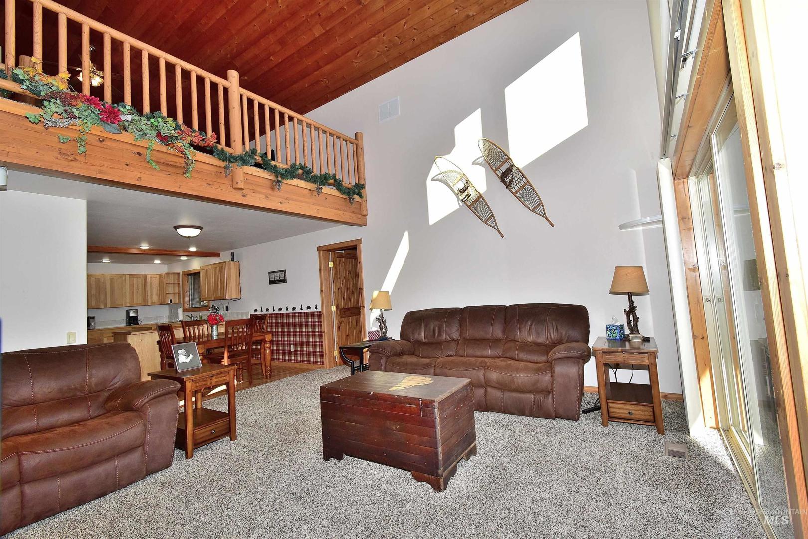 Welcome to this move-in ready home nestled in the exclusive Meadowcreek golf community. This fully furnished property boasts a great room with a stunning 2-story vaulted ceiling and expansive windows offering breathtaking mountain views. The layout is ideal for hosting friends and family, featuring 2 main level bedrooms with 2 full bathrooms, plus a spacious loft with another full bathroom and walk-in closet, perfect as an additional bedroom or bonus space. Relax with your favorite drink on the covered front deck sitting on a .69-acre lot across from the 15th fairway, while enjoying views of passing wildlife. The community offers amazing amenities, including an 18-hole golf course, swimming pool, pickleball, tennis courts, a stocked pond, and is located less than 30 minutes from Brundage Ski Resort. It`s the perfect home for year-round living or a weekend retreat!