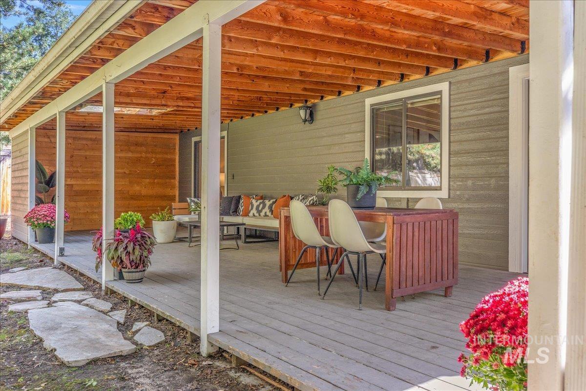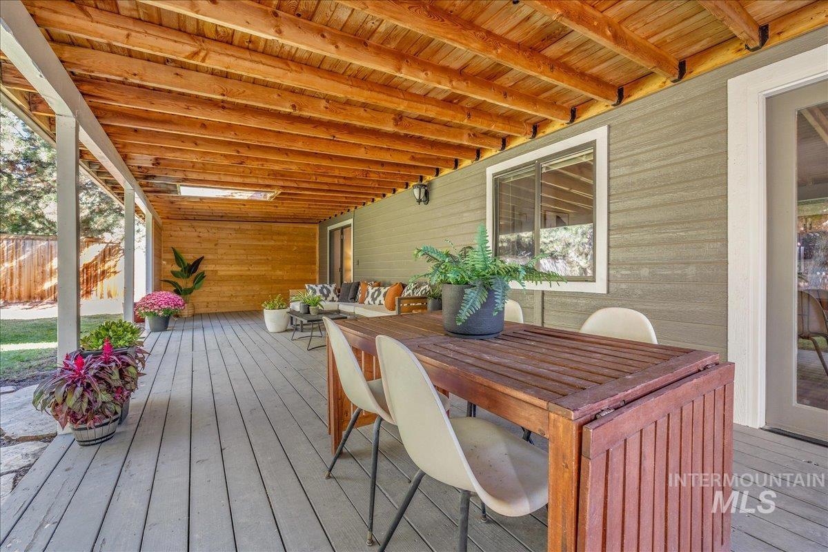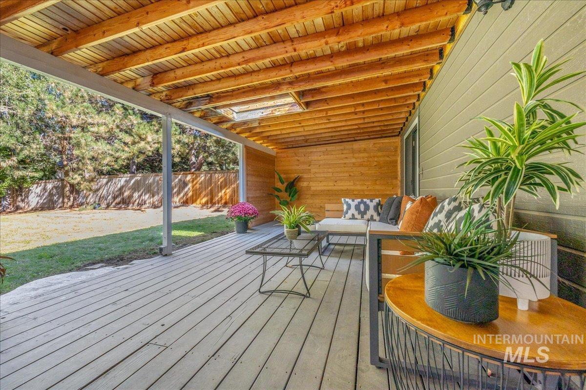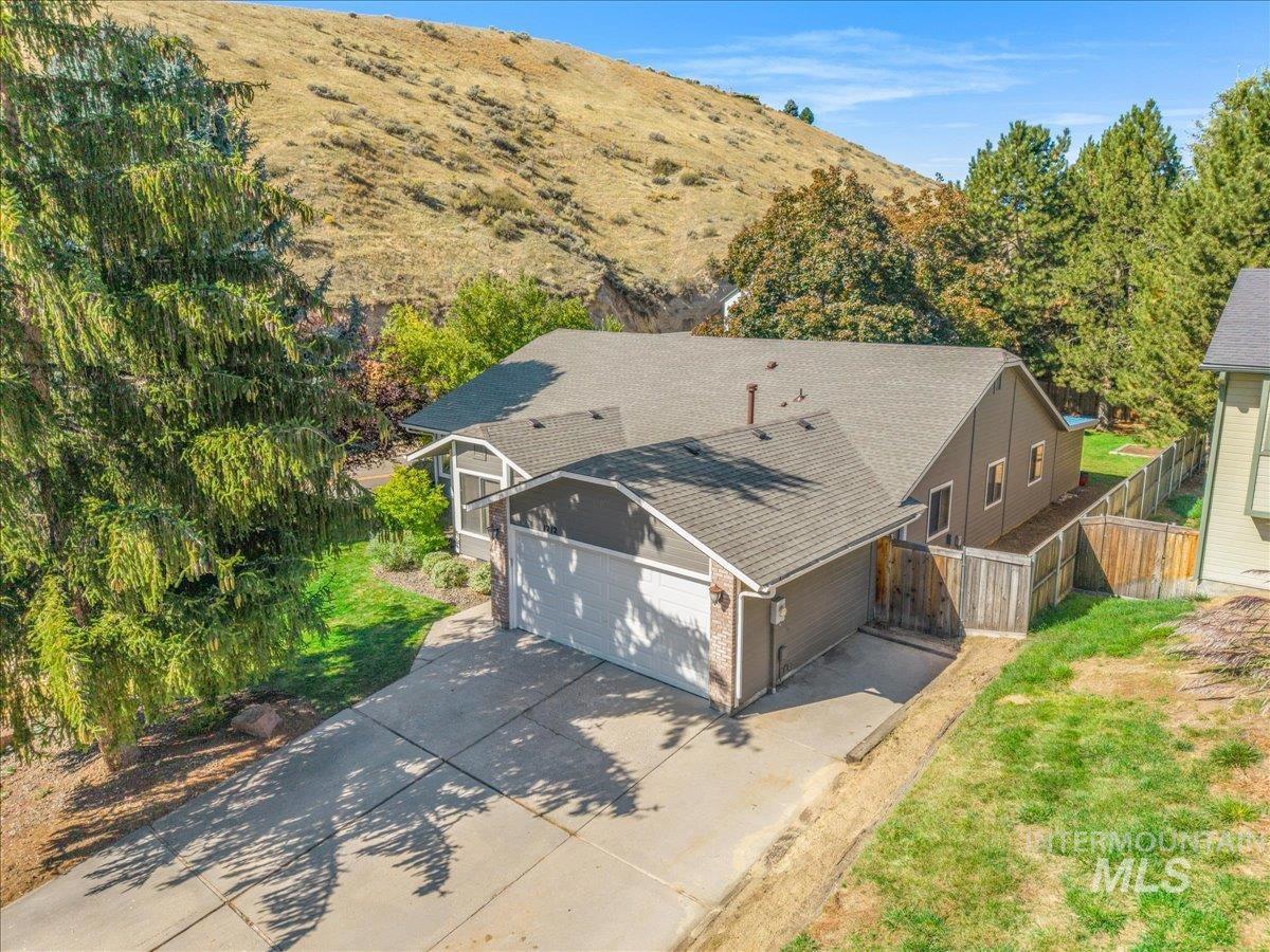 Tucked behind Boise’s iconic Simplot Hill, this serene retreat blends modern comfort with natural beauty — perfect for powder hounds, professionals, and retirees alike. Step into an open, elevated design that lives like a peaceful treehouse. Vaulted ceilings and expansive windows blur the line between indoors and out, filling the space with light and forested views. The spacious covered deck overlooks a generous backyard, inviting you to unwind in privacy — bring your hot tub as the perfect spot awaits under a skylight, lending to stargazing nights. With no HOA and a location in the foothills just minutes from hiking trails and Bogus Basin Ski Resort, this is a rare mix of freedom, nature, and convenience. Perched on an elevated lot, you’ll enjoy room to breathe and an easy, scenic commute downtown. Major upgrades offer peace of mind: a brand-new roof (2025), plus a newer furnace, AC, and water heater (all replaced in 2019). The versatile front bedroom is ideal for a home office or in-home practitioner, complete with its own private entrance. This is more than a home — it’s a lifestyle of ease nestled in one of Boise’s most sought-after settings.