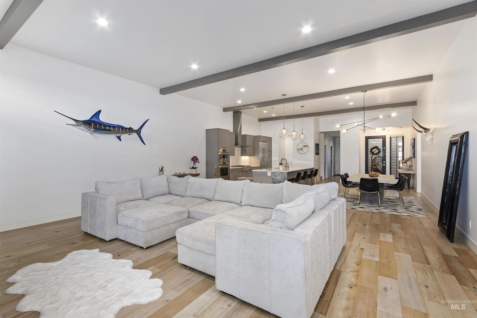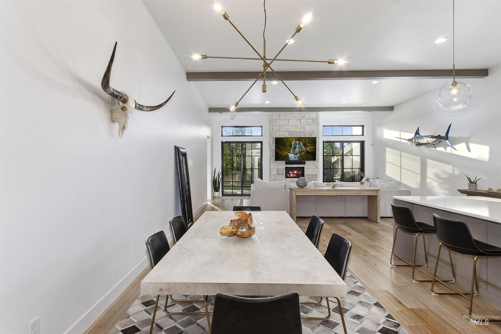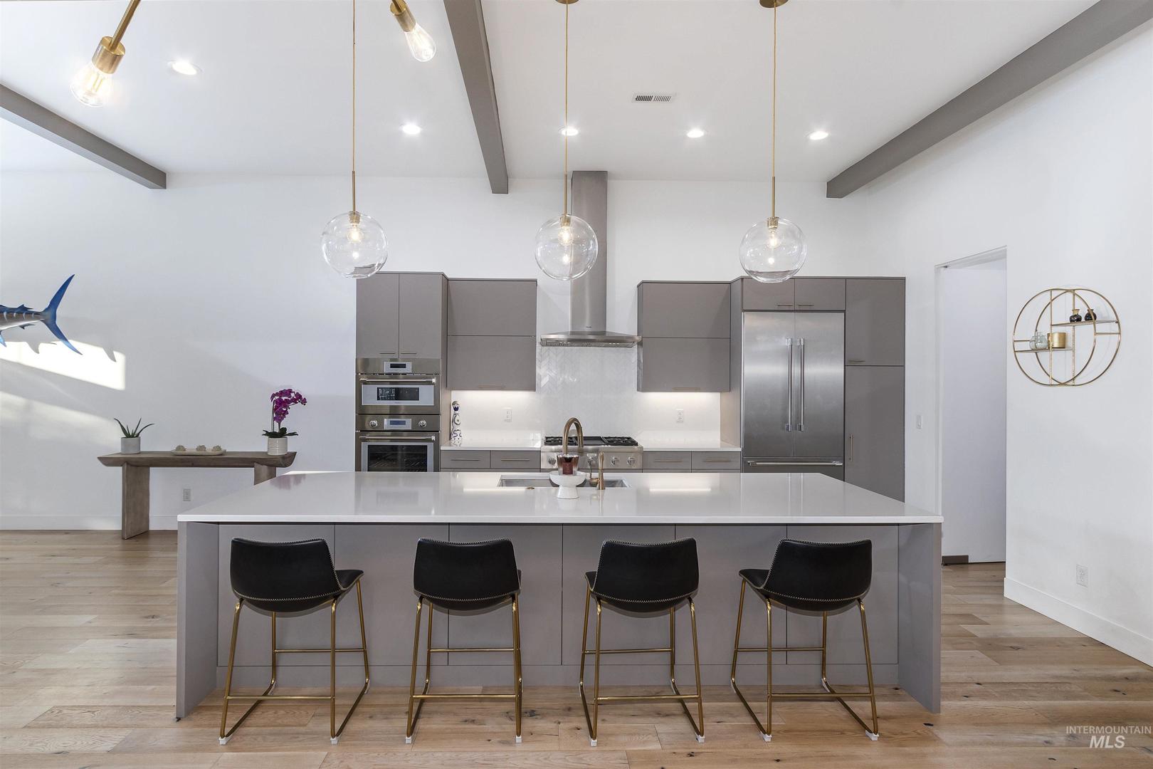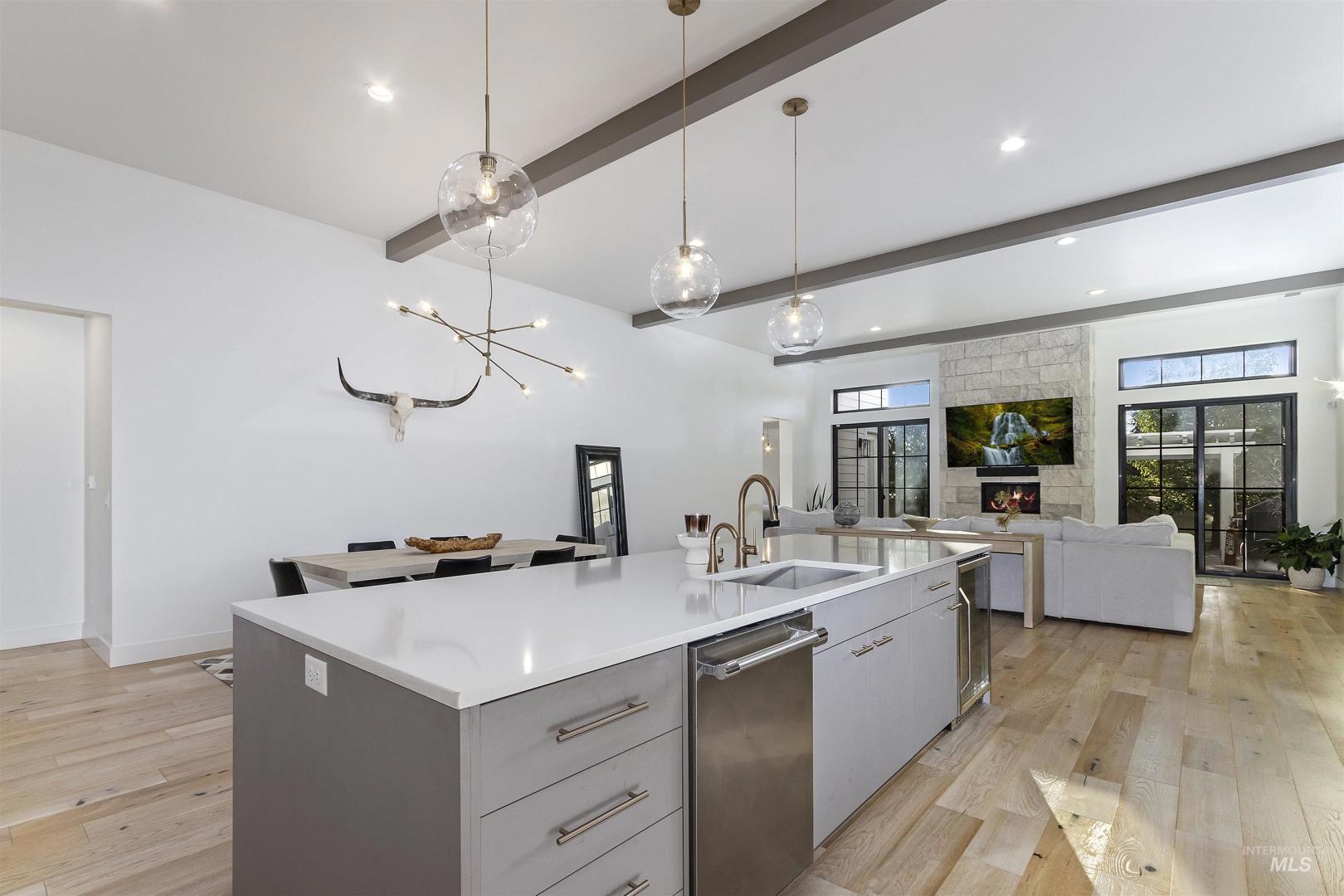 Embrace luxury living in this 2,500+ sq ft home featuring an upper bonus room & 3 primary suites. Soaring 12-ft, beamed ceilings & luxury plank wood floors set a warm, elevated tone throughout the bright, modern open concept floor plan. The designer’s kitchen showcases Thermador Professional appliances, European cabinetry, quartz countertops, oversized Butler’s pantry, & 12 ft island with integrated sink, open front cabinet & beverage fridge—perfect for everyday living or entertaining. Textured stone gas fireplace anchors the great room. 3.5 lavish baths with quartz countertops, 1 soaking tub, glass showers, double vanities, walk-in closet & tile floors. All bathrooms feature radiant floor heating with an individual smart thermostat for personalized comfort. 3 primary suites feature walk-in closets. The laundry room adds a deep-built-in farm sink with removable faucet & tile flooring for effortless utility. Comfort comes easily with energy-efficient gas heat, central air, tankless on demand hot water system & Kentico reverse-osmosis water softener. Outdoors, there are 2 Pergolas with lighting, 1 of which covers a gas integrated fire pit & a luxury 8-person interior marble appearing design spa by Bullfrog purchased in 2023. Enjoy the attached 2-car garage with direct access into a stylish mudroom for daily convenience. A must-see property! Call to schedule your private showing today!