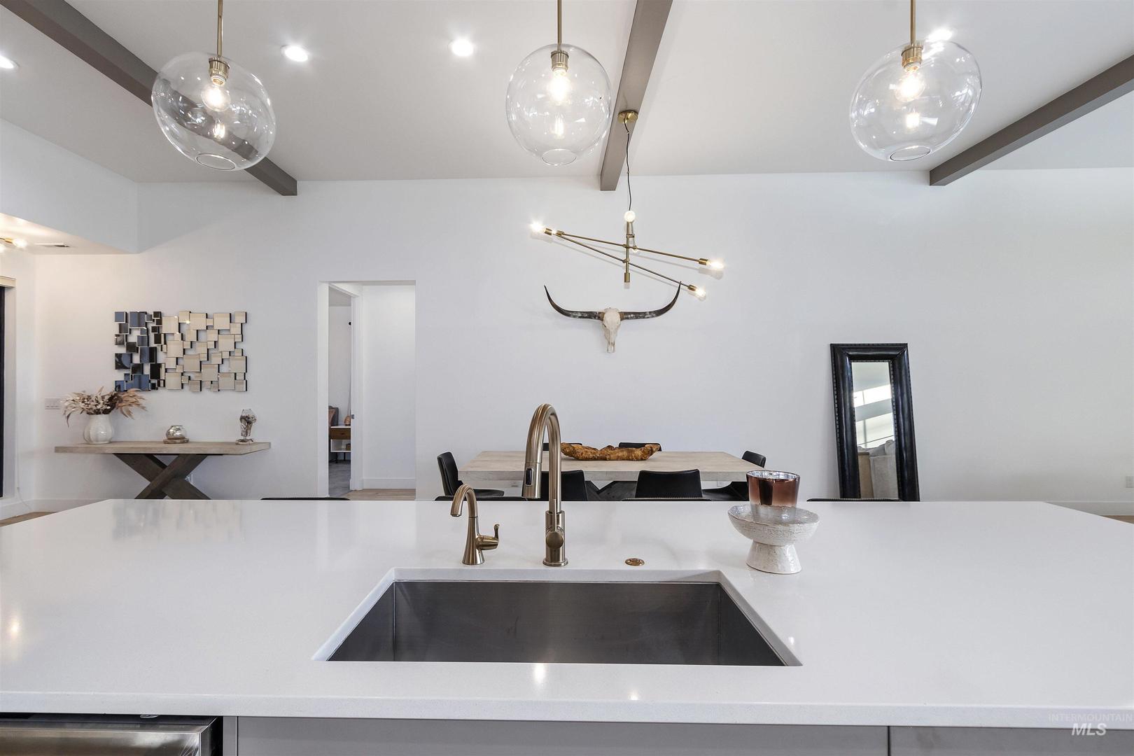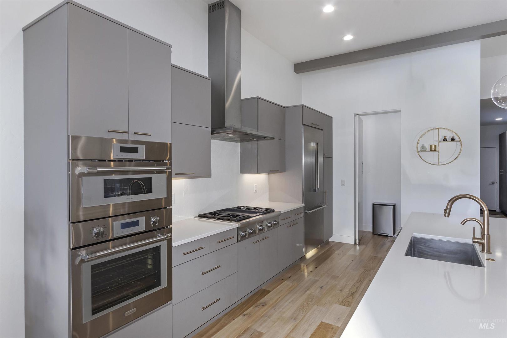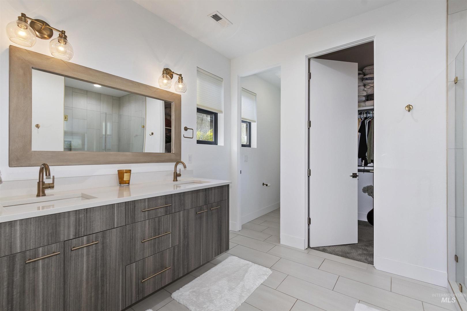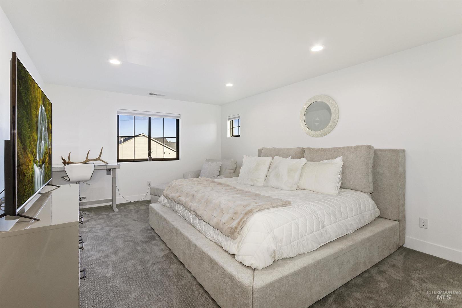 Embrace luxury living in this 2,500+ sq ft home featuring an upper bonus room & 3 primary suites. Soaring 12-ft, beamed ceilings & luxury plank wood floors set a warm, elevated tone throughout the bright, modern open concept floor plan. The designer’s kitchen showcases Thermador Professional appliances, European cabinetry, quartz countertops, oversized Butler’s pantry, & 12 ft island with integrated sink, open front cabinet & beverage fridge—perfect for everyday living or entertaining. Textured stone gas fireplace anchors the great room. 3.5 lavish baths with quartz countertops, 1 soaking tub, glass showers, double vanities, walk-in closet & tile floors. All bathrooms feature radiant floor heating with an individual smart thermostat for personalized comfort. 3 primary suites feature walk-in closets. The laundry room adds a deep-built-in farm sink with removable faucet & tile flooring for effortless utility. Comfort comes easily with energy-efficient gas heat, central air, tankless on demand hot water system & Kentico reverse-osmosis water softener. Outdoors, there are 2 Pergolas with lighting, 1 of which covers a gas integrated fire pit & a luxury 8-person interior marble appearing design spa by Bullfrog purchased in 2023. Enjoy the attached 2-car garage with direct access into a stylish mudroom for daily convenience. A must-see property! Call to schedule your private showing today!