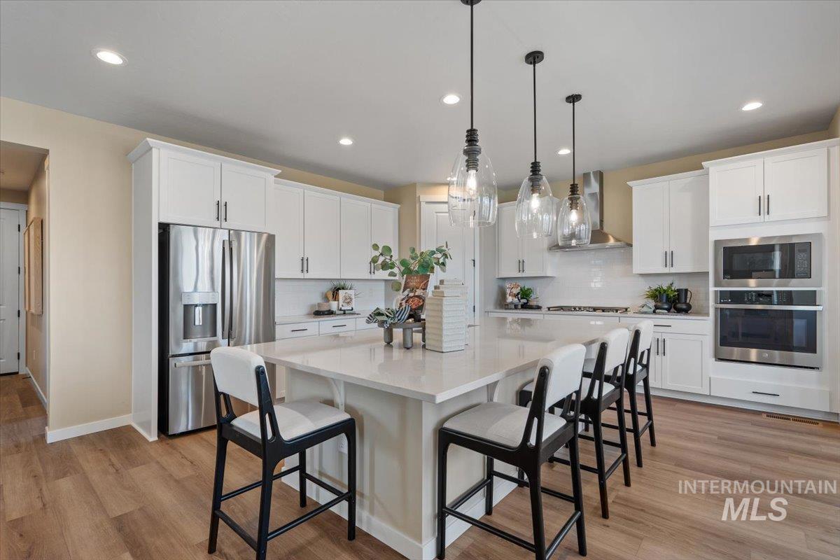 JANURARY COMPLETION "The Yorktown" by Richmond American Homes, available now. This home is open daily from 10 AM to 6 PM with no appointment needed. You can stop by the Information Center at 10712 W Tinder St, Star, ID 83669, to receive our full inventory of completed and coming soon homes. Please feel free to ask about current financing options available. This new community is located in a prime location in beautiful Star with easy access to Hwy 20/26 and Hwy 16. The Portfolio Collection homes feature elegant luxury finishes including gourmet kitchens, quartz countertops, gas fireplaces, covered patios, upgraded wood soft-close cabinets, and deluxe primary baths. Additionally, all homes come with tankless water heaters, are HERS rated for superior efficiency and low utility bills, and include front and back landscaping, sprinklers, and fencing. Restrictions apply. PHOTOS SIMILAR
