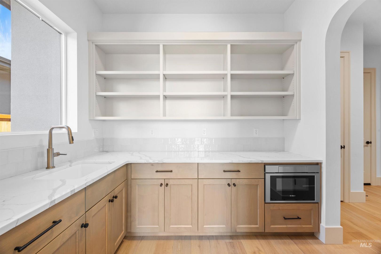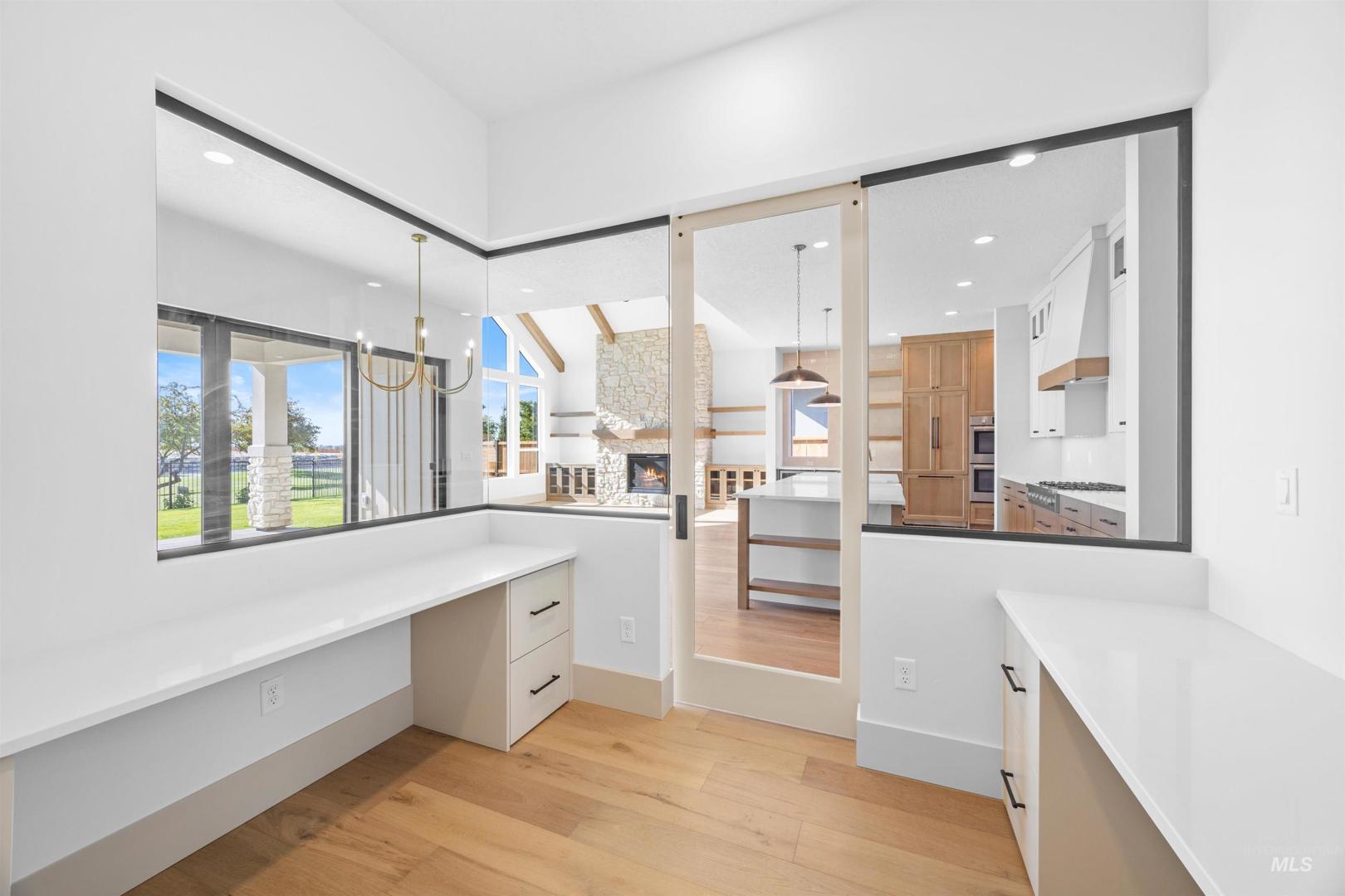 Live the resort lifestyle in Treasure Valley’s premier new luxury community. This elegant single-level home features vaulted ceilings and a chef’s kitchen with a wine fridge, ice maker, and upscale finishes. Expansive glass doors open to an oversized covered patio and loaded wet bar Casita, with lush green landscaping and tranquil views—perfect for seamless indoor-outdoor entertaining. Enjoy access to 36 holes of golf, multiple on-site restaurants, resort-style pools, indoor and outdoor pickleball courts, and golf simulators. Designed for both refined living and everyday ease, this home blends sophistication with comfort in one of the region’s most amenity-rich neighborhoods. Whether hosting guests or relaxing at home, every space is thoughtfully crafted for a lifestyle of leisure, luxury, and connection.