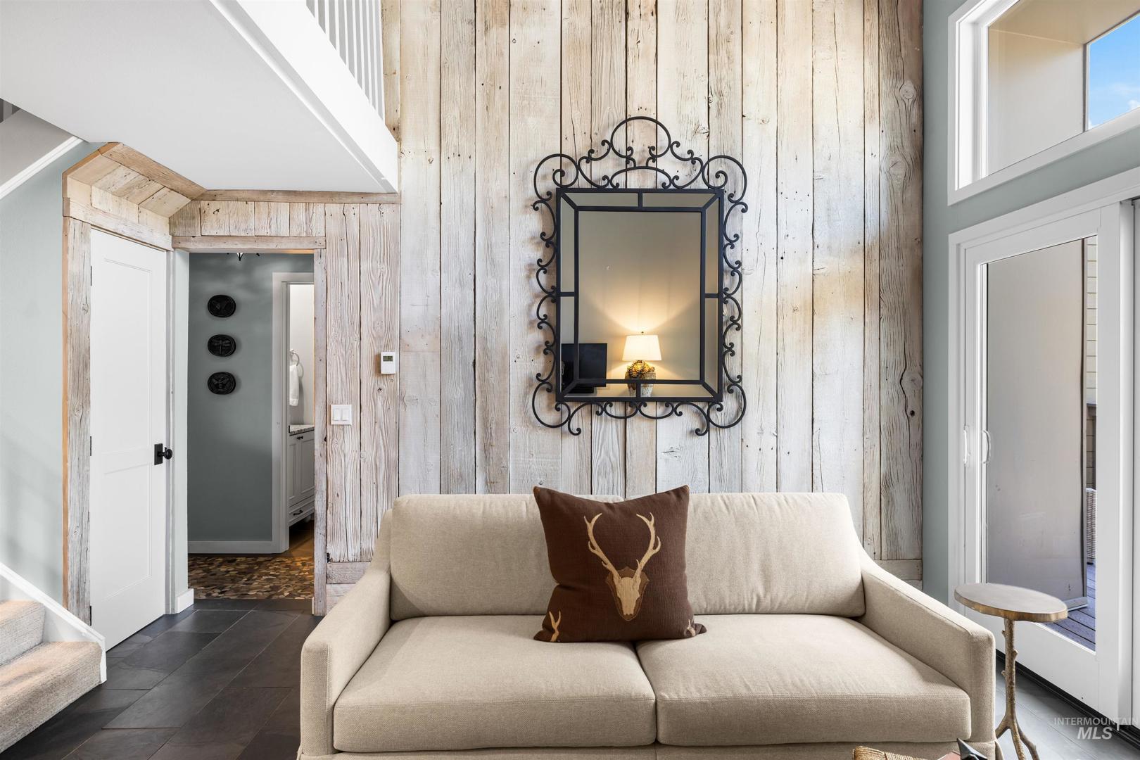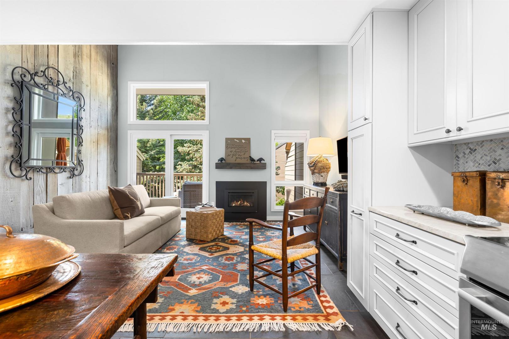 Tucked away in an private corner of Elkhorn Village, this meticulously remodeled 2 bed, 2 bath + loft condo offers a blend of contemporary elegance and timeless design. Open concept living space features modern slate tile flooring throughout creates a seamless low between the living, dining and kitchen areas. A gas fireplace, encased in custom steel with a rustic beam mantle is a focal point. Free shuttle to Sun Valley Resort ski lifts! Access to Elkhorn Resort amenities including season swimming pools, hot tub and sauna, tennis courts, golfing and pickleball courts. Whether you`re looking at Sun Valley to hike, bike, golf, ski or shop - you`re perfectly placed to enjoy the best of this charming mountain town. Bonne Vie includes a garage for one car, and the Wood River bike path and free Mountain Rides shuttle is right across the parking lot to take you to downtown Ketchum, the Sun Valley Ski Resort base areas, and world-class shopping and dining at Sun Valley Lodge.