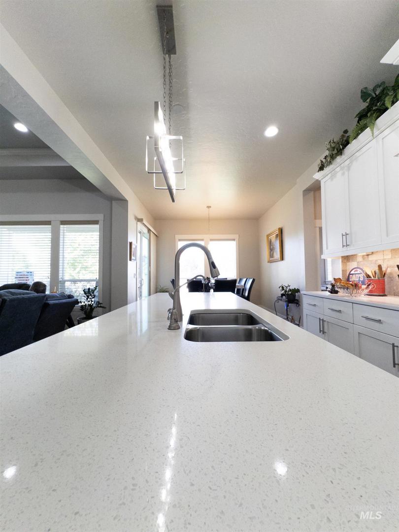 Welcome to 4577 N Comiso Pl, a stunning single-story home in Meridian’s highly sought-after Bridgetower West community. Built in 2018, this 4-bedroom, 2.5-bath residence offers 2,199 sq ft of thoughtfully designed living space. Step inside to an inviting open-concept layout featuring vaulted ceilings, elegant crown molding, and a cozy gas fireplace surrounded by built-ins. The chef’s kitchen is a showstopper with a large quartz island, Bosch appliances, and an impressive butler’s pantry for extra prep and storage. The luxurious primary suite offers patio access, a spa-like bath with a soaking tub and tiled shower, and a spacious walk-in closet. A split-bedroom layout provides privacy for guests, while the large covered patio and fully fenced backyard create the perfect space for outdoor entertaining. Tucked away at the end of a quiet cul-de-sac, this home also features a 3-car garage, central AC, and access to top-rated West Ada schools. With modern finishes, thoughtful design, and an unbeatable location close to shopping, dining, and parks—this move-in ready gem is one you won’t want to miss!