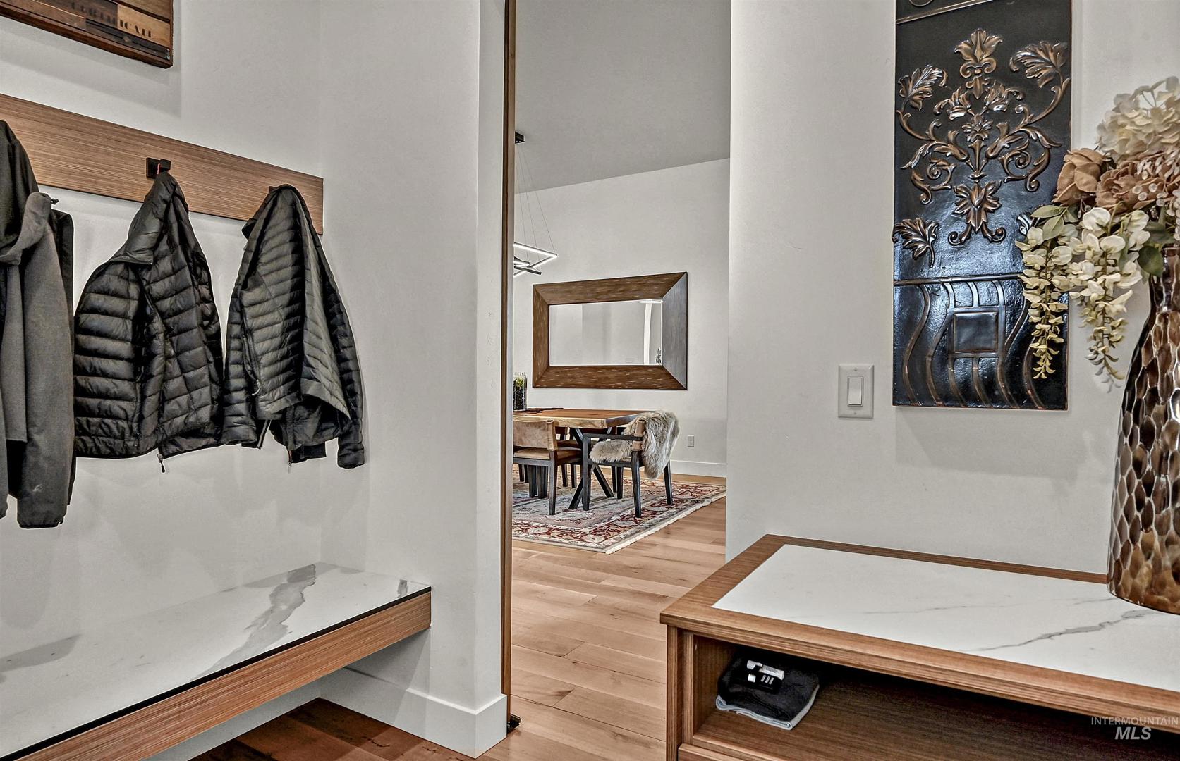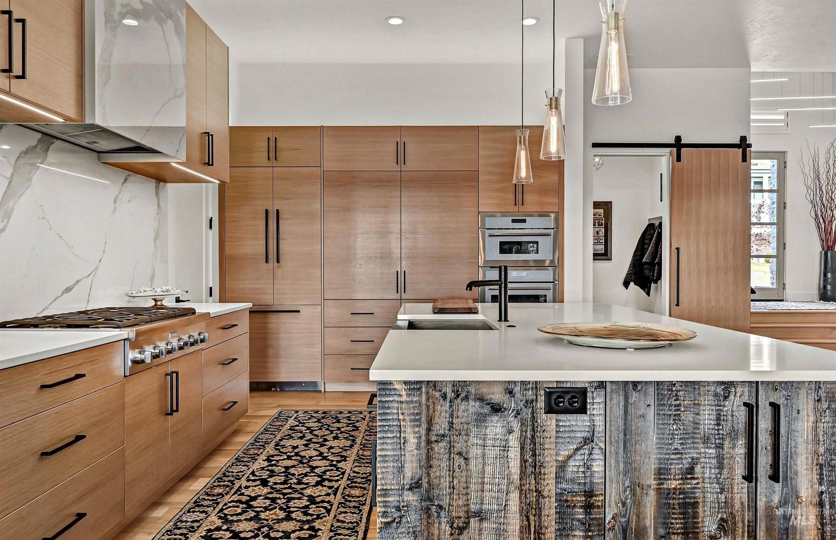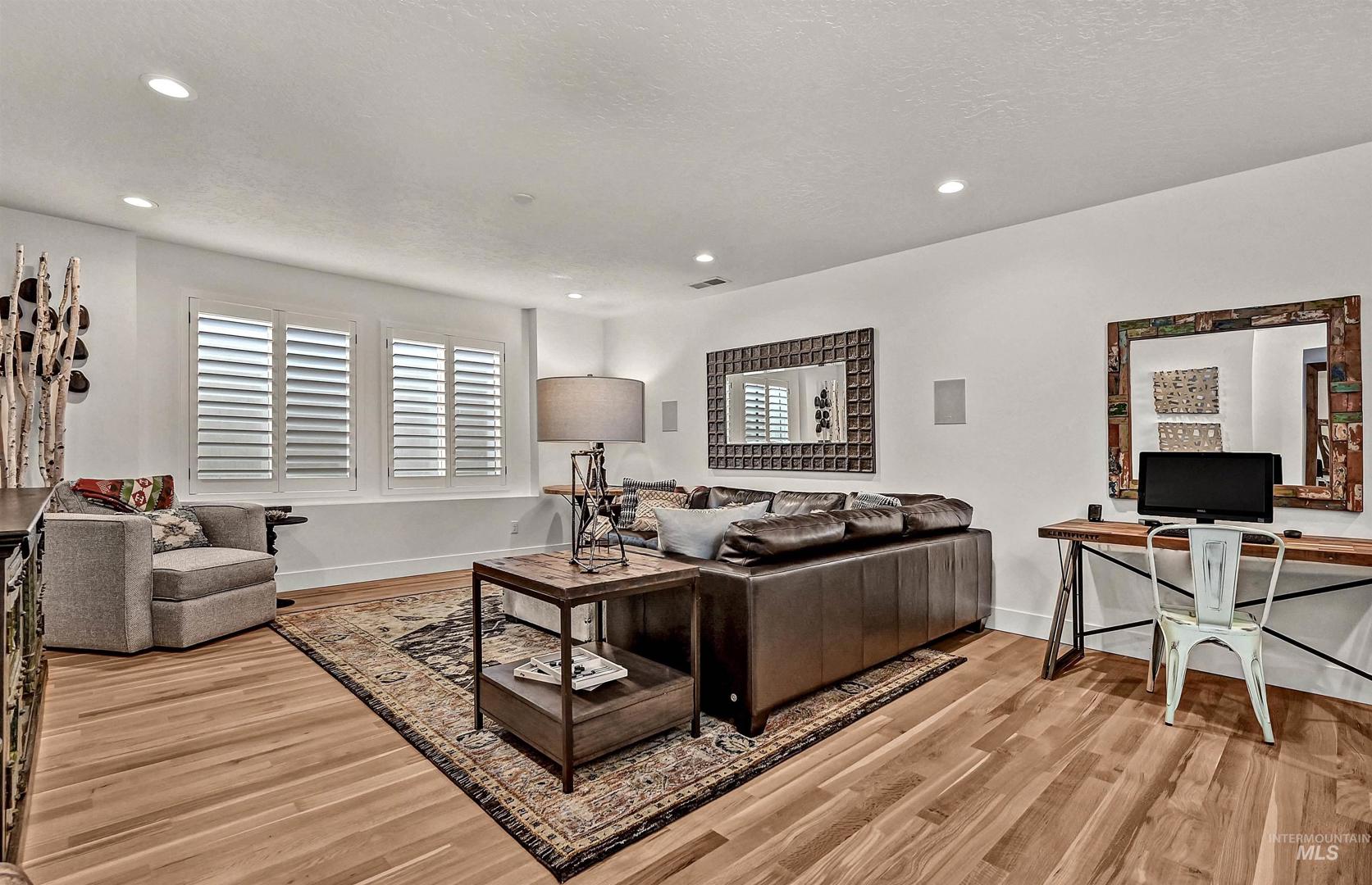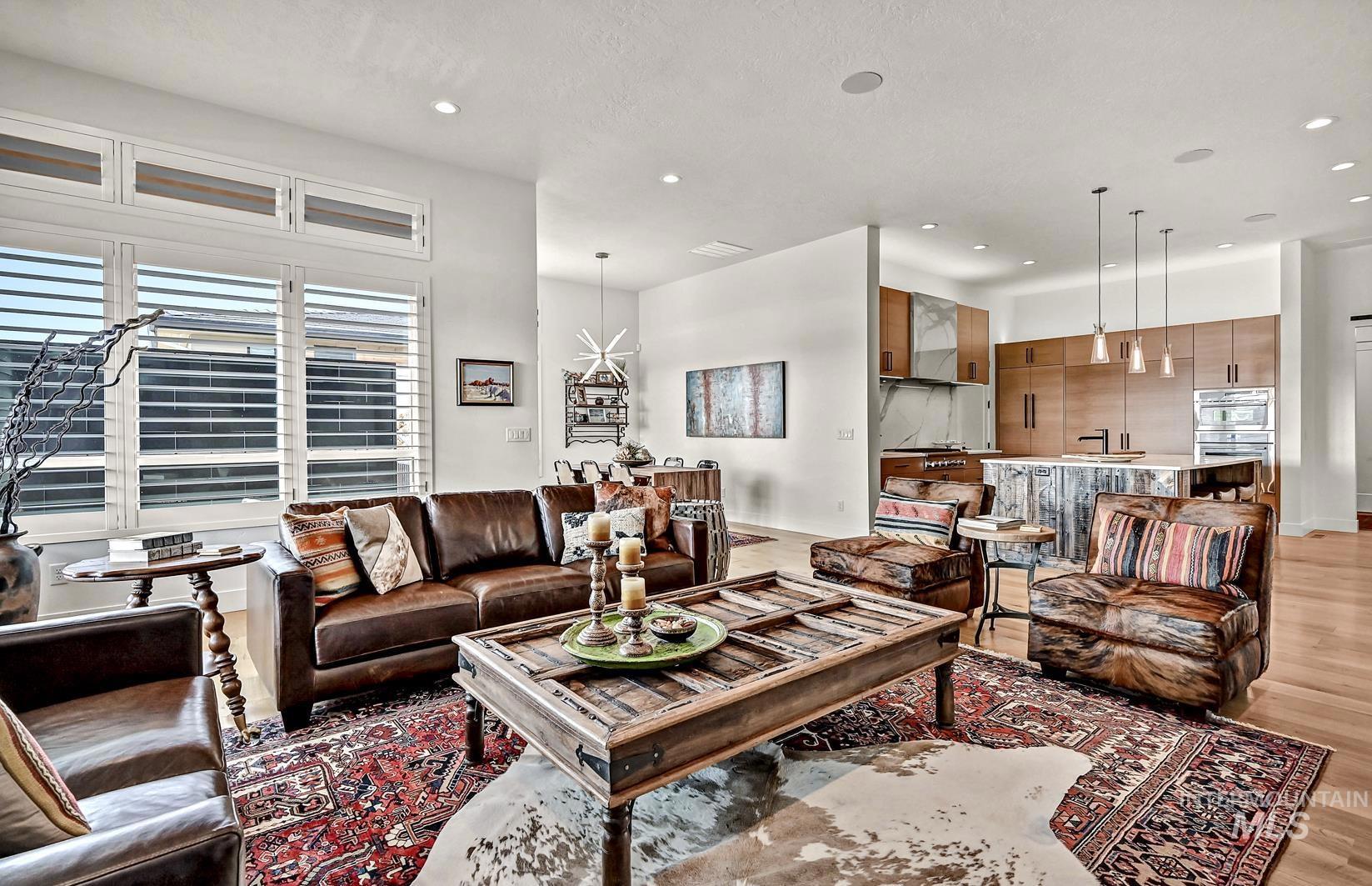Step into elevated living in this exceptionally designed home tucked within Privada Estates - an intimate enclave of custom luxury homes in East Boise. Crafted for the discerning, the home showcases a curated selection of high-end finishes & design: solid-surface porcelain slab quartz countertops, 7" wide-plank white oak flooring, & bespoke rift-cut frameless white oak cabinetry complimented by a premium Thermador appliance package. Soaring 12` ceilings on the main + 9` on the lower level which includes a spacious media/bonus room with wet bar, bed & full bath - perfect for multi-gen needs! The main-level primary suite is a private sanctuary, complete with heated floors, expansive porcelain shower, & a custom walk-in closet. Fully finished 3-car garage with epoxy flooring & built-in cabinetry, spacious covered patio with a tongue & grove Cedar ceiling + located just minutes from Boise River Greenbelt, Bown Crossing & Downtown Boise! Full list of this homes incredible features on the docs tab.