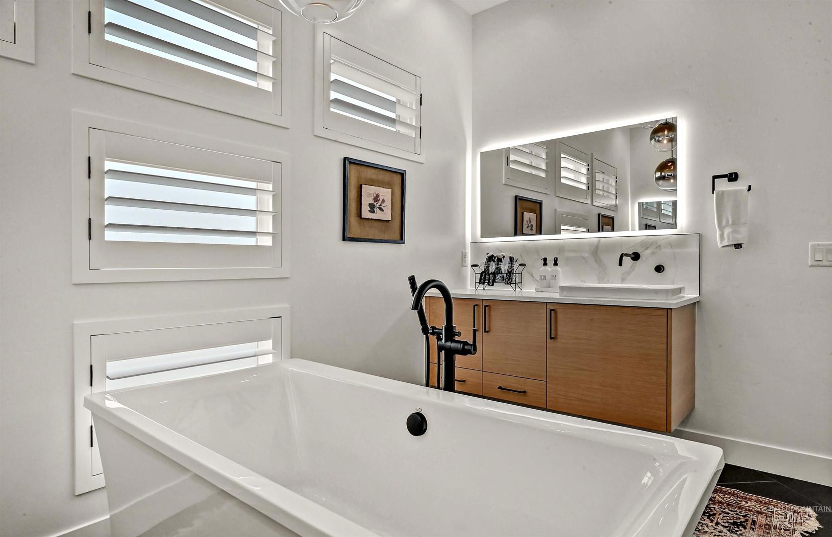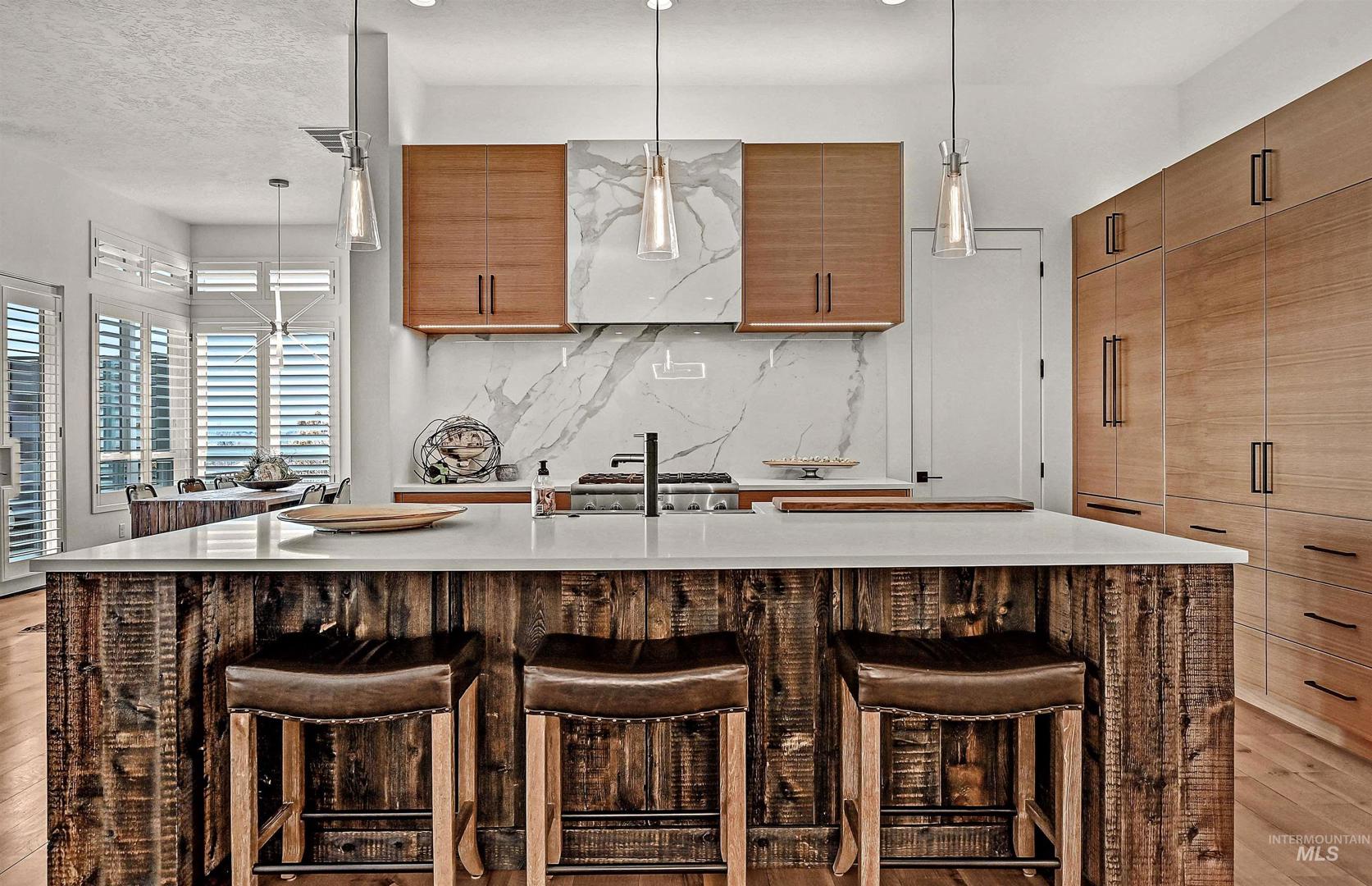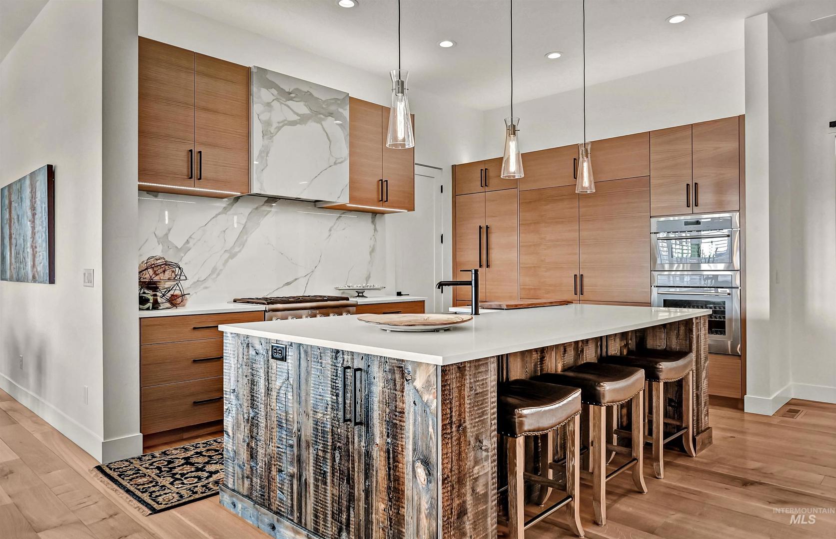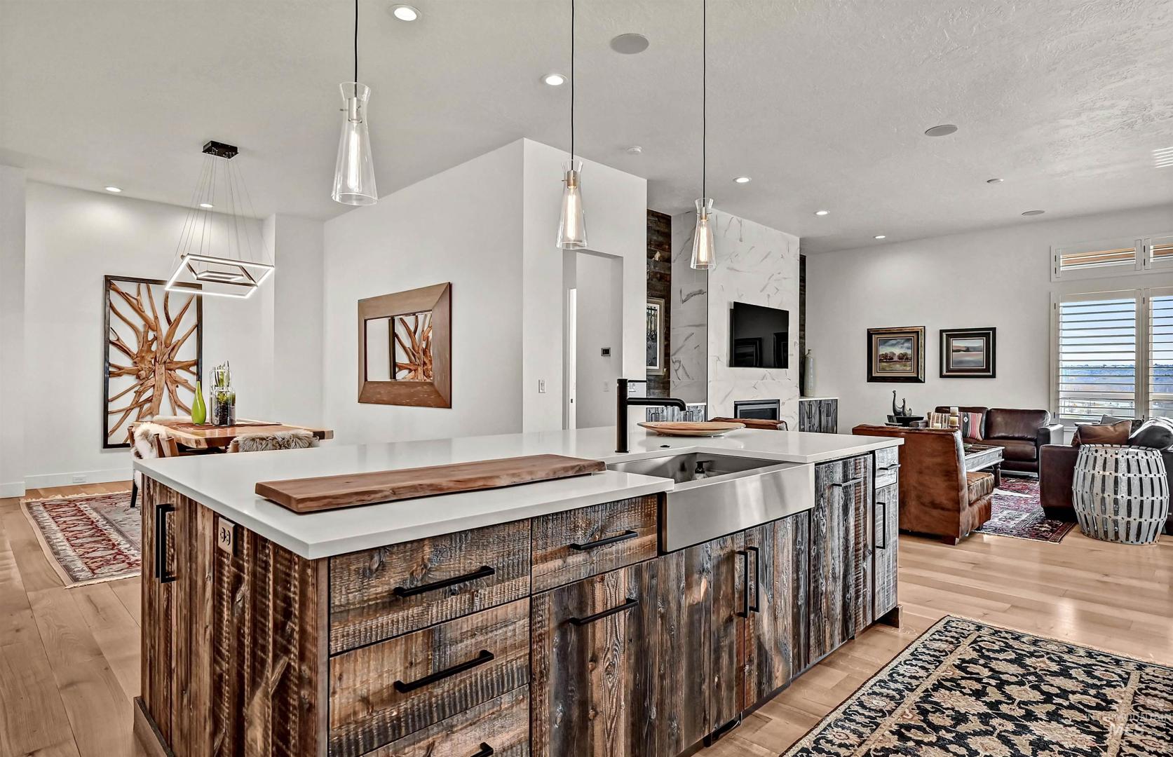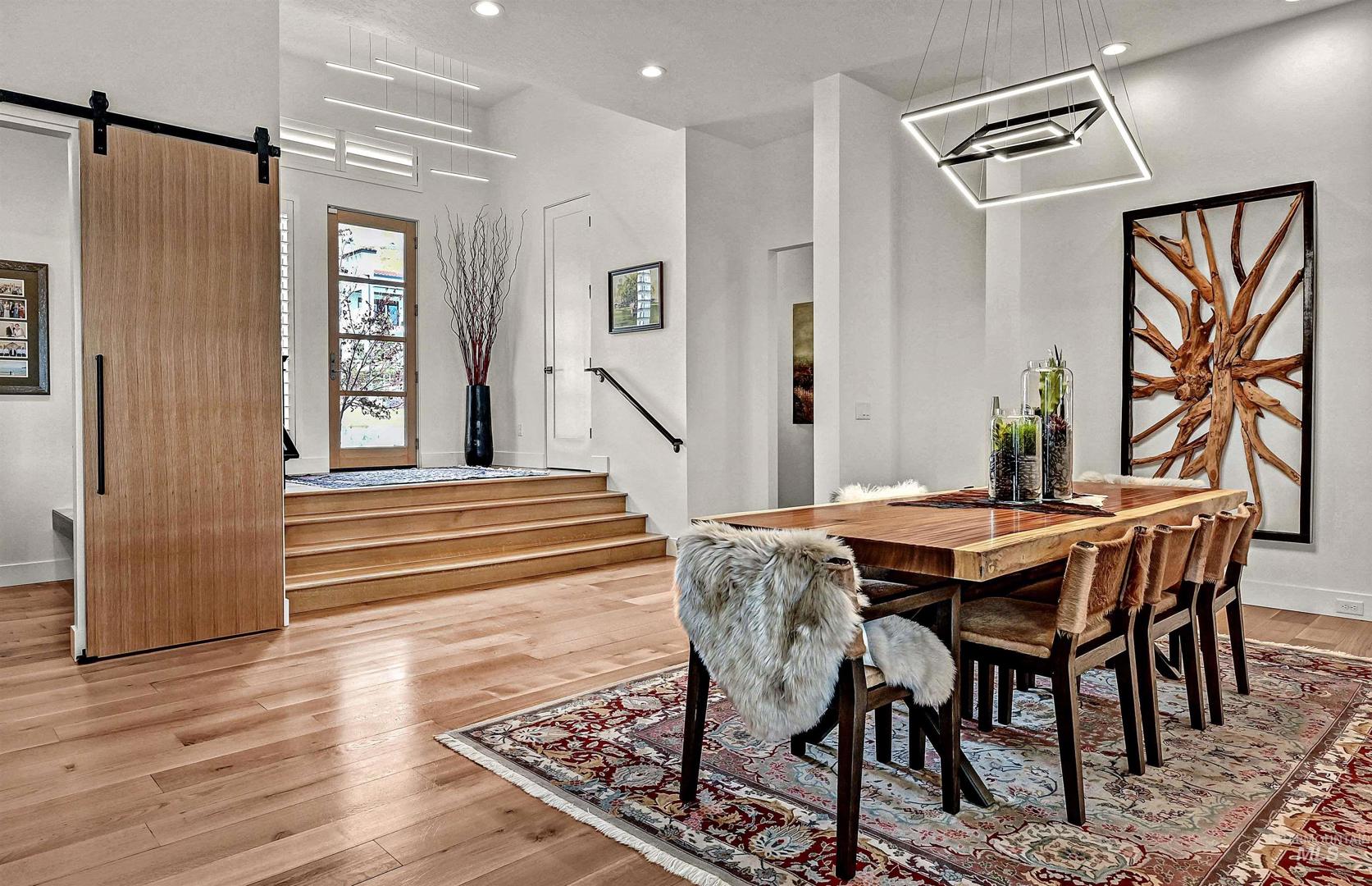Step into elevated living in this exceptionally designed home tucked within Privada Estates - an intimate enclave of custom luxury homes in East Boise. Crafted for the discerning, the home showcases a curated selection of high-end finishes & design: solid-surface porcelain slab quartz countertops, 7" wide-plank white oak flooring, & bespoke rift-cut frameless white oak cabinetry complimented by a premium Thermador appliance package. Soaring 12` ceilings on the main + 9` on the lower level which includes a spacious media/bonus room with wet bar, bed & full bath - perfect for multi-gen needs! The main-level primary suite is a private sanctuary, complete with heated floors, expansive porcelain shower, & a custom walk-in closet. Fully finished 3-car garage with epoxy flooring & built-in cabinetry, spacious covered patio with a tongue & grove Cedar ceiling + located just minutes from Boise River Greenbelt, Bown Crossing & Downtown Boise! Full list of this homes incredible features on the docs tab.