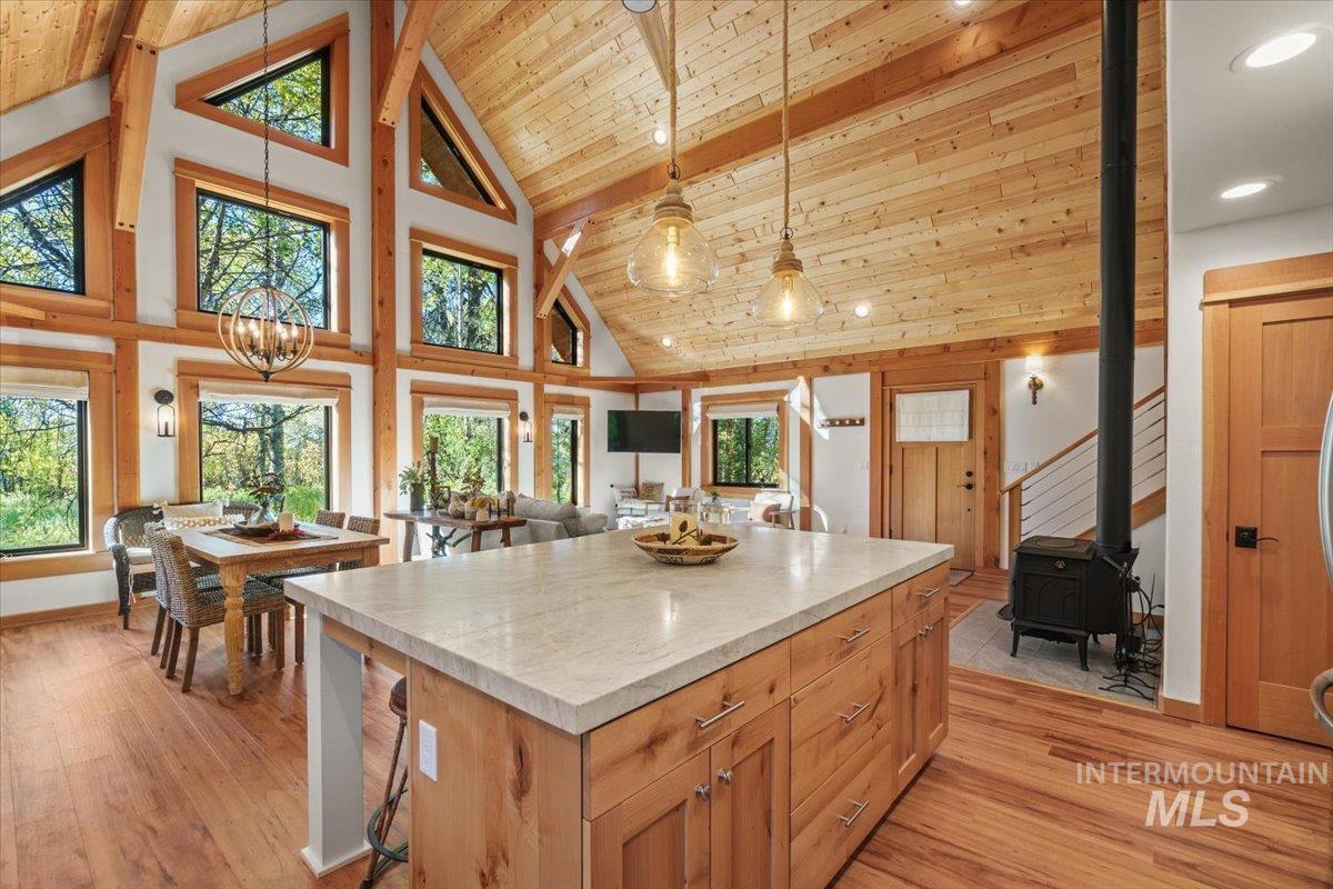 Tucked away at the quiet end of Comfort Road, this beautiful McCall retreat offers privacy, peace, and year-round adventure. Set on 1.75 level, wooded acres that border Lake Fork Creek, the property blends natural beauty with refined mountain living. Built in 2020, the 3-bedroom, 2-bath home features warm wood tones, quartz countertops, luxury vinyl plank floors, and an inviting wood stove that anchors the open living space. Large windows and a covered deck invite the outdoors in, framing tranquil forest views and the soothing sound of the creek. The mostly level acreage provides room for gardens, or a casita, while the detached shop/two-car garage offer space for all your mountain toys. In winter, step right outside your door to enjoy snowshoeing or cross-country skiing through the trees, or drive just minutes to Brundage Mountain and downtown McCall for world-class alpine skiing, dining, and lake recreation. Comfort Road truly lives up to its name—quiet, scenic, and designed for those who cherish nature, space, and the McCall lifestyle.