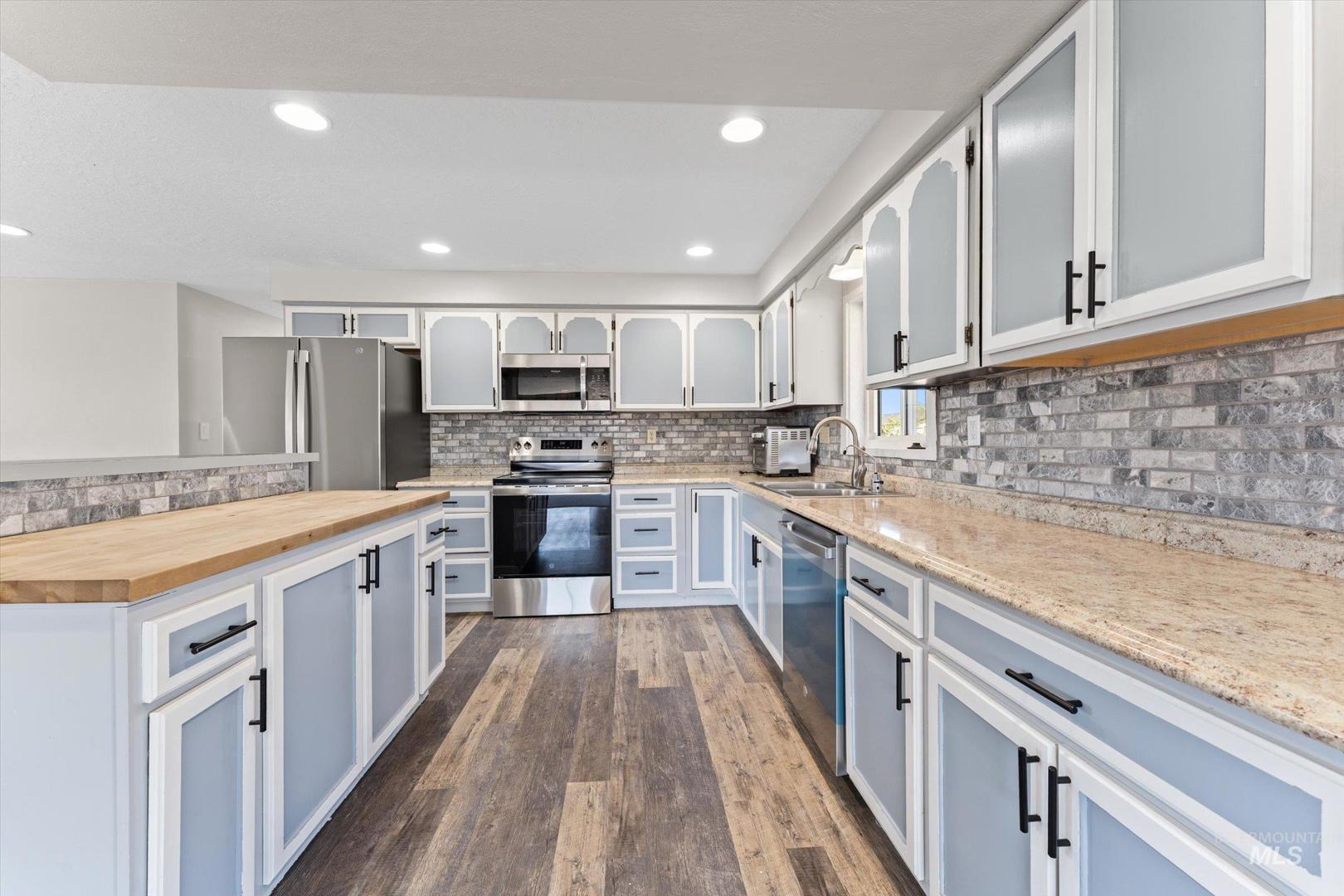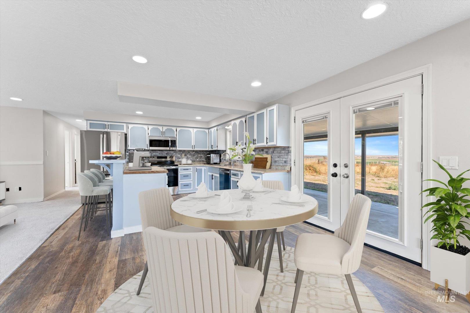 Property has beautiful views, space, privacy, and usable land. Country living at its absolute best! Priced to sell: well below recently appraised value. This home will move quickly! The spacious, single level home has been renovated recently. It now has band new interior paint and carpet throughout the home and a recent upgrade to windows. Wood burning fireplace with floor-to-ceiling stone mantel in the living room is beautiful and functional. This is the last house on a private lane, with no back neighbors, you`ll enjoy uninterrupted views from the covered back patio, and mature trees lining the entire front offer shade & privacy. Set up for both horses & cattle, this modern homestead is built to work hard and play harder. There are several acres of fenced, irrigated pasture and covered corrals. Multiple outbuildings include a 35x35 barn w/ 220v, a 28x40 machine shop w/ 110v, 14x15 shed, several large lean-tos and livestock shelters. Current appraisal of $832,000 and inspections completed and will be shared with interested parties.