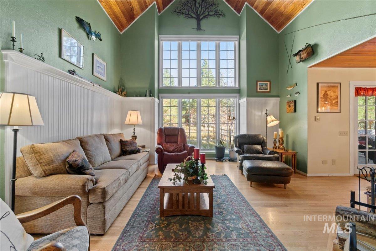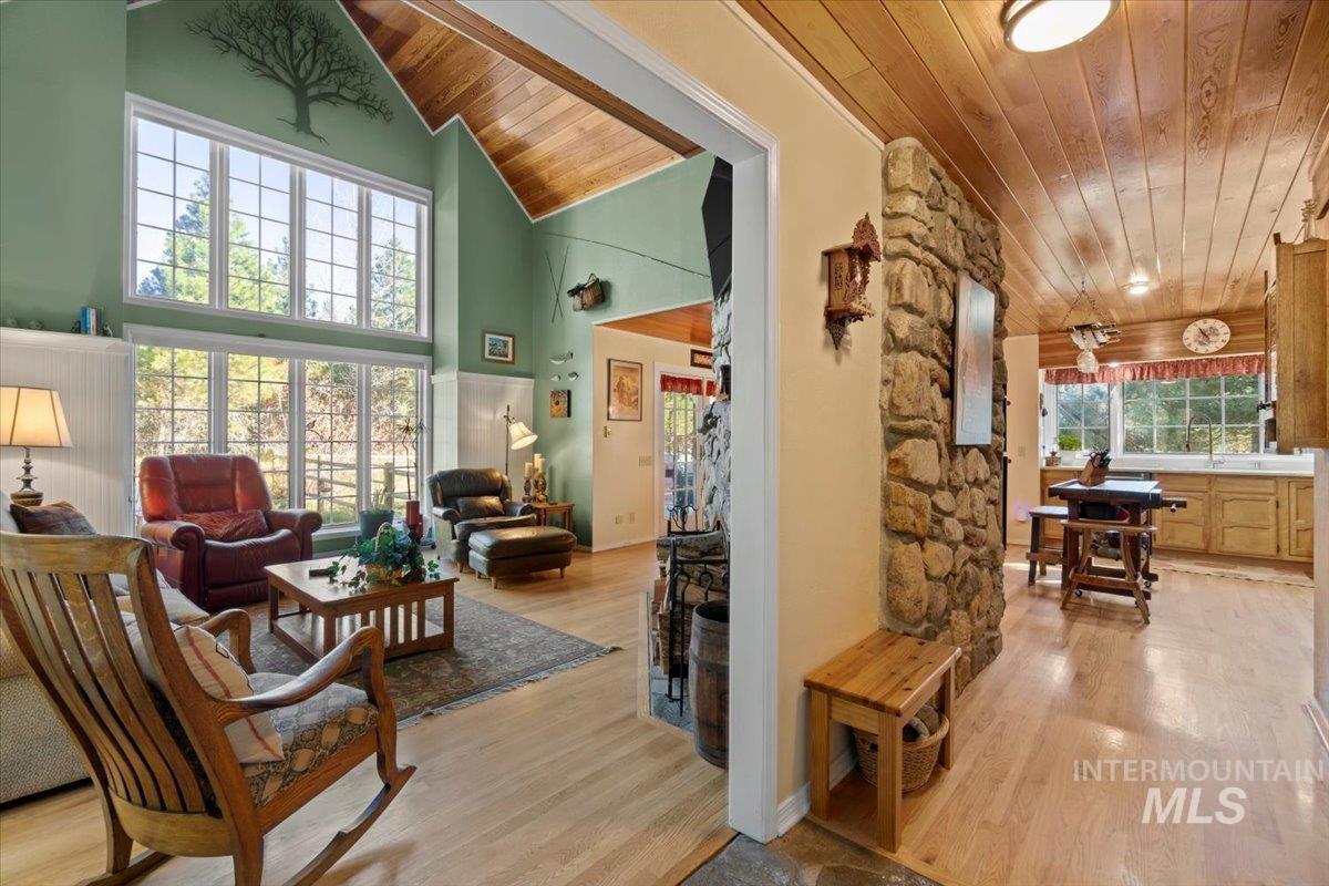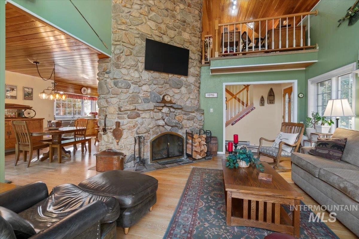 Imagine mornings with fresh mountain air and deer wandering through your yard, afternoons exploring McCall’s trails or biking just 10 minutes into town, and evenings gathered around a roaring river rock fireplace with friends and family. This 2-acre retreat blends rustic mountain charm with modern comforts: tongue-and-groove ceilings, a chef-ready kitchen with quartzite counters, and a spa-like primary suite with heated floors. Step outside to your own private haven—relax on the deck, host dinners on the flagstone patio, tend the greenhouse, or simply enjoy the peace of a fenced yard surrounded by towering trees. Entertain effortlessly in the finished basement with a media room and bar, or welcome guests to the detached garage apartment. With no HOA, updated finishes throughout, and a 4-year-old roof, this move-in-ready home offers the ultimate McCall lifestyle: privacy, comfort, and endless outdoor adventure—all just minutes from downtown!