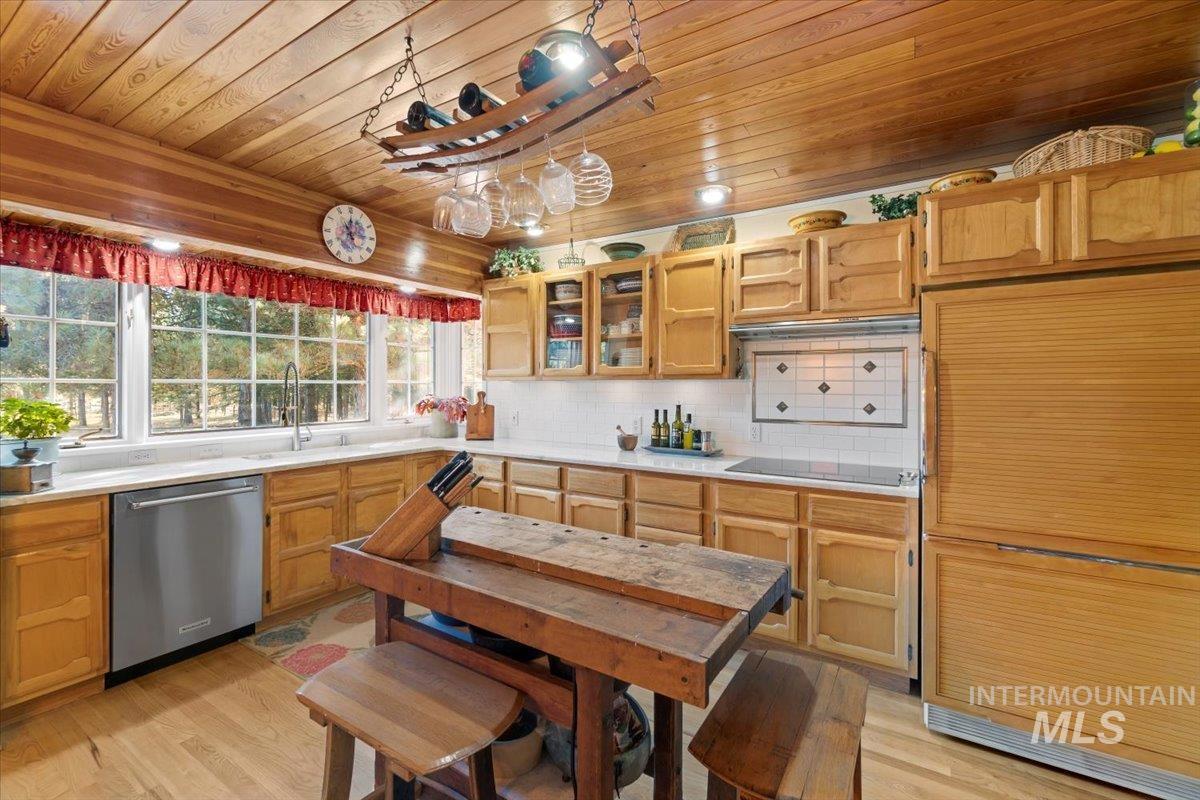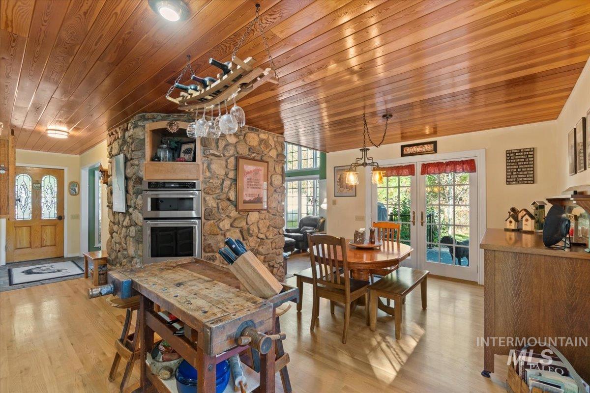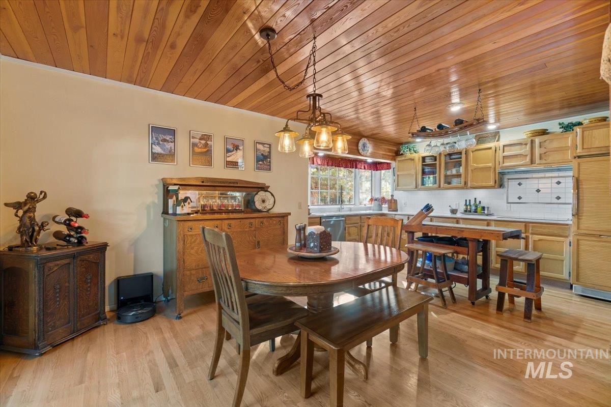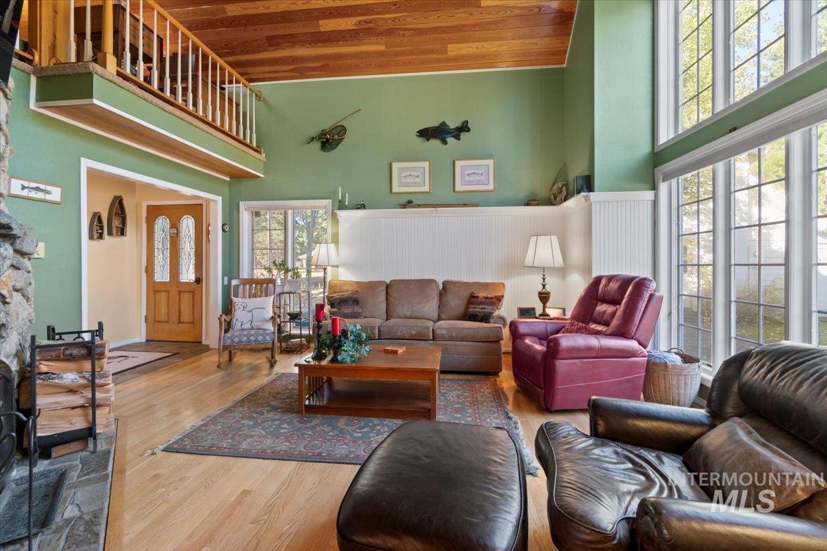 Imagine mornings with fresh mountain air and deer wandering through your yard, afternoons exploring McCall’s trails or biking just 10 minutes into town, and evenings gathered around a roaring river rock fireplace with friends and family. This 2-acre retreat blends rustic mountain charm with modern comforts: tongue-and-groove ceilings, a chef-ready kitchen with quartzite counters, and a spa-like primary suite with heated floors. Step outside to your own private haven—relax on the deck, host dinners on the flagstone patio, tend the greenhouse, or simply enjoy the peace of a fenced yard surrounded by towering trees. Entertain effortlessly in the finished basement with a media room and bar, or welcome guests to the detached garage apartment. With no HOA, updated finishes throughout, and a 4-year-old roof, this move-in-ready home offers the ultimate McCall lifestyle: privacy, comfort, and endless outdoor adventure—all just minutes from downtown!
