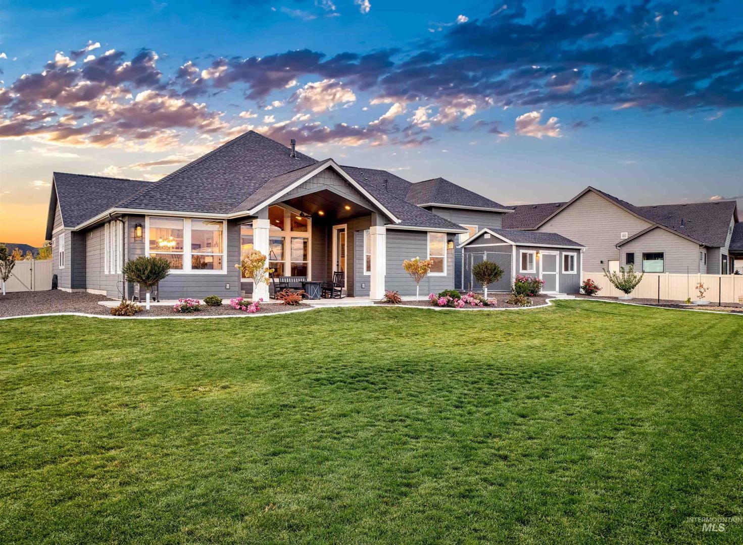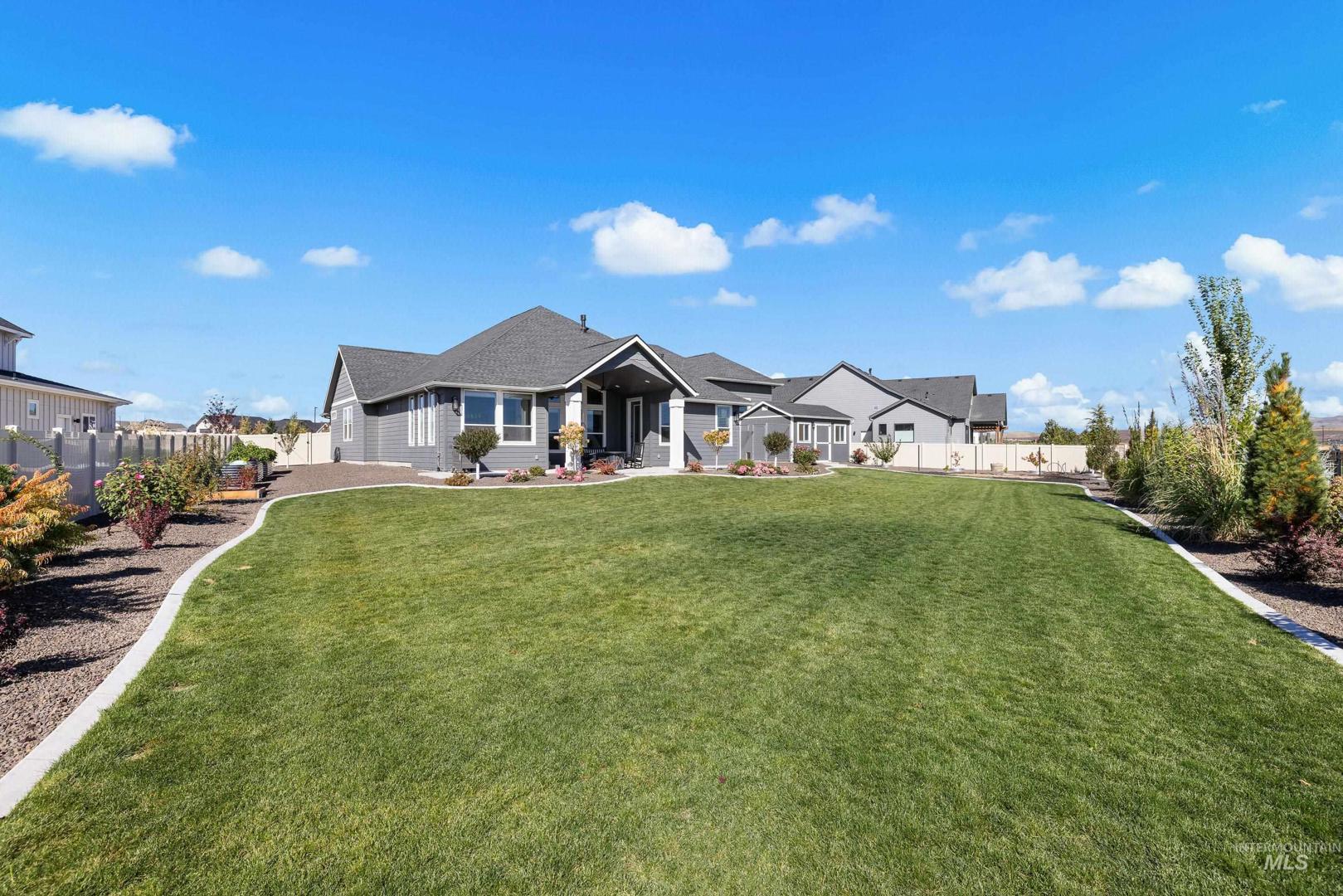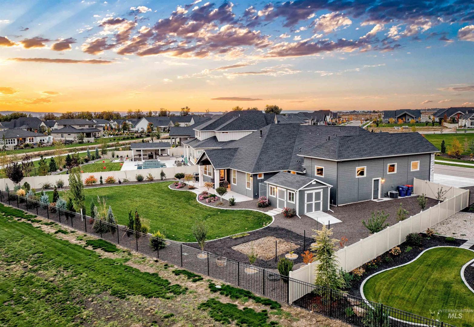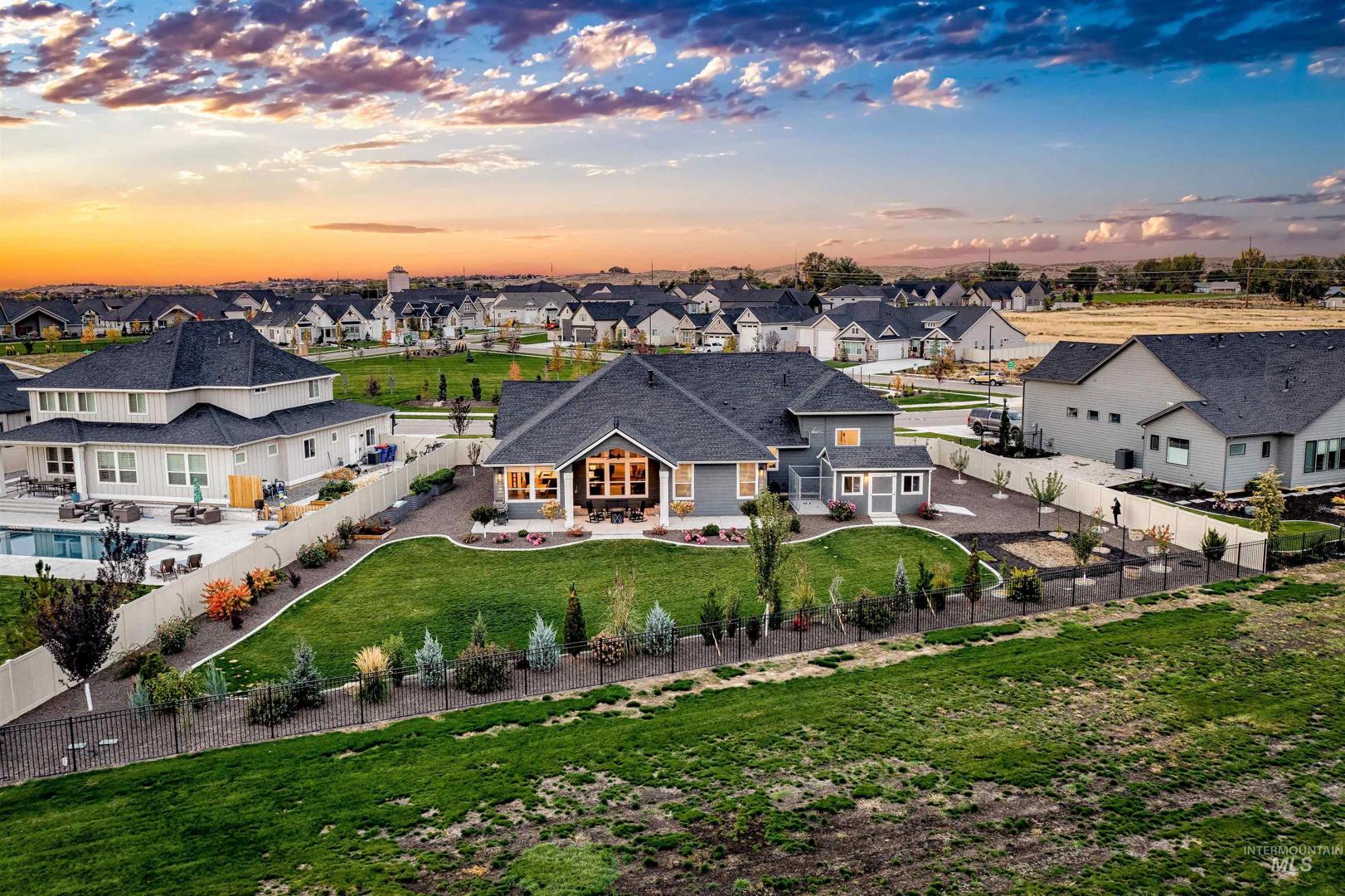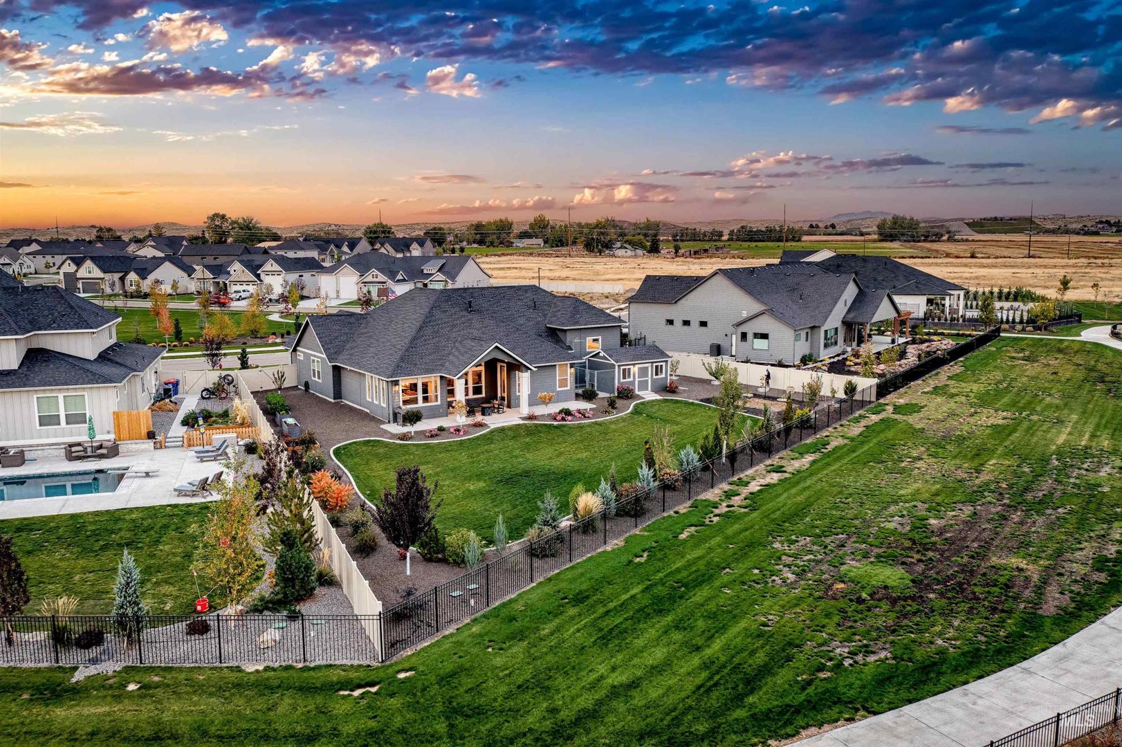 Luxury Eagle home on a premier .451 acre lot with stunning east-facing backyard views and exceptional design! This immaculate single-level residence with bonus room and full office showcases thoughtful upgrades including plantation shutters, roller and wood blinds, a hot-water recirculation system, 220V outlet, multiple dedicated 110V outlets, built-in cabinetry, and exceptional storage. The chef’s kitchen is a true highlight featuring Sub-Zero and Wolf appliances, double ovens, gas cooktop, microwave, ASKO dishwasher, and beverage refrigerator. Outdoor living is perfectly designed with an extended covered patio and fan, concrete curbing, gated access, telescoping lighted flagpole, and extensive landscaping with fruit trees, grapevines, blueberries, raised garden beds, and dedicated drip systems. A 12’x16’ custom powered garden shed and concrete dog run add even more versatility. With 3 bedrooms, 3 bathrooms, a bonus with bath and closet, full office, extra-deep 2-car garage, and 47’ RV bay, this home defines luxury and livability. Located with easy access to all Eagle Idaho amenities!