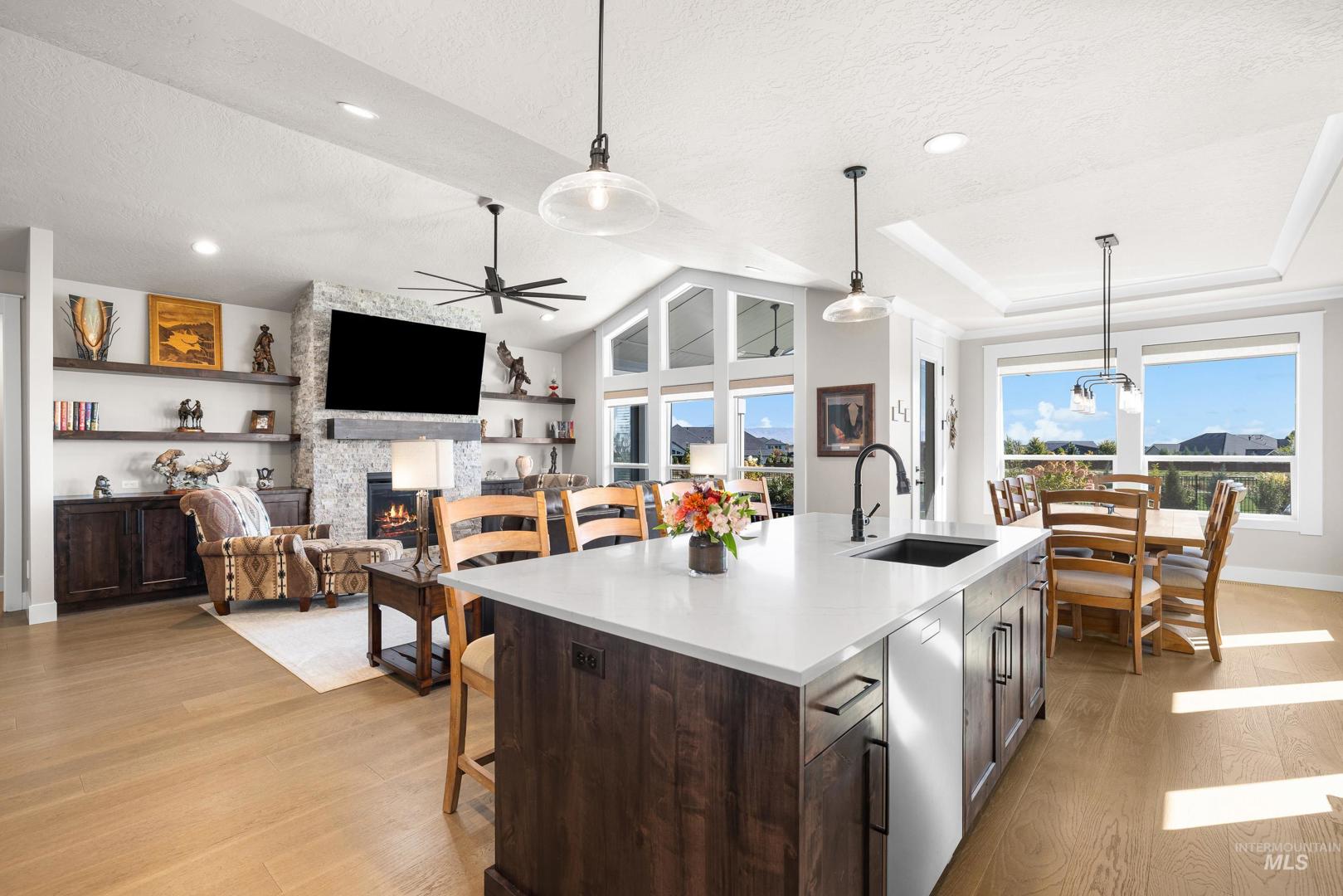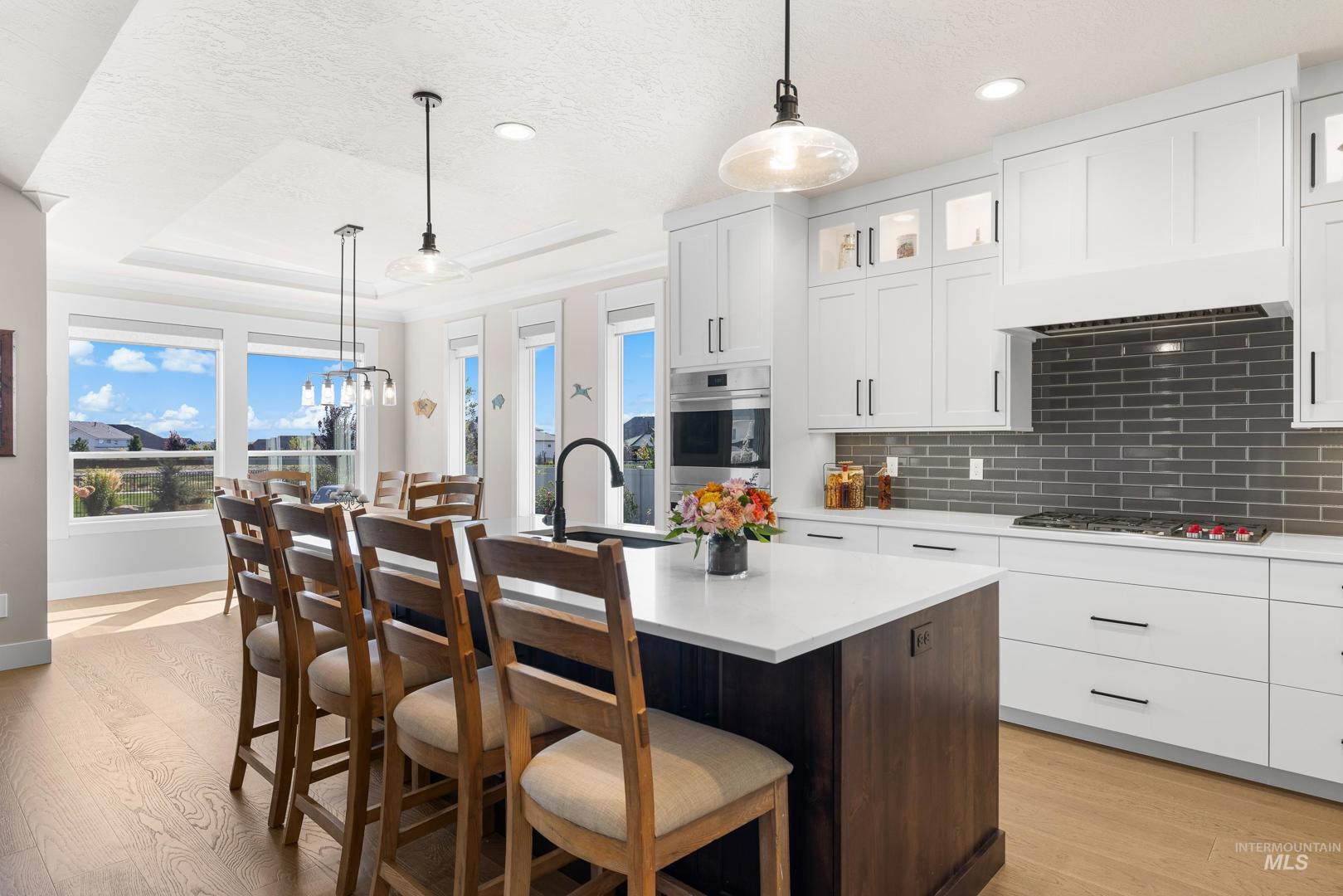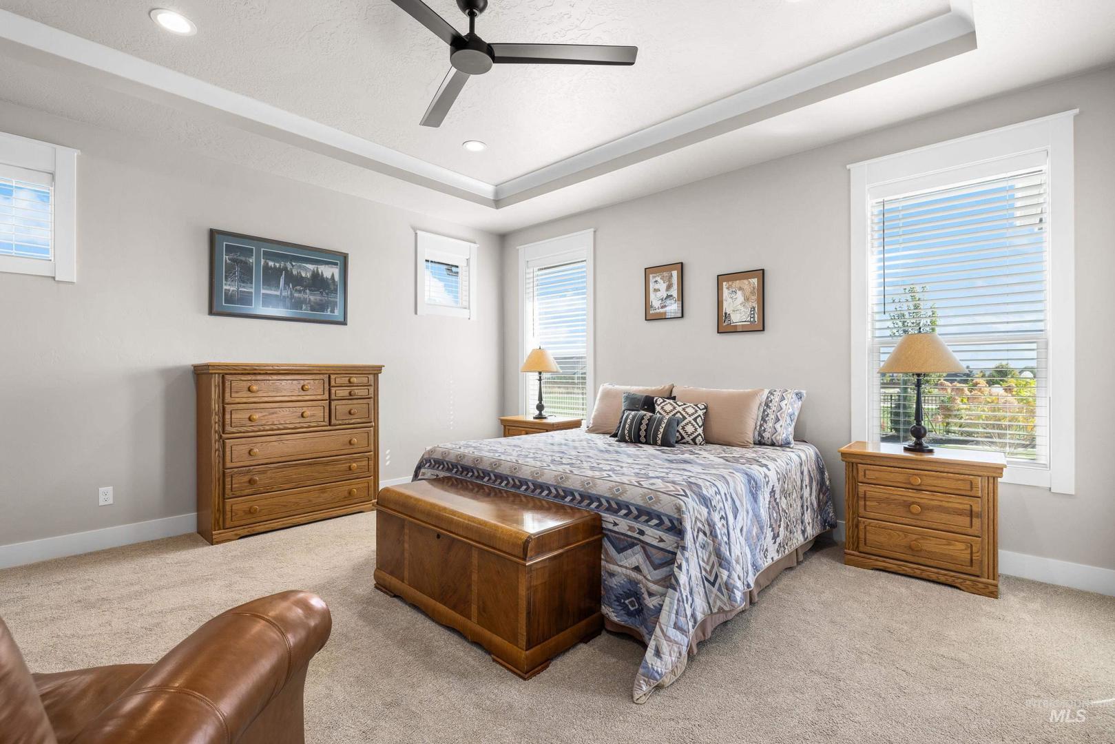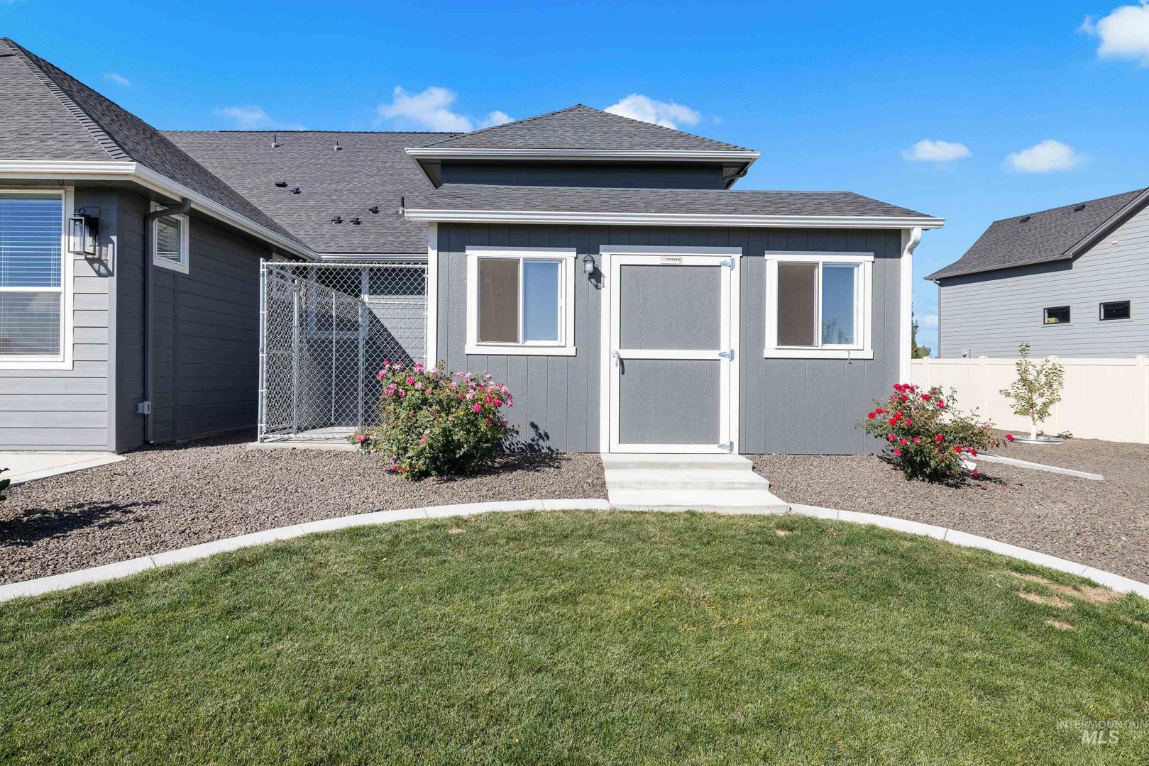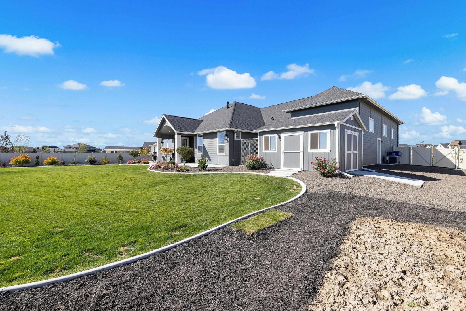 Luxury Eagle home on a premier .451 acre lot with stunning east-facing backyard views and exceptional design! This immaculate single-level residence with bonus room and full office showcases thoughtful upgrades including plantation shutters, roller and wood blinds, a hot-water recirculation system, 220V outlet, multiple dedicated 110V outlets, built-in cabinetry, and exceptional storage. The chef’s kitchen is a true highlight featuring Sub-Zero and Wolf appliances, double ovens, gas cooktop, microwave, ASKO dishwasher, and beverage refrigerator. Outdoor living is perfectly designed with an extended covered patio and fan, concrete curbing, gated access, telescoping lighted flagpole, and extensive landscaping with fruit trees, grapevines, blueberries, raised garden beds, and dedicated drip systems. A 12’x16’ custom powered garden shed and concrete dog run add even more versatility. With 3 bedrooms, 3 bathrooms, a bonus with bath and closet, full office, extra-deep 2-car garage, and 47’ RV bay, this home defines luxury and livability. Located with easy access to all Eagle Idaho amenities!