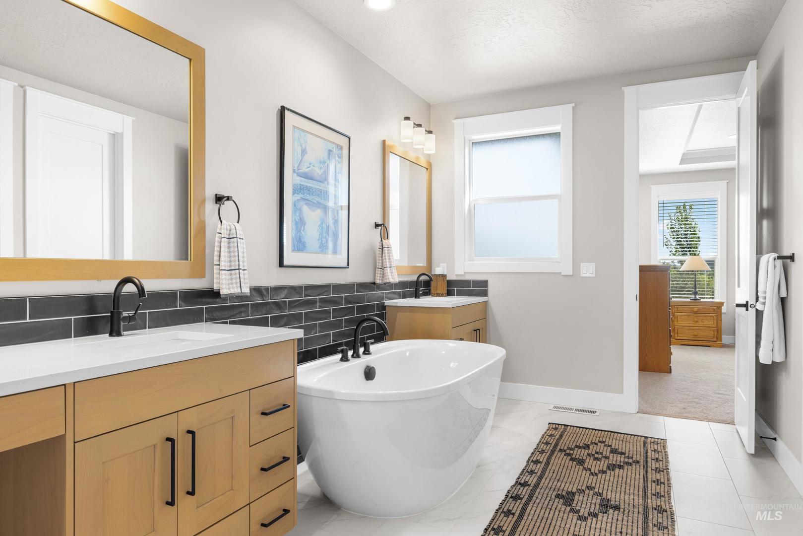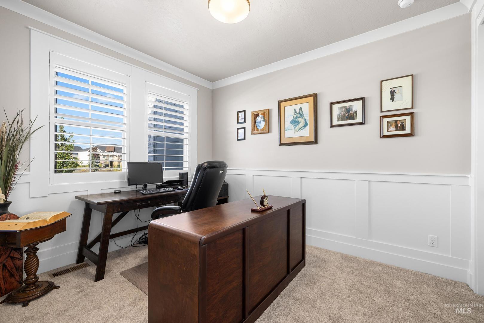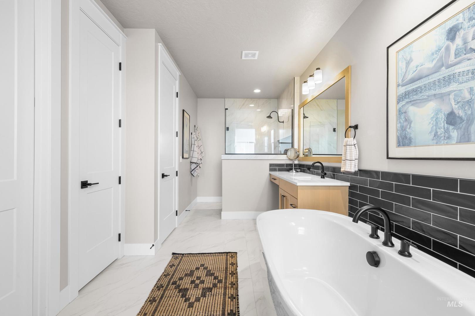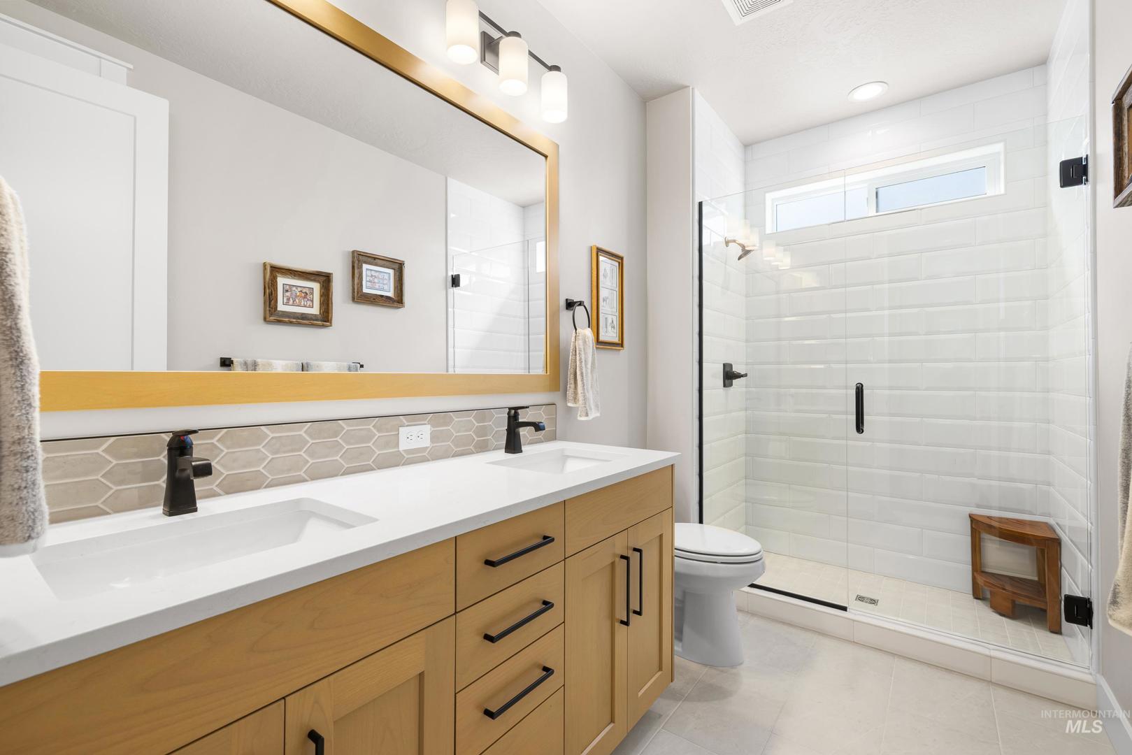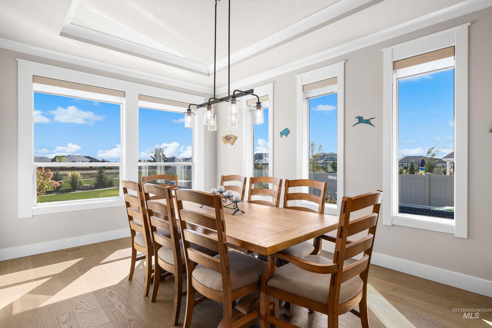 Luxury Eagle home on a premier .451 acre lot with stunning east-facing backyard views and exceptional design! This immaculate single-level residence with bonus room and full office showcases thoughtful upgrades including plantation shutters, roller and wood blinds, a hot-water recirculation system, 220V outlet, multiple dedicated 110V outlets, built-in cabinetry, and exceptional storage. The chef’s kitchen is a true highlight featuring Sub-Zero and Wolf appliances, double ovens, gas cooktop, microwave, ASKO dishwasher, and beverage refrigerator. Outdoor living is perfectly designed with an extended covered patio and fan, concrete curbing, gated access, telescoping lighted flagpole, and extensive landscaping with fruit trees, grapevines, blueberries, raised garden beds, and dedicated drip systems. A 12’x16’ custom powered garden shed and concrete dog run add even more versatility. With 3 bedrooms, 3 bathrooms, a bonus with bath and closet, full office, extra-deep 2-car garage, and 47’ RV bay, this home defines luxury and livability. Located with easy access to all Eagle Idaho amenities!