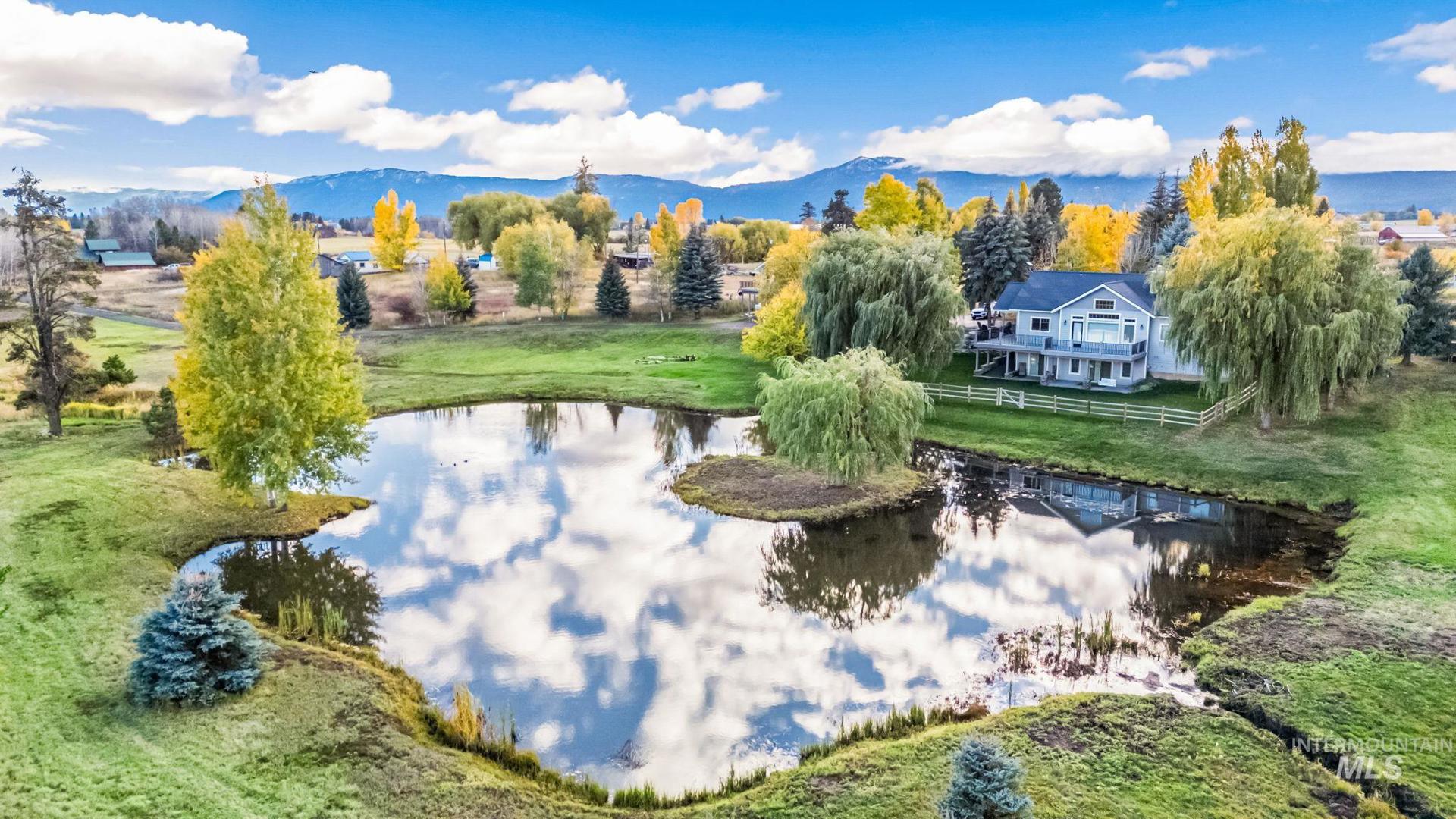 Full turnkey custom 4BD/3.5BA 3,351 sq ft estate on 3.47 acres with breathtaking mountain views and no HOA! Newly installed hardscape features a paver patio with firepit, basalt fountain, dry creek bed, waterfall, large deck and private pond for serene outdoor living. Attached 2-car garage plus large detached finished 35`x35` shop with 12’x12’ RV door and income producing guesthouse/apartment with additional garage. Interior offers radiant floor heat, granite countertops, wood flooring, stainless steel appliances, and quality finishes throughout. A rare combination of space, views, and craftsmanship just minutes from town. This is truly a one-of-a-kind property that you have to see to believe!