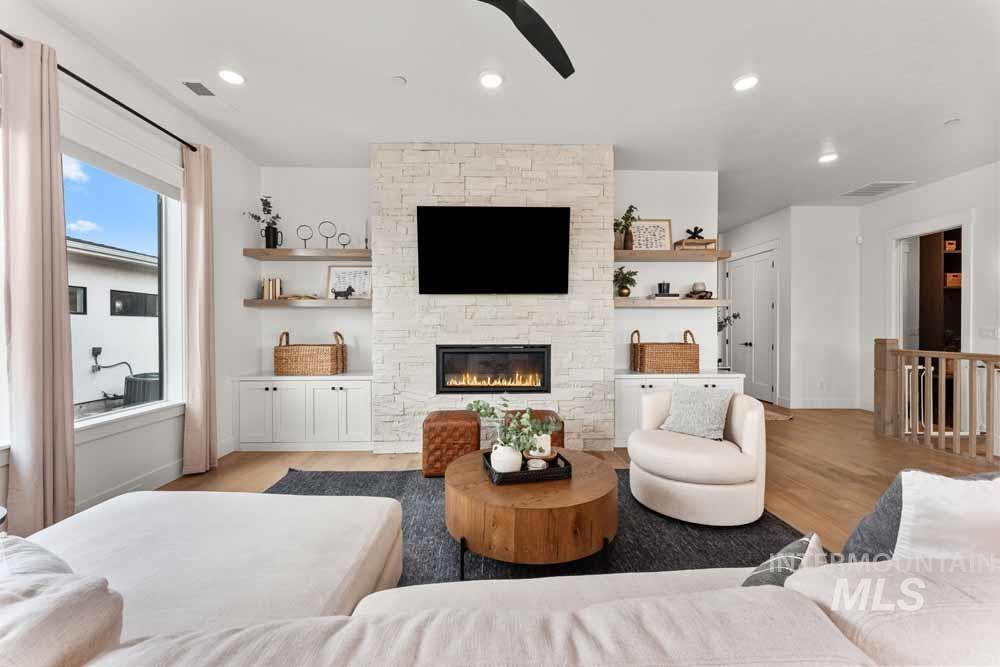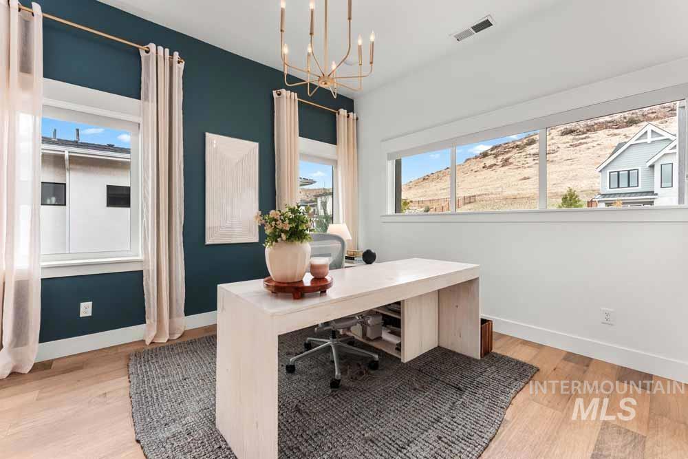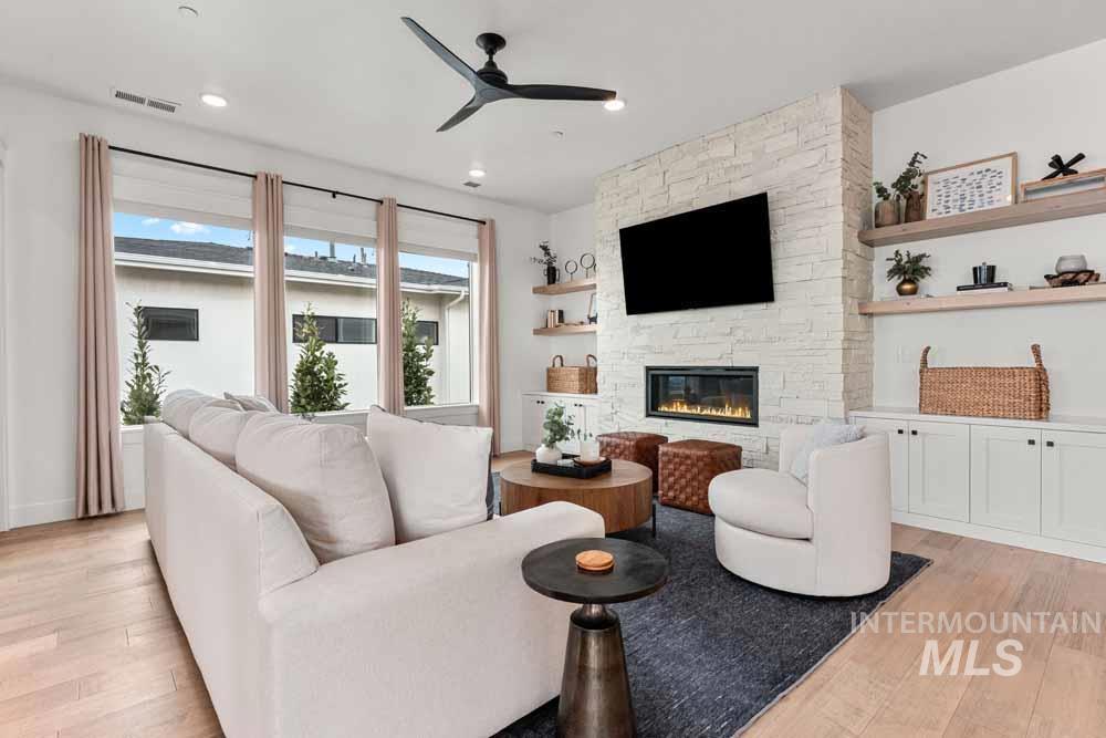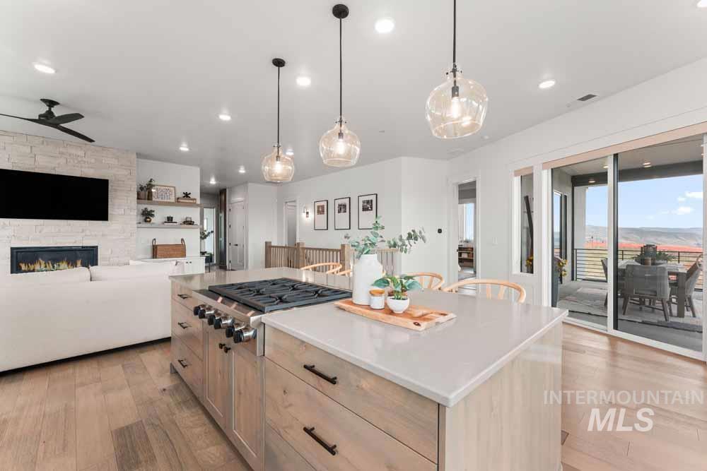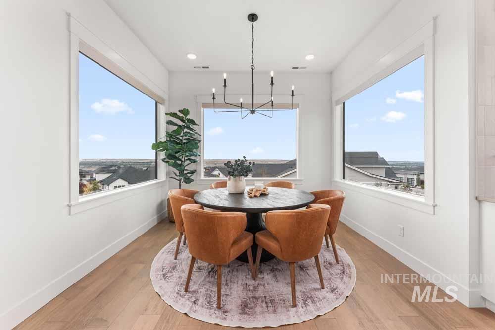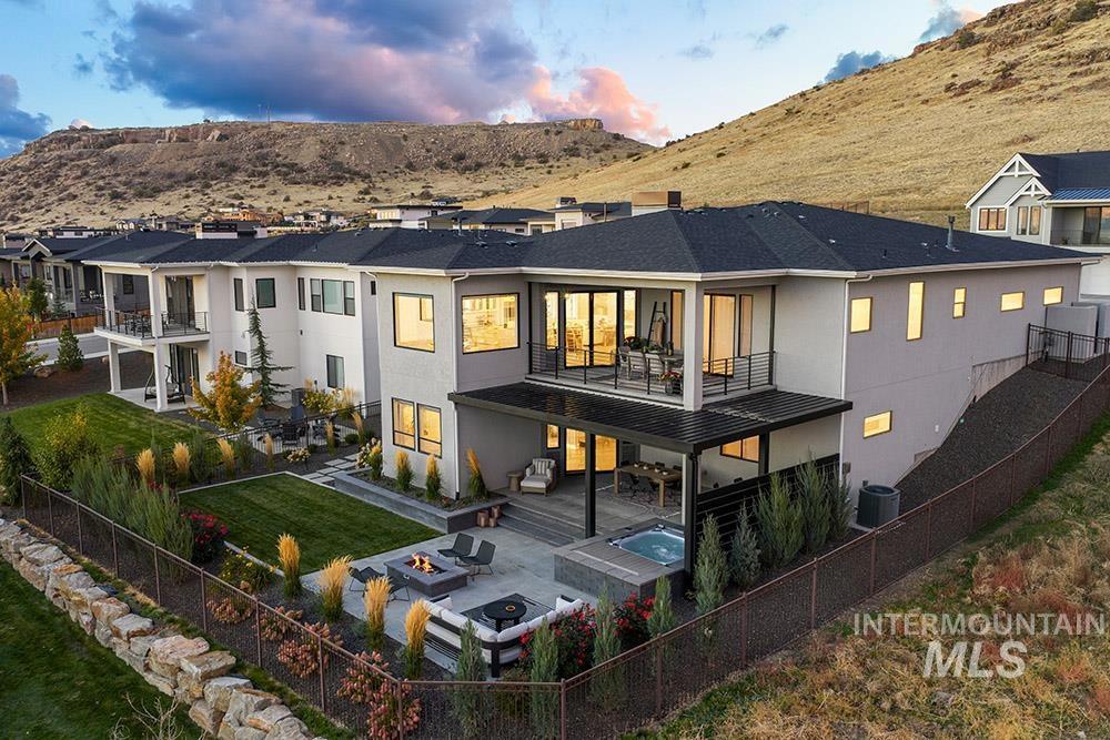 Welcome to this stunning East Boise estate with sweeping valley-wide views! This home blends elegance, comfort, and a resort-style backyard oasis. The exceptionally updated grounds feature an extended patio, new fencing, a built-in firepit, a recessed hot tub deck, and professional landscaping with new hardscaping throughout. Inside, the great room impresses with a dramatic floor-to-ceiling stacked-stone fireplace and custom built-ins. The chef’s kitchen includes WOLF and Sub-Zero appliances, floor-to-ceiling cabinetry, and a sink overlooking the valley. The dining area offers walls of windows framing breathtaking views. The main-level primary suite features a private balcony, dual vanities, an oversized walk-in shower, and a spacious walk-in closet. Downstairs, a large bonus room includes an added wet bar, built-in wine cooler, and oversized guest suite. Wide-plank hardwood flooring flows throughout the home. Additional highlights include updated designer lighting, a built-in alarm system, an EV charger, and epoxy-finished garage. Close to trails, the iconic Boise Greenbelt, Warm Springs Golf Course, and minutes from downtown dining and shopping!