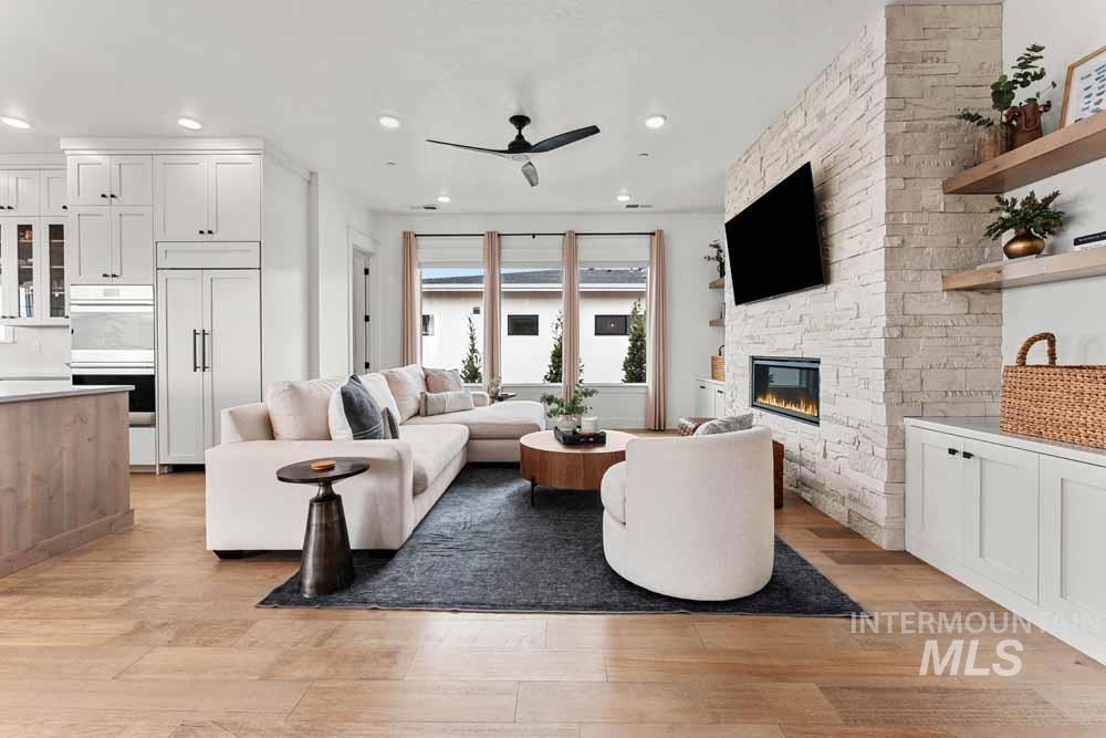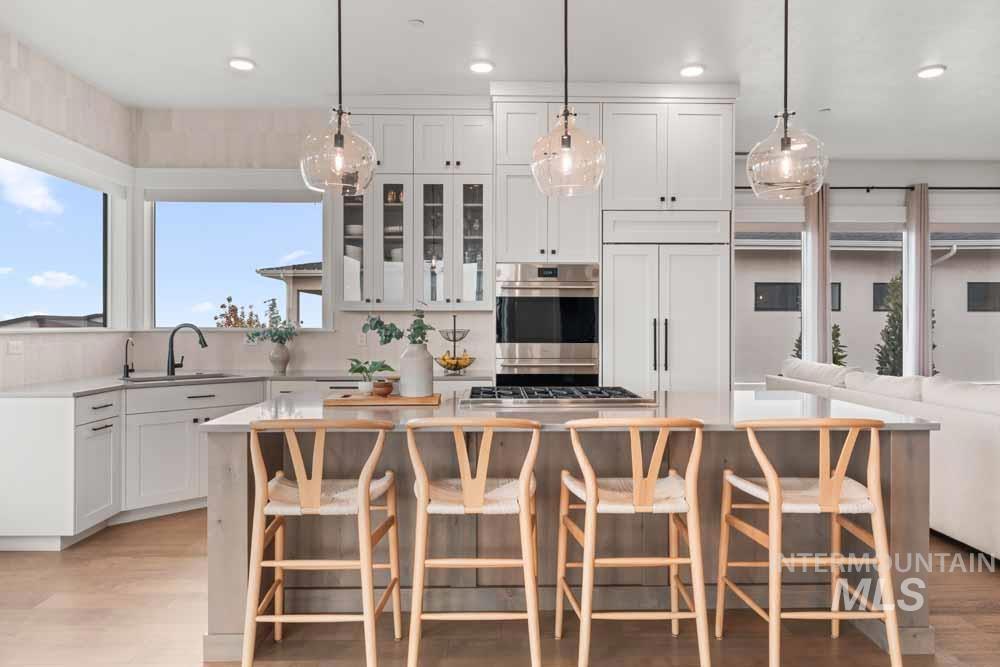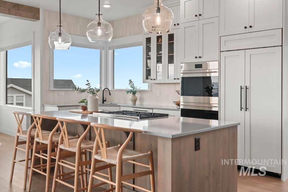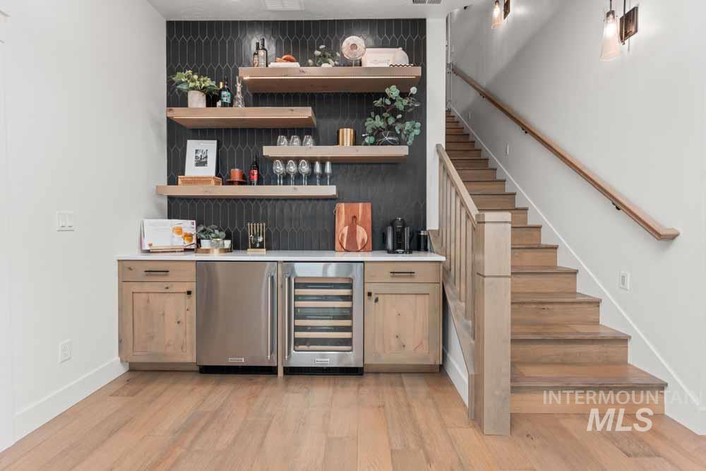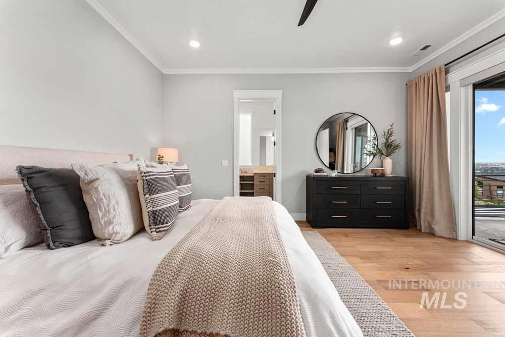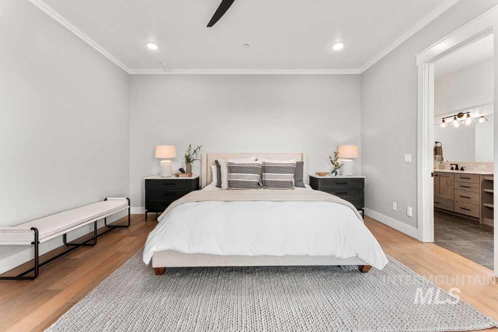 Welcome to this stunning East Boise estate with sweeping valley-wide views! This home blends elegance, comfort, and a resort-style backyard oasis. The exceptionally updated grounds feature an extended patio, new fencing, a built-in firepit, a recessed hot tub deck, and professional landscaping with new hardscaping throughout. Inside, the great room impresses with a dramatic floor-to-ceiling stacked-stone fireplace and custom built-ins. The chef’s kitchen includes WOLF and Sub-Zero appliances, floor-to-ceiling cabinetry, and a sink overlooking the valley. The dining area offers walls of windows framing breathtaking views. The main-level primary suite features a private balcony, dual vanities, an oversized walk-in shower, and a spacious walk-in closet. Downstairs, a large bonus room includes an added wet bar, built-in wine cooler, and oversized guest suite. Wide-plank hardwood flooring flows throughout the home. Additional highlights include updated designer lighting, a built-in alarm system, an EV charger, and epoxy-finished garage. Close to trails, the iconic Boise Greenbelt, Warm Springs Golf Course, and minutes from downtown dining and shopping!