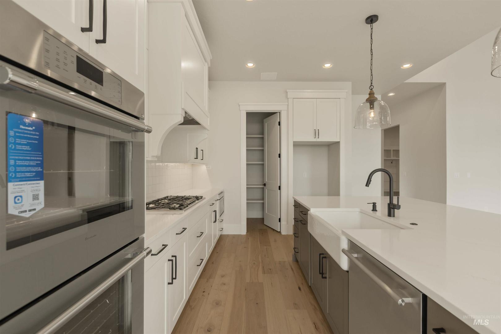The Carl Blain by James Clyde Homes. All the bells and whistles you`ve come to expect from James Clyde: Beautiful Pecan Engineering Hardwood, Amazing Stainless Steel Thermador appliances, custom built cabinetry, breathtaking trim work & detail that only a true craftsman can deliver! Great room has vaulted ceilings featuring Beams! Don`t miss the oversized Den that could be four bedroom. This Amazing House Backs up to Discovery Park!!! Full landscaping front & back and full fencing!!*Photo Similar* Completion Date October 28, 2025 BTVAI
