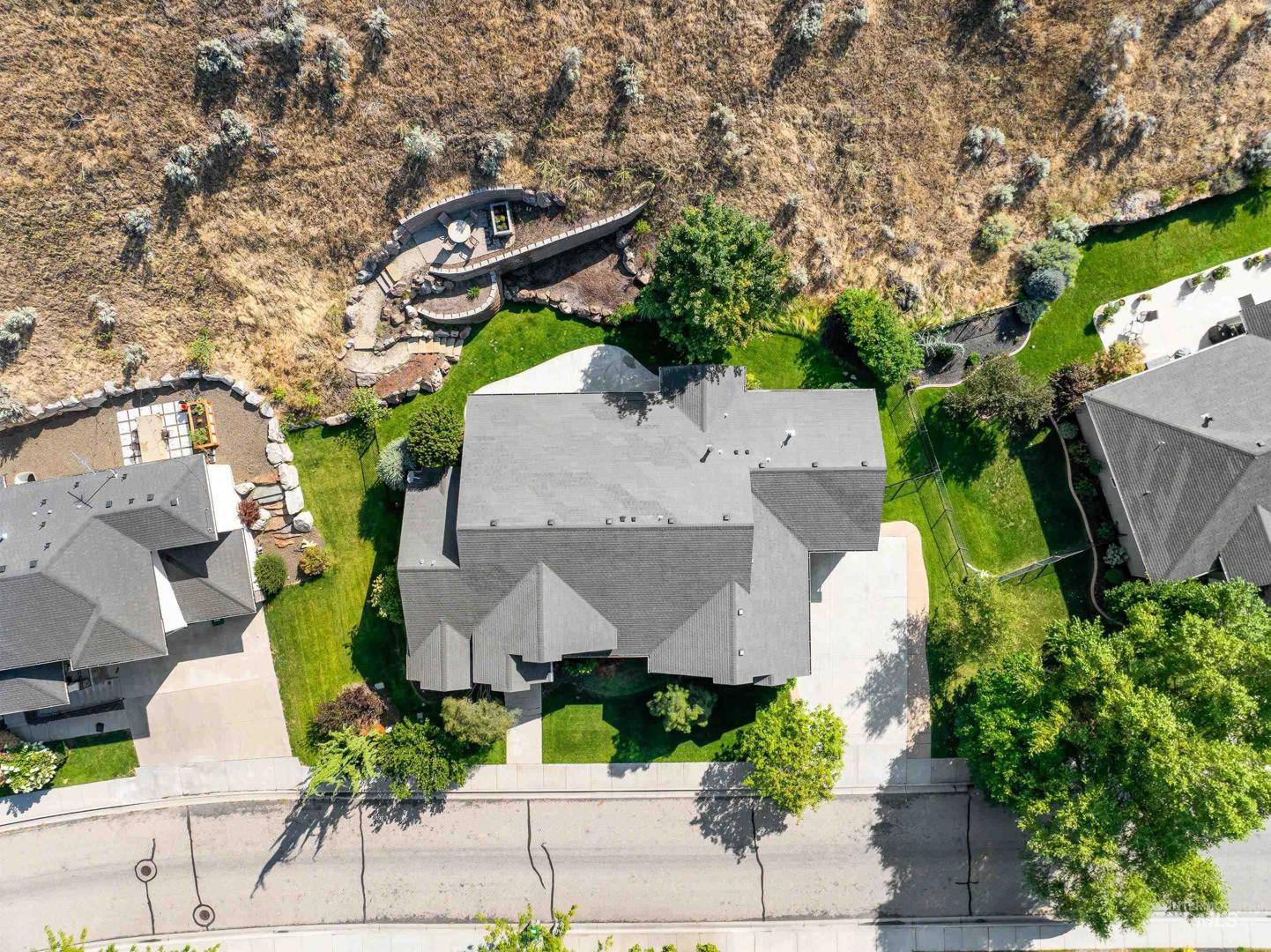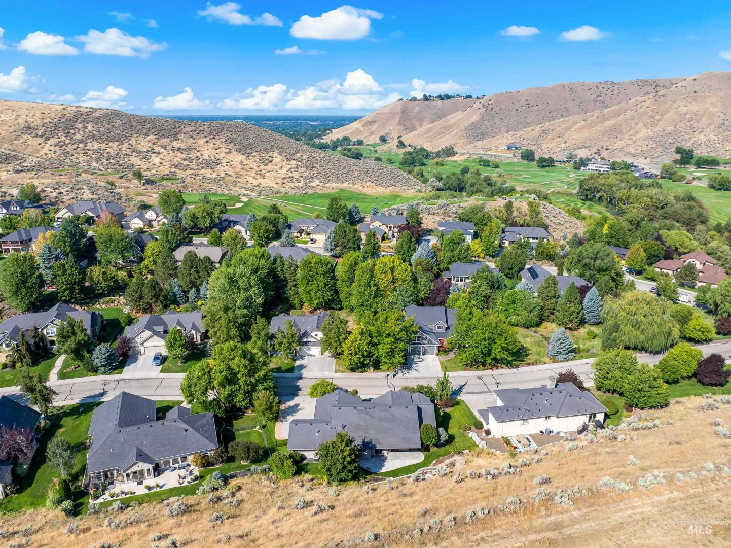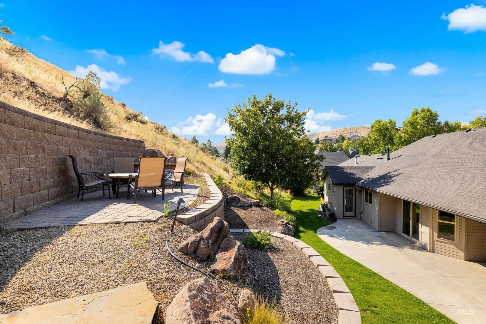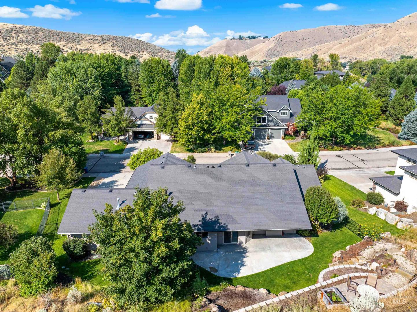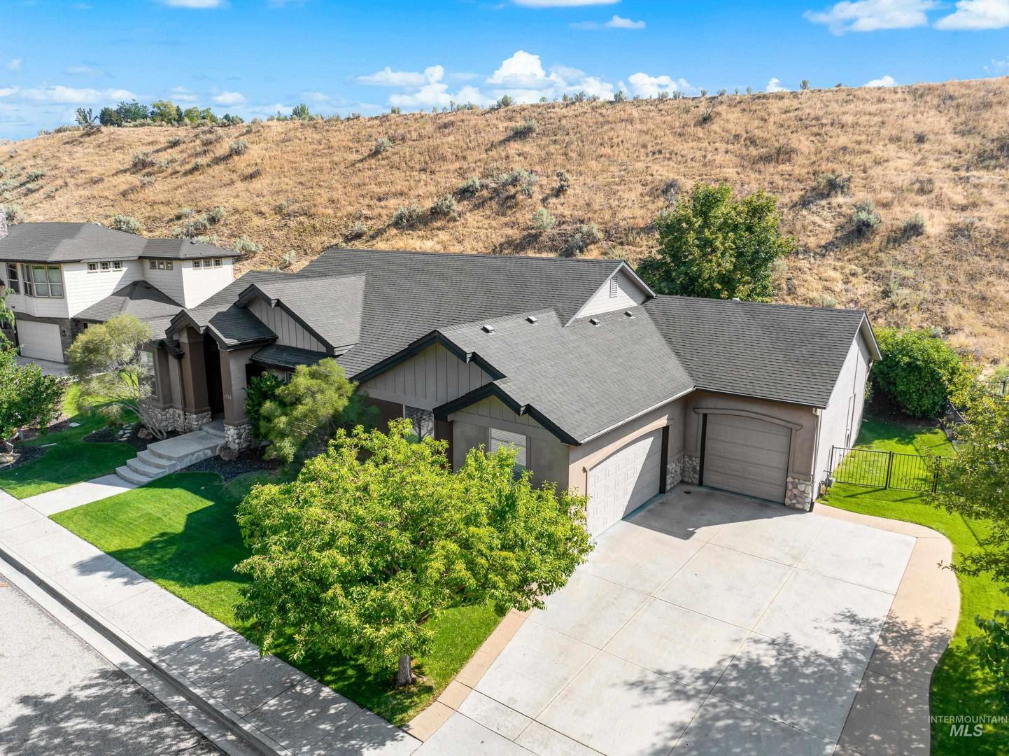 PRICE IMPROVEMENT! Elegant single-level home quietly set at the base of North Boise’s foothills in desirable Eyrie Canyon. This is a rare opportunity to own a foothills retreat that perfectly balances size, style, and setting—without sacrificing convenience. Just minutes from Hyde Park, Camel’s Back, and downtown Boise, this home offers easy access to trails, golf, and open space right outside your door. A bright great room with vaulted ceilings and an updated fireplace anchors the open layout, while the kitchen showcases quartz counters, wood cabinetry, and stainless appliances, including a new dishwasher and refrigerator. The split-bedroom design ensures privacy, with two secondary bedrooms and a versatile office or bonus space. The retreat-style primary suite opens to the patio and features a cozy sitting nook, fireplace, walk-in closet, and spa-like bath. Thoughtful updates include fresh paint, modern lighting, plush carpet, redesigned fireplaces with on-trend finishes, a newer HVAC system (2021), and water heater (2019). The north-facing backyard offers peaceful foothill views, natural rock accents, and terraced spaces ideal for relaxing or entertaining. A rare 3-car split garage adds flexibility for storage, a workshop, or home gym. This is the perfect blend of foothills serenity, city access, and outstanding value in one of Boise’s most sought-after neighborhoods.