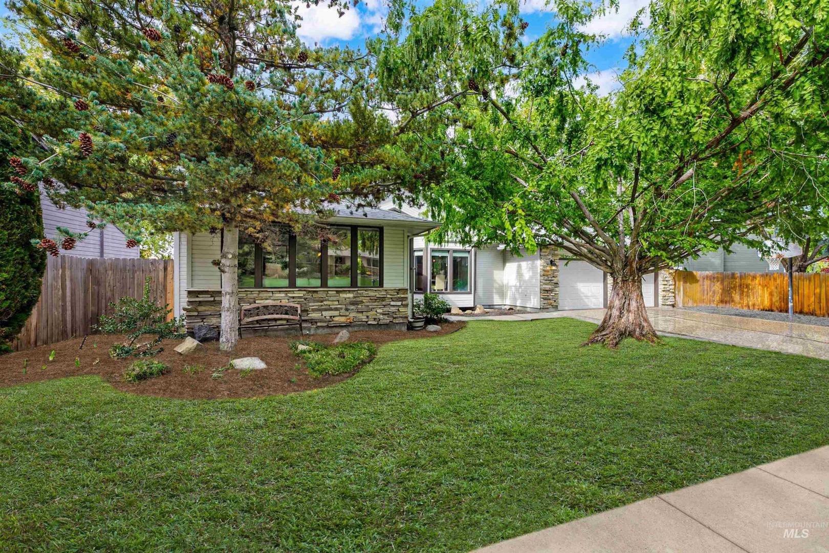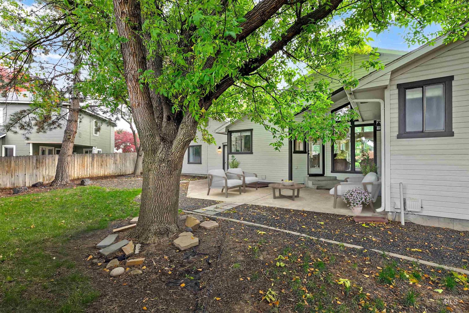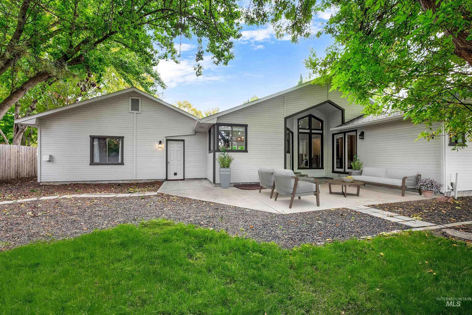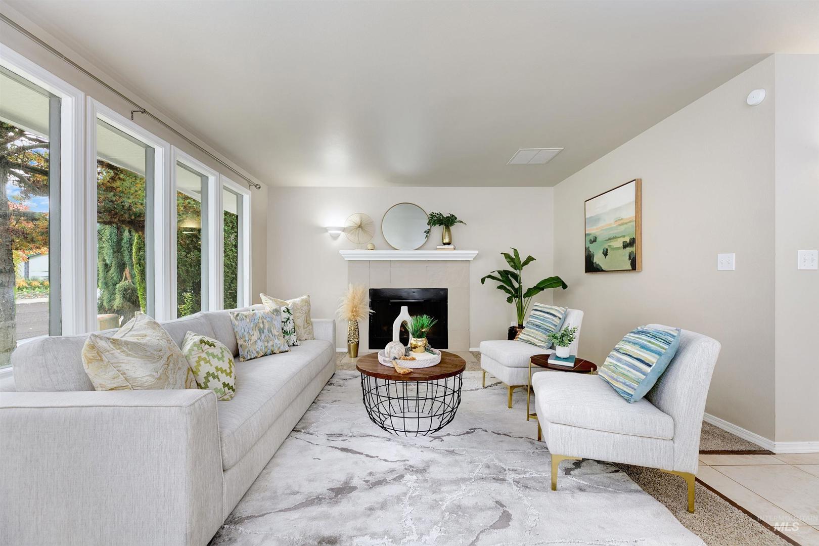 Tucked into a quiet, established neighborhood in the heart of Eagle, this thoughtfully updated home offers the perfect balance of comfort, space, and convenience. An open floor plan is filled with natural light from expansive windows, creating a bright and welcoming atmosphere throughout. The kitchen combines function and style with rich Thomasville cabinetry, granite countertops, stainless steel appliances, a wine cooler, and a spacious pantry. A cozy fireplace anchors the main living area, ideal for both relaxing and entertaining. The main-level primary suite features patio access, a walk-in closet, and dual vanities for added comfort. Downstairs, a second living space offers flexible options for a media room, guest quarters, or home office. Mature trees surround the backyard, providing a peaceful retreat. Located just minutes from downtown Eagle, Eagle Hills Golf Course, and local amenities. With no HOA fees, this home delivers value, everyday livability, and a prime location.