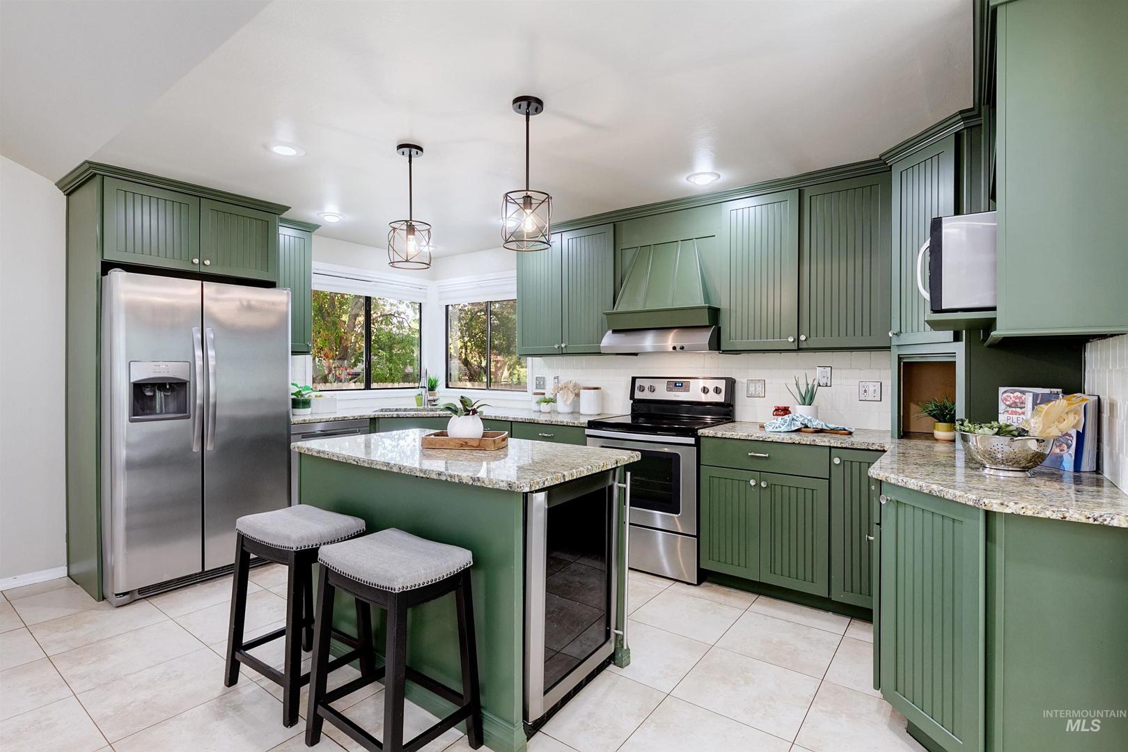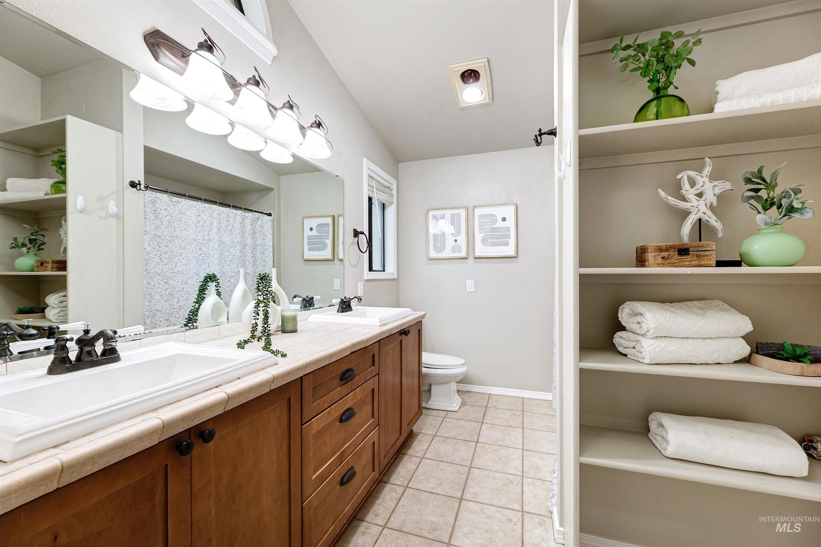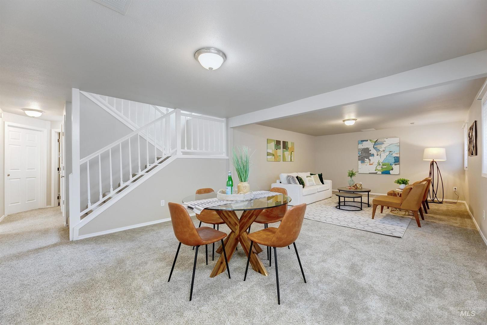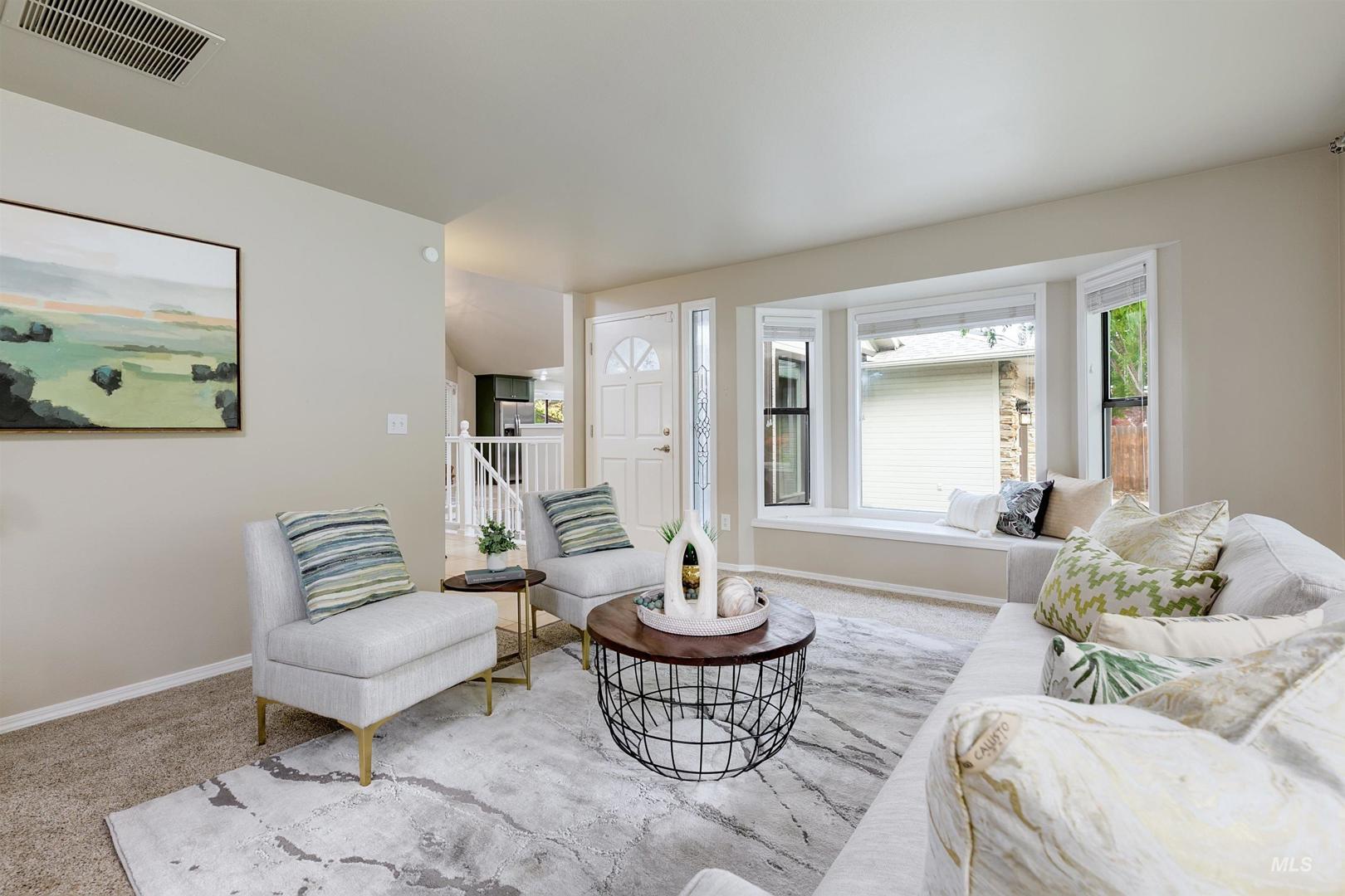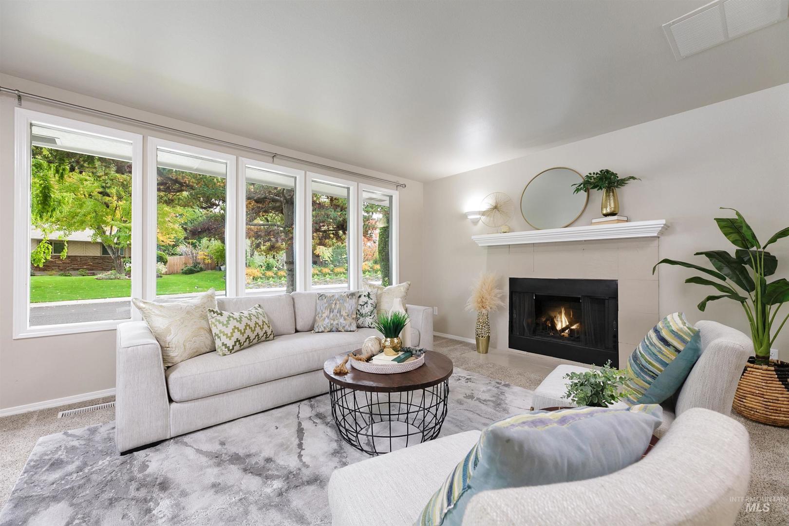 Tucked into a quiet, established neighborhood in the heart of Eagle, this thoughtfully updated home offers the perfect balance of comfort, space, and convenience. An open floor plan is filled with natural light from expansive windows, creating a bright and welcoming atmosphere throughout. The kitchen combines function and style with rich Thomasville cabinetry, granite countertops, stainless steel appliances, a wine cooler, and a spacious pantry. A cozy fireplace anchors the main living area, ideal for both relaxing and entertaining. The main-level primary suite features patio access, a walk-in closet, and dual vanities for added comfort. Downstairs, a second living space offers flexible options for a media room, guest quarters, or home office. Mature trees surround the backyard, providing a peaceful retreat. Located just minutes from downtown Eagle, Eagle Hills Golf Course, and local amenities. With no HOA fees, this home delivers value, everyday livability, and a prime location.