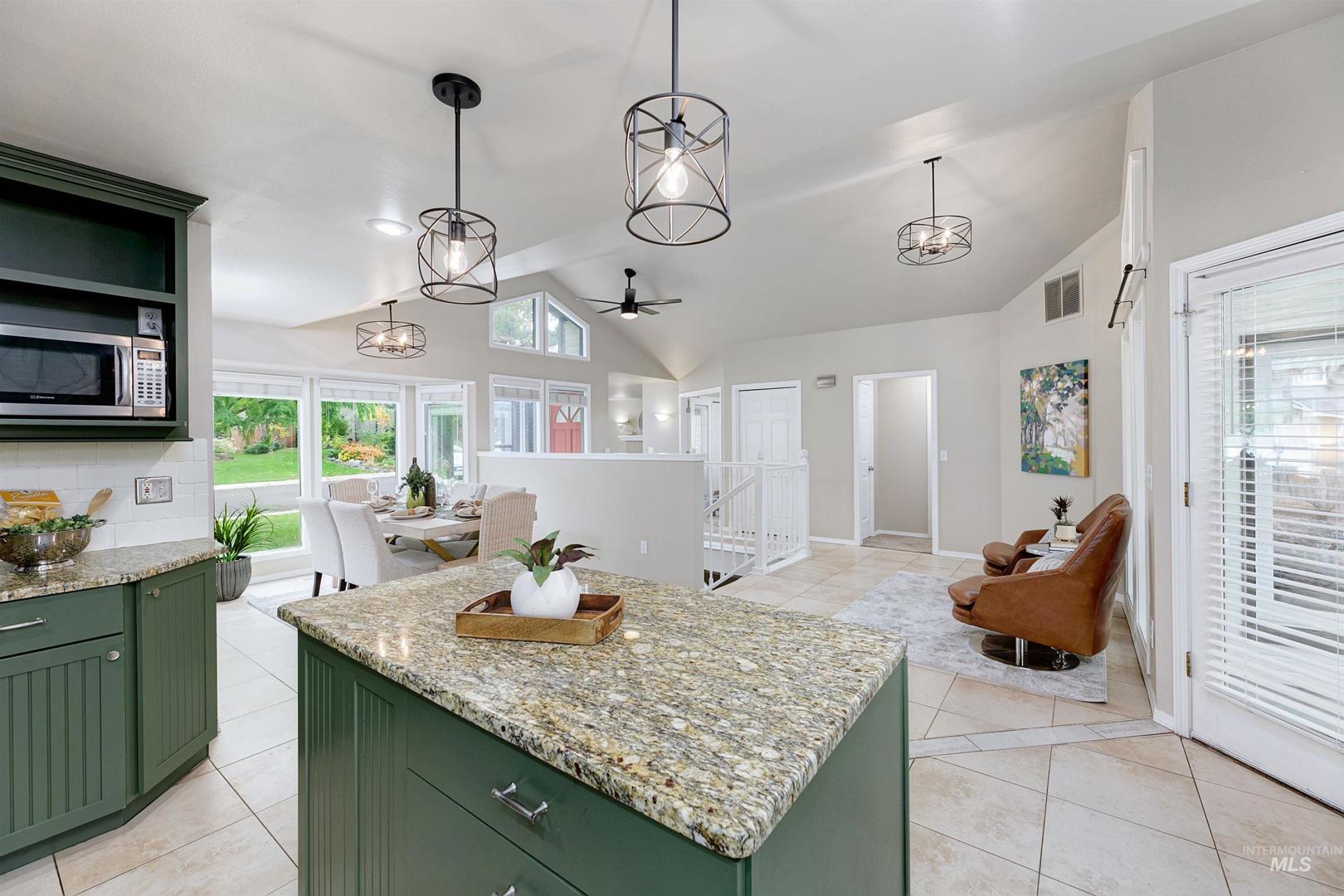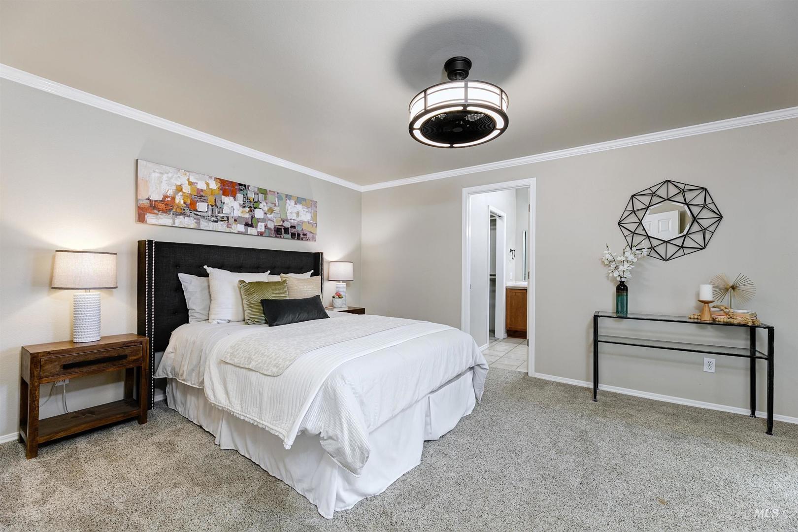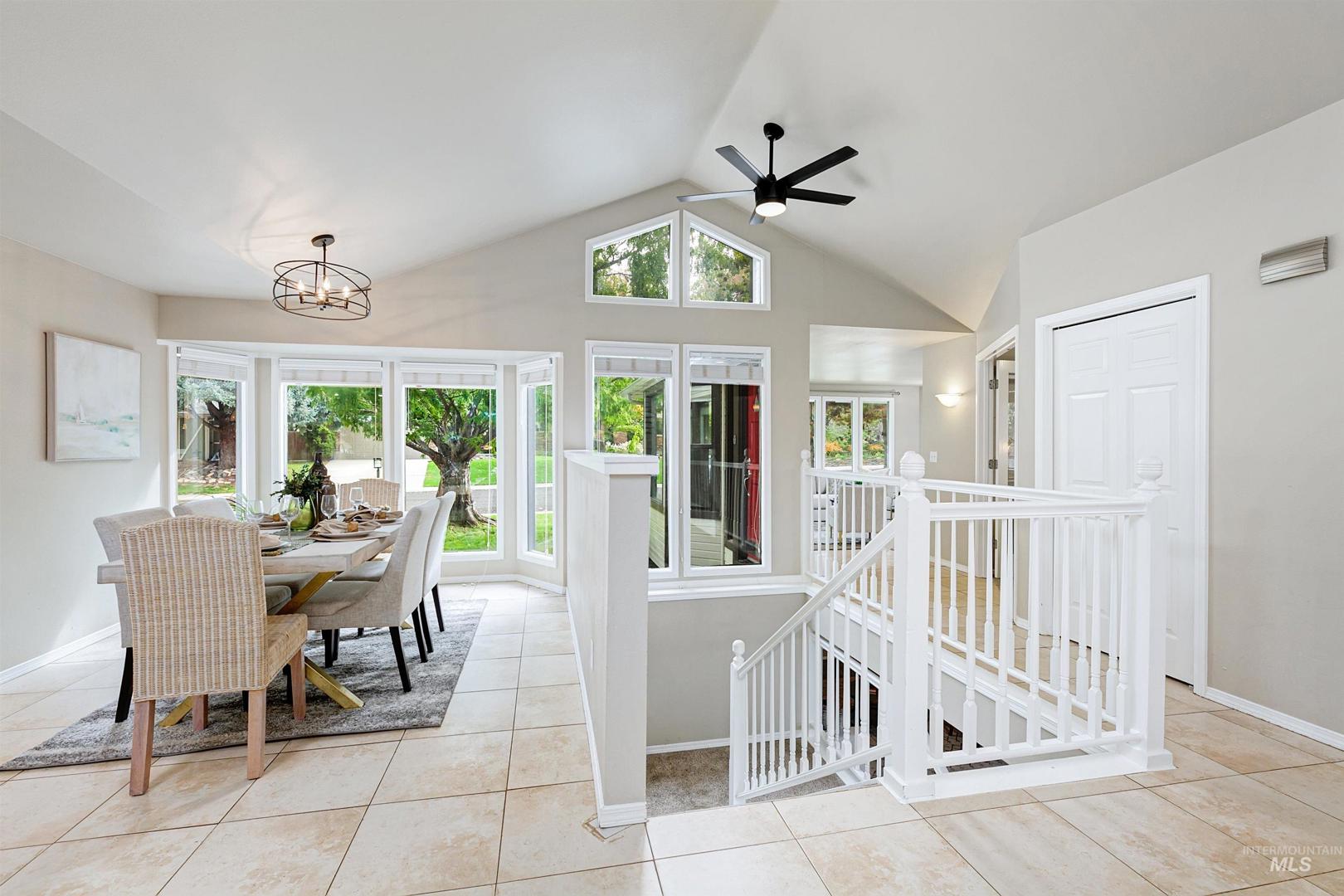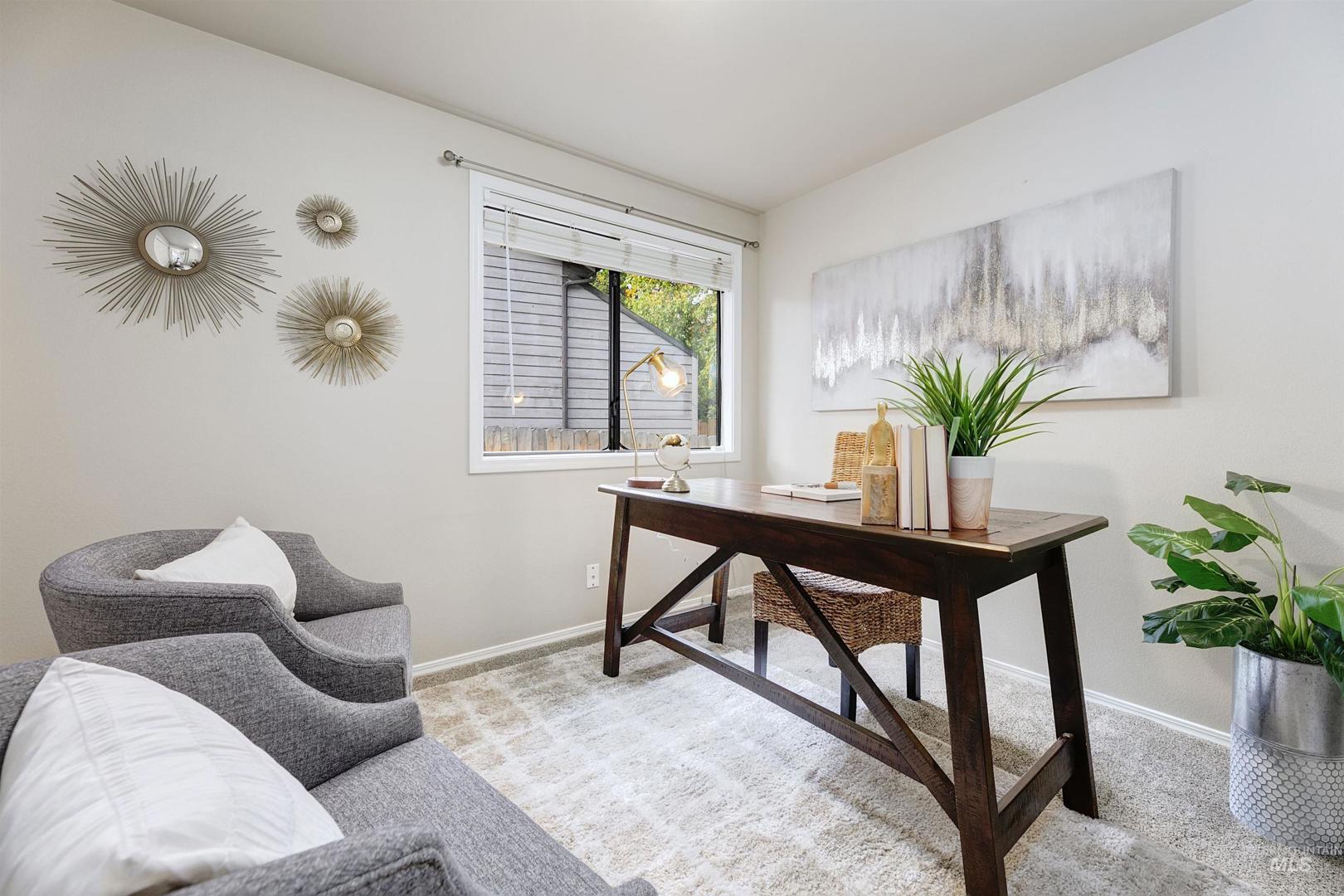 Tucked into a quiet, established neighborhood in the heart of Eagle, this thoughtfully updated home offers the perfect balance of comfort, space, and convenience. An open floor plan is filled with natural light from expansive windows, creating a bright and welcoming atmosphere throughout. The kitchen combines function and style with rich Thomasville cabinetry, granite countertops, stainless steel appliances, a wine cooler, and a spacious pantry. A cozy fireplace anchors the main living area, ideal for both relaxing and entertaining. The main-level primary suite features patio access, a walk-in closet, and dual vanities for added comfort. Downstairs, a second living space offers flexible options for a media room, guest quarters, or home office. Mature trees surround the backyard, providing a peaceful retreat. Located just minutes from downtown Eagle, Eagle Hills Golf Course, and local amenities. With no HOA fees, this home delivers value, everyday livability, and a prime location.