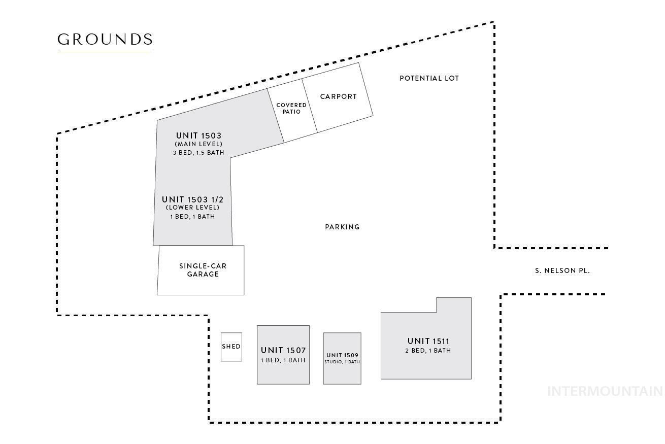 Tucked away in the heart of the Boise Bench, a favorite community for urban living & university students alike, is an incredibly unique and quiet property with a large updated Duplex and 3 additional cozy bungalows, all in a wooded alcove on over 1/2 an acre! It feels like a cabin campsite area in the mountains; yet it`s just mins from downtown! The updated main Mid-century home has a large kitchen, hardwood floors, 3 bed/1.5 bath. The living room boasts a wood beam ceiling, large gas fireplace with sitting hearth and peaceful backyard. The lower level was converted into a separate rental 1 bed/1 bath unit with full kitchen, living and gas fireplace (Potential for airbnb). Plus 3 separate dwellings consisting of a studio unit, a one bed one bath unit and a two bed 1 bath unit. Plenty of open parking, covered carport, and shared laundry building on-site. The private driveway lends itself to the secluded nature of the parcel! A smart portfolio property or incredible potential development opportunity.