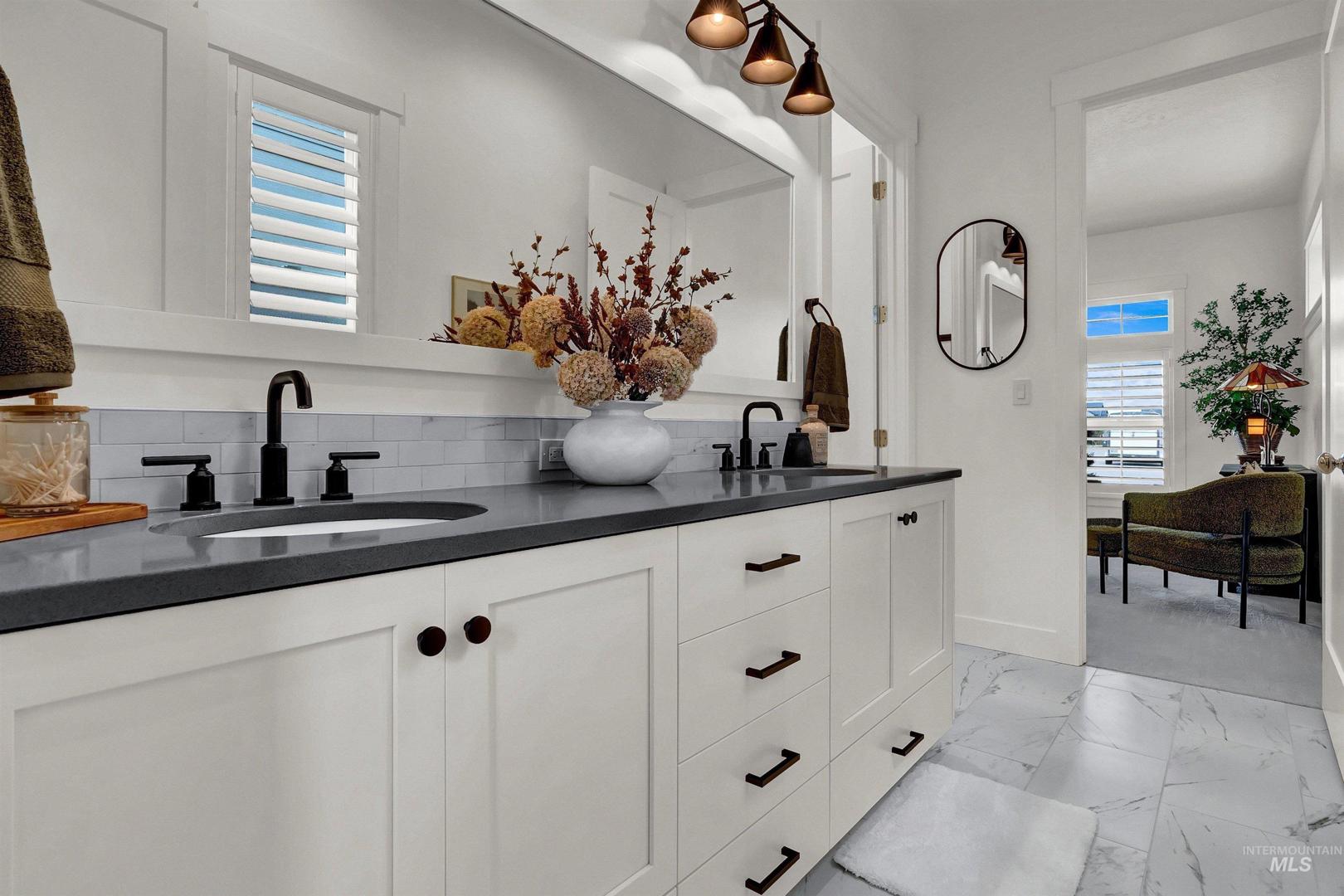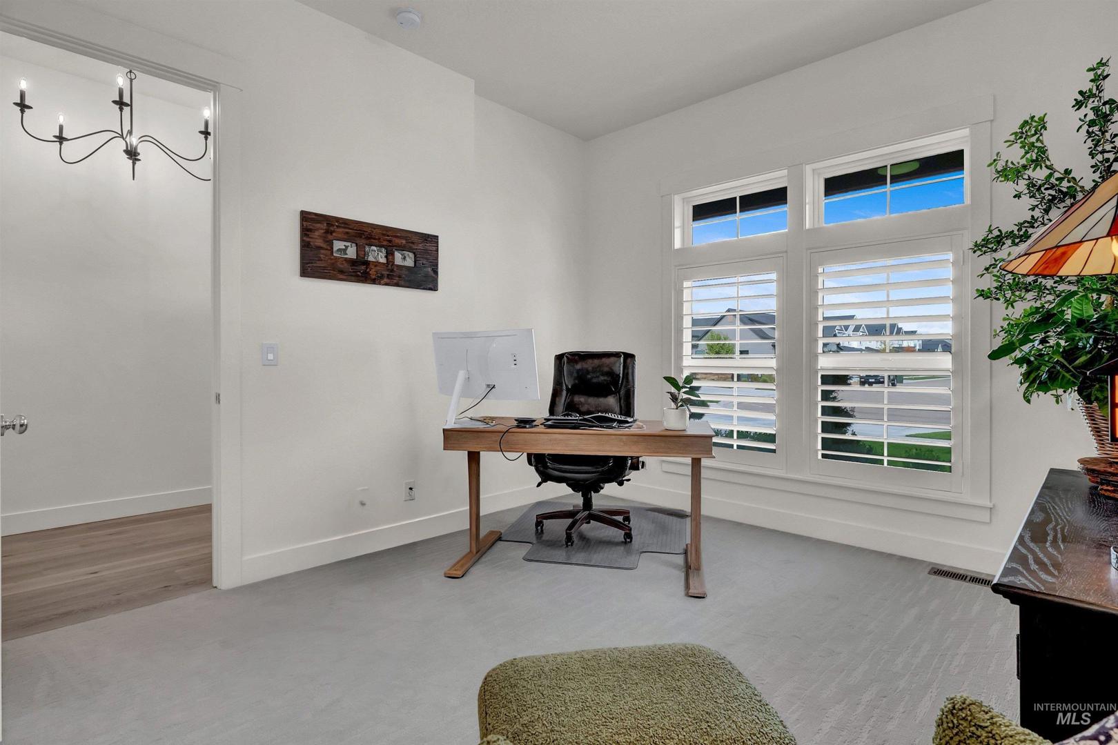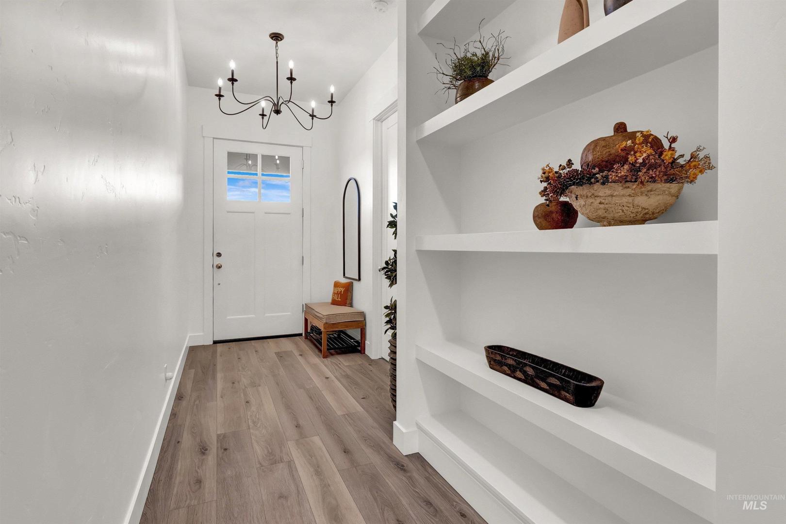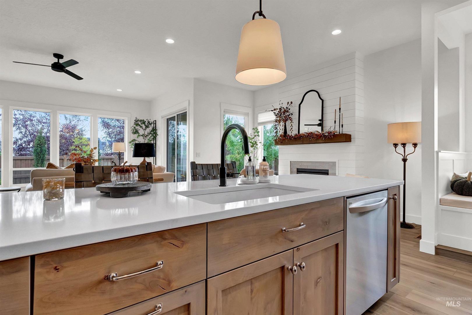 This meticulously maintained home boasts three spacious bedrooms, 2.5 baths, and a three-car garage, offering both luxury and functionality. Located just minutes from Costco, shopping and Spurwing Country Club, and the renowned golf course, this home provides ultimate convenience in a sought-after neighborhood. The fully landscaped yard is an outdoor paradise, featuring automatic lighting, a beautifully designed paver patio, and a serene space perfect for entertaining or relaxing. Inside, you`ll find elegant wood plantation shutters throughout, and shades on remote for ultimate convenience. The garage is a showstopper, with a sleek epoxy finish that adds a modern touch. Step inside to experience an inviting open-concept layout, with a large great room and a gourmet kitchen that`s perfect for entertaining. The built-in breakfast nook and banquette provide the perfect spot to enjoy Idaho`s breathtaking sunsets while having dinner or your morning coffee. The luxurious primary suite offers a peaceful retreat, and the home is thoughtfully designed with barn doors that cover the utility units, adding a stylish touch. Whether you’re hosting a gathering or enjoying a quiet evening, this home is the perfect blend of elegance and comfort. Move-in ready and boasting high-end finishes, this home truly feels like a model home—don`t miss out on this incredible opportunity!