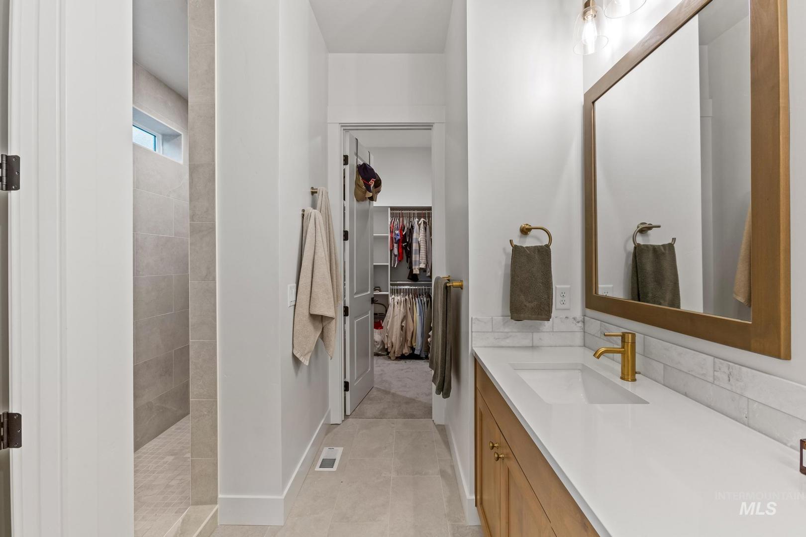 A home that still feels brand new; just around a year old and lightly lived in for under five months! Built by Tresidio Homes, this stunning Lisbon RV floor plan in the desirable Legacy community offers modern design, thoughtful details, and a premium location with no rear neighbors and a peaceful walking path just beyond your backyard. Step inside to find soaring 10` ceilings, 8` doors, and light hardwood floors flowing throughout the open living areas. The gourmet kitchen features KitchenAid stainless steel appliances, granite countertops, and an oversized island perfect for entertaining. The spacious great room is anchored by a beautiful gas fireplace with stacked stone surround and large windows that flood the home with natural light. With 3 bedrooms, 2 bathrooms, and a convenient office nook, the layout is both functional and refined. The luxurious primary suite includes dual vanities and a fully tiled walk-in shower. Step outside to a covered patio overlooking the serene walking path, creating a private retreat for relaxing evenings. The oversized 39` RV bay offers plenty of room for your toys and storage. Enjoy resort-style living in Legacy, featuring three community pools, tennis courts, walking paths, and a 3-hole golf course surrounded by lush landscaping.