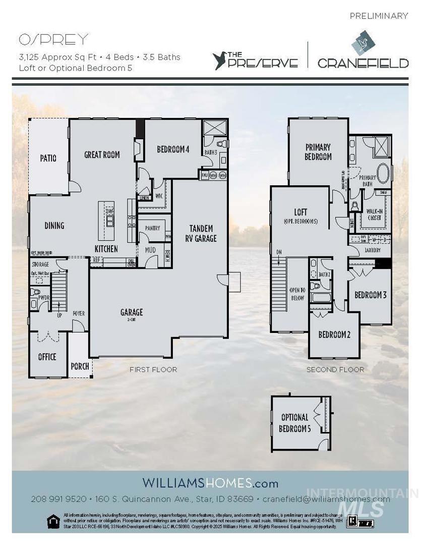 Presenting the Osprey, a 3,125 sq ft home in Star’s newest Master-planned Community, Cranefield by Williams Homes. This stunning two-story residence has 4 spacious bedrooms and 3.5 bathrooms. The main floor has high ceilings, creating an open and airy atmosphere. The gourmet kitchen, with stainless-steel appliances, seamlessly flows into the living and dining areas, perfect for entertaining. An office offers quiet space for work or study. The 2nd primary bedroom with an en suite bathroom provides privacy and separation for guests or multi-gen living. The mud room, pantry, and under-stair storage add convenience. The second floor boasts a luxurious primary suite with an en-suite bathroom and walk-in closet, two additional bedrooms, a versatile loft, and a conveniently located laundry room. Additional features include a 2-car garage and tandem RV garage, perfect for multiple vehicles and recreational equipment. Amenities: gated entry, pond access, walking trails, and community pool. Ask about our Seller’s concession with our Preferred Lender! Photos similar. Open daily 10am - 6pm.
