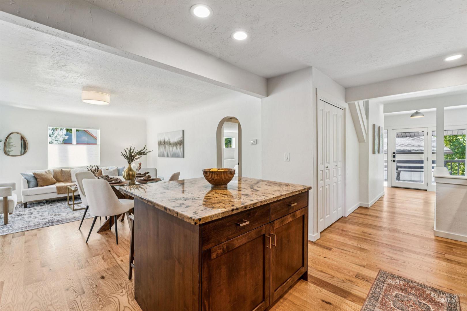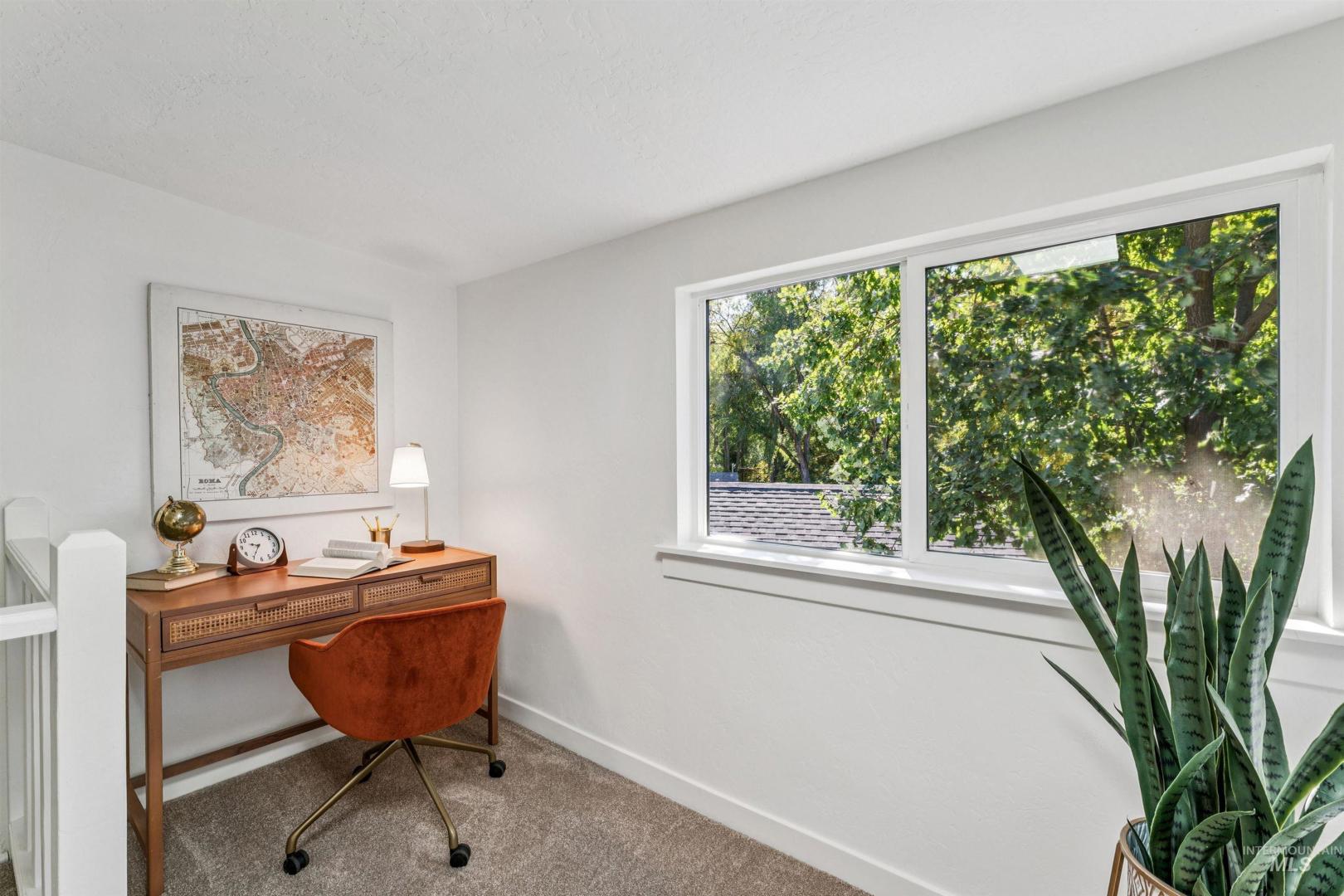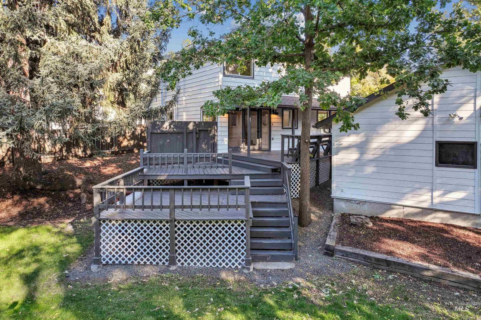 This beautifully reimagined residence offers a seamless blend of designer finishes & functional living in Boise`s coveted North End. Recent updates to the roofing, dual HVAC systems & a brand-new water heater keep mechanical & utility costs low w/ seller owned solar panels. The remodeled home shines w/ new paint, chic designer hardware, lighting & plumbing fixtures. Refinished hardwood floors flow throughout the bright, open great room featuring a gourmet kitchen complete w/ a gas range, granite counters & wood cabinetry. The main level also boasts a serene primary suite & a powder room for guests. Upstairs, a versatile loft & study nook provide space for work or relaxation, complemented by two additional bedrooms & a full bathroom. The finished basement`s flexible floor plan can serve as a media/rec room or a private guest suite complete with a walk-in closet, its own bathroom & egress windows. Set on a fully-fenced 1/4 acre corner lot w/ an oversided garage, the outdoor space is a private oasis. Enjoy al fresco dining & streamside lounging on the expansive tri-level deck surrounded by mature trees, refreshed landscaping beds & privacy fencing. Your ultimate North End lifestyle awaits -- just steps from top-rated schools, foothills trails, Camel`s Back Park & the vibrant shops/restaurants of Hyde Park. Quick, easy access to both Downtown Boise & Bogus Basin. BTVAI.