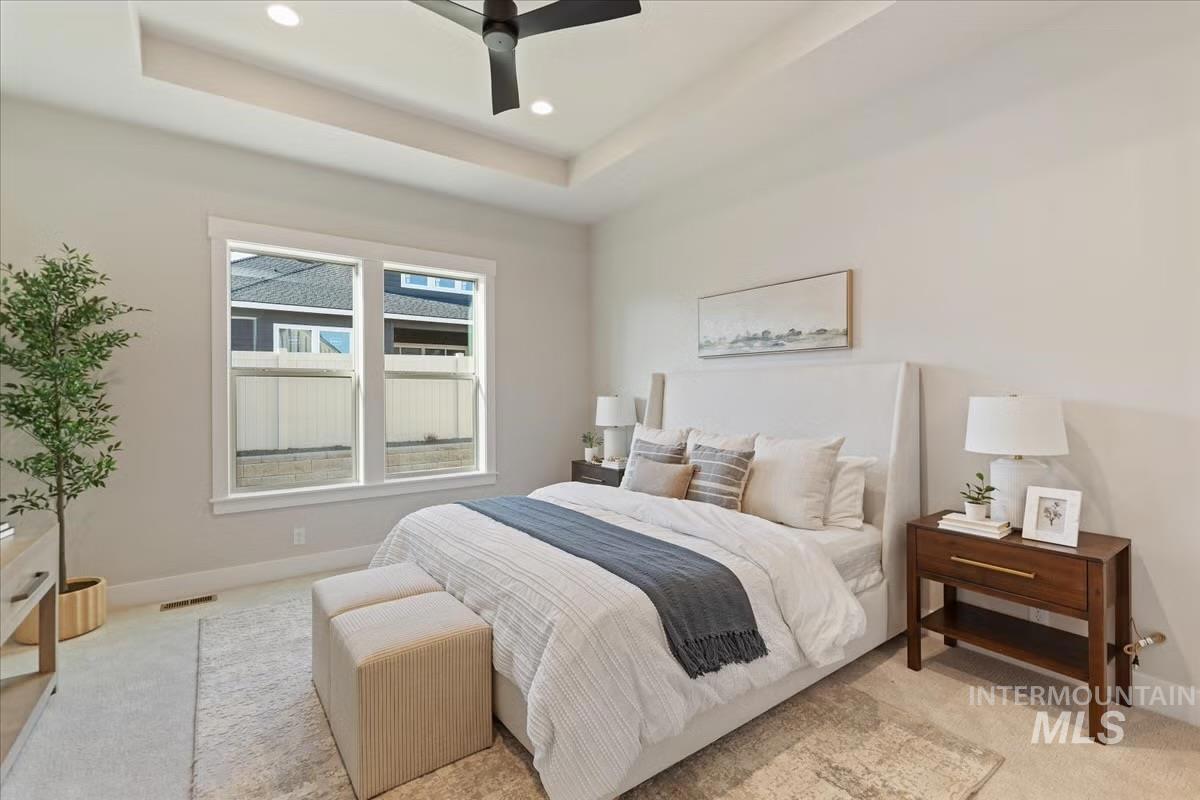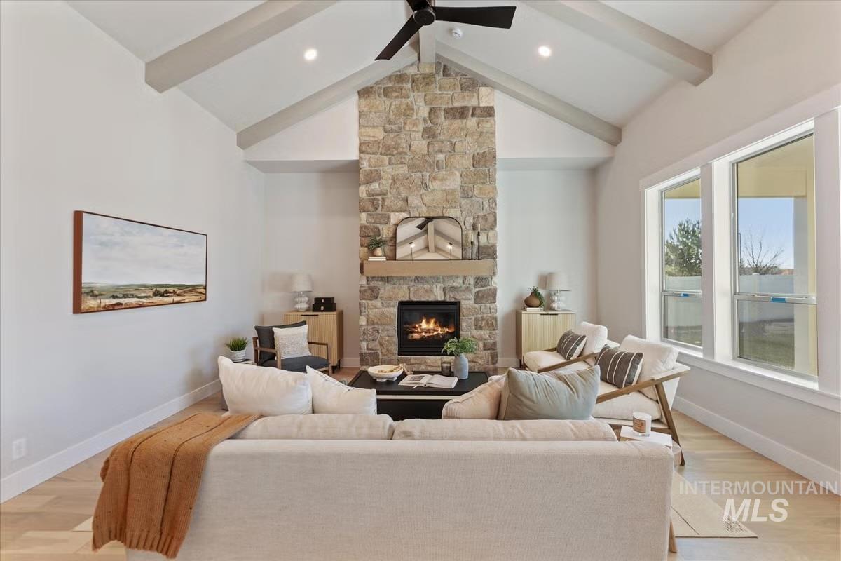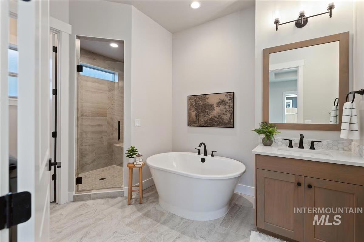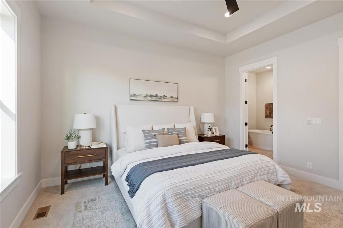Tresidio Homes incredible Somerset plan awaits! This expansive home welcomes you with soaring ceilings, including a beautiful cathedral ceiling over the great room & kitchen. You`ll enjoy entertaining (and causing envy!) in your chef`s kitchen, complete with butler`s pantry, gorgeous Bosch appliances, cabinetry up to the ceiling with floating shelves, & beautiful marbled quartz countertops. Open to the kitchen, the great room is big enough for everyone, & features a striking center fireplace & Tresidio`s signature tray ceiling with beams. Your primary retreat is tucked behind the kitchen, & boasts a chic standalone soaking tub, classic tile from floor to ceiling, and rich wood cabinetry. No stone was left unturned in the designing of this home; you`ll love the full tile showers in both secondary bathrooms, striking farmhouse exterior, soaring fireplace stone, and mixed metal hardware, to name just a few! Nestled in peaceful Oakwood Estates in Meridian, there is no better place to call home. Photos Similar.