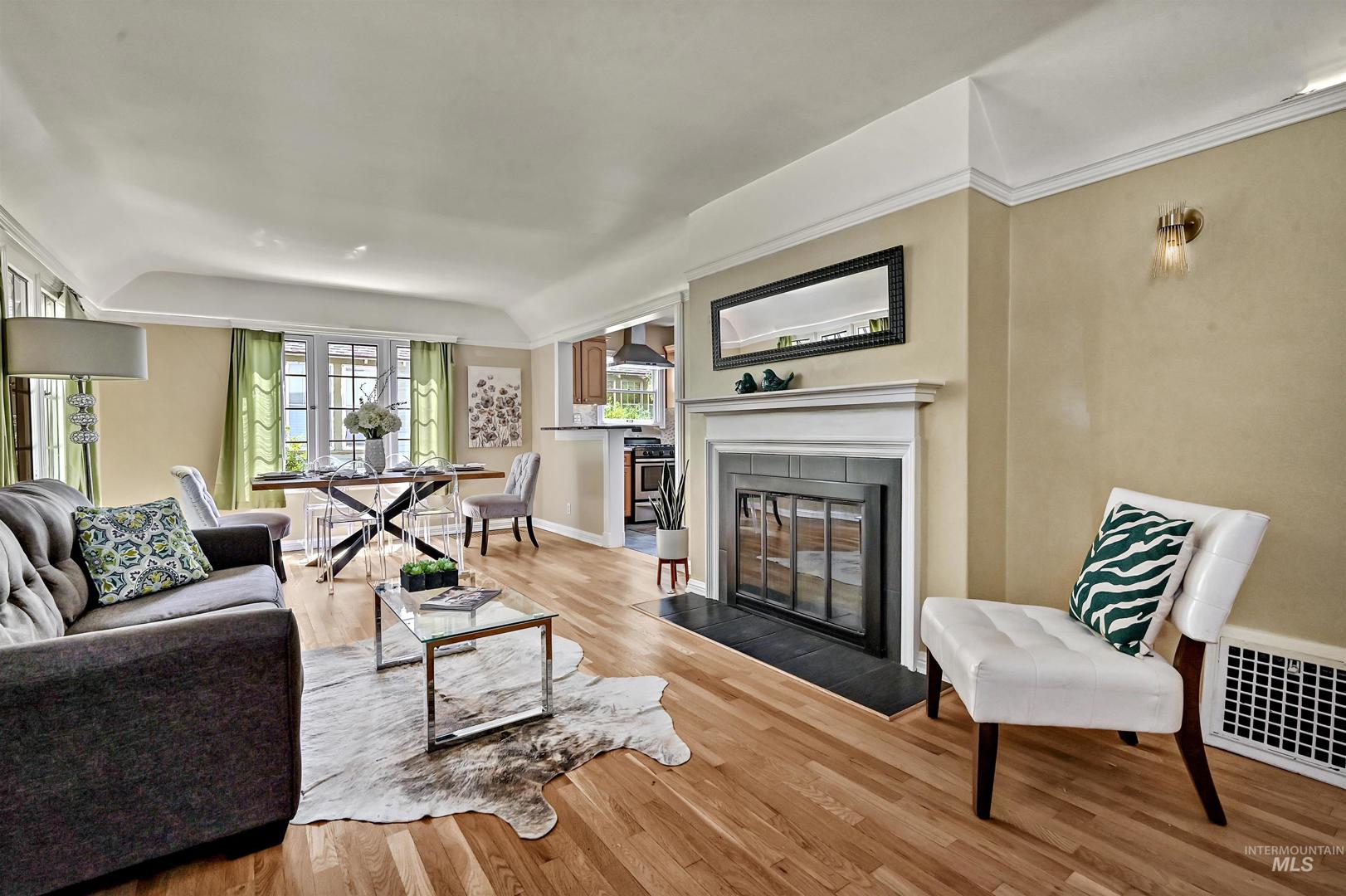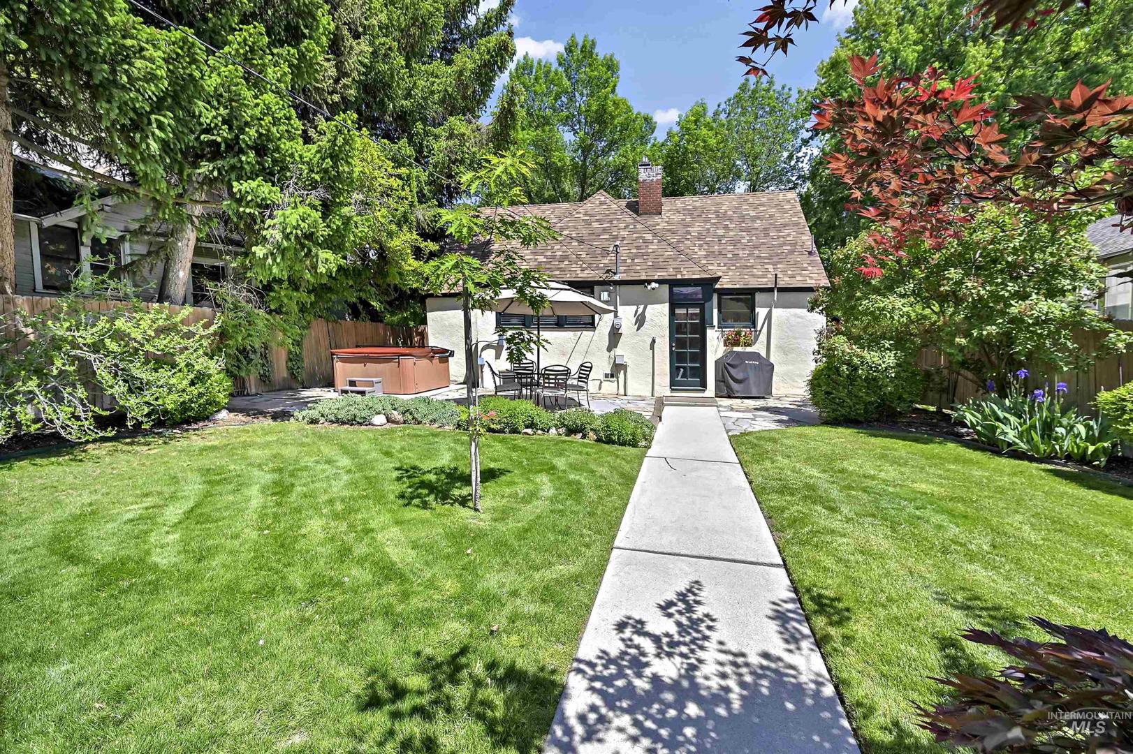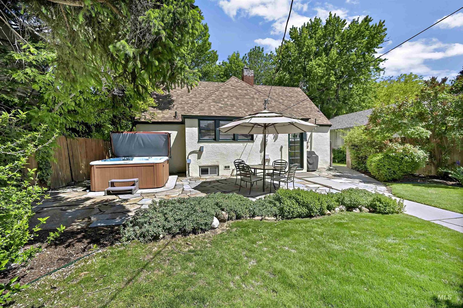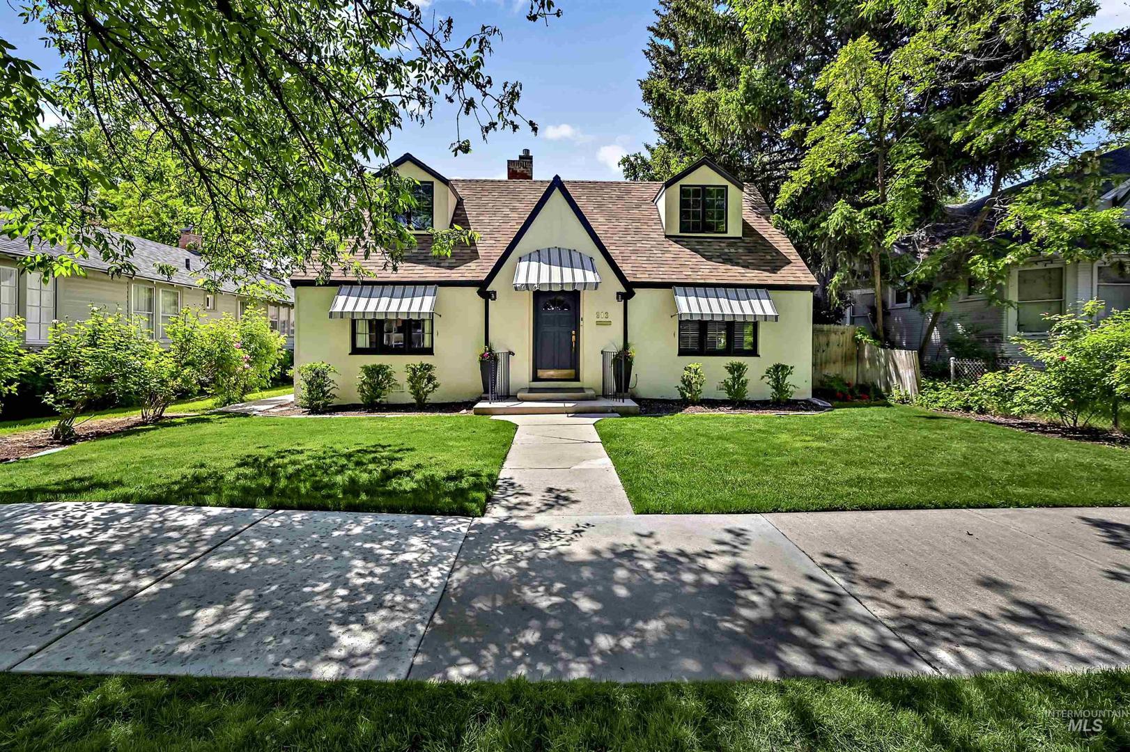Charming storybook cottage with classic rooflines, dormer windows, & timeless architectural detail on a tree-lined N End street! Enter to coved ceilings, original hardwood floors, & an inviting gas fireplace. Multi-pane leaded-glass windows fill the rooms with natural light, enhancing the home’s warm neutral palette. The remodeled kitchen is both stylish & functional with stainless appliances, quartz countertops, & a pretty tile backsplash! You’ll also find character-filled main-level bedrooms & a bathroom all with original hardware & period details. Upstairs features a large family room ideal for games or movies plus a cozy bedroom tucked beneath the dormers with exposed brick & thoughtful design elements. Head outside to the backyard complete with a flagstone patio, private hot tub, gardens, & mature trees — great for dining al fresco, evening soaks, or relaxing in the shade! You’ll love the oversized two-car garage with additional paved parking — plenty of room for all your gear & toys! NEW ROOF, NEW HVAC!